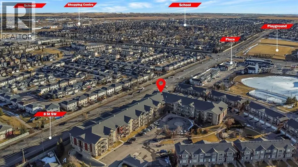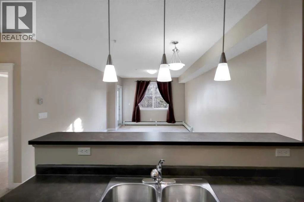 Welcome to The Breeze in Bayside, Airdrie! This well-maintained 1 bedroom, 1 bathroom condo offers a bright and open layout with a spacious living area and an open-concept kitchen, perfect for comfortable everyday living. The generously sized bedroom provides ample space, while the modern bathroom is open and well cared for. Enjoy the convenience of in-suite laundry and titled underground heated parking. The building is well managed and features a main-floor recreation room for residents. Condo fees conveniently include heat and water. This complex is perfectly located close to schools, shopping, and nearby plazas, with scenic walking and biking paths and a canal right out front. An excellent opportunity for first-time buyers, downsizers, or investors. Call today to book your showing! (id:27476)