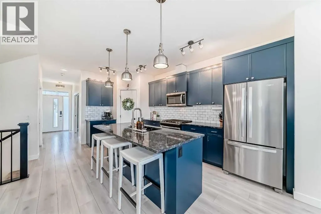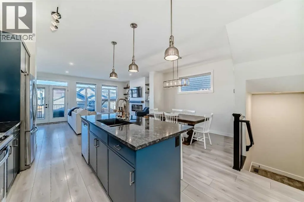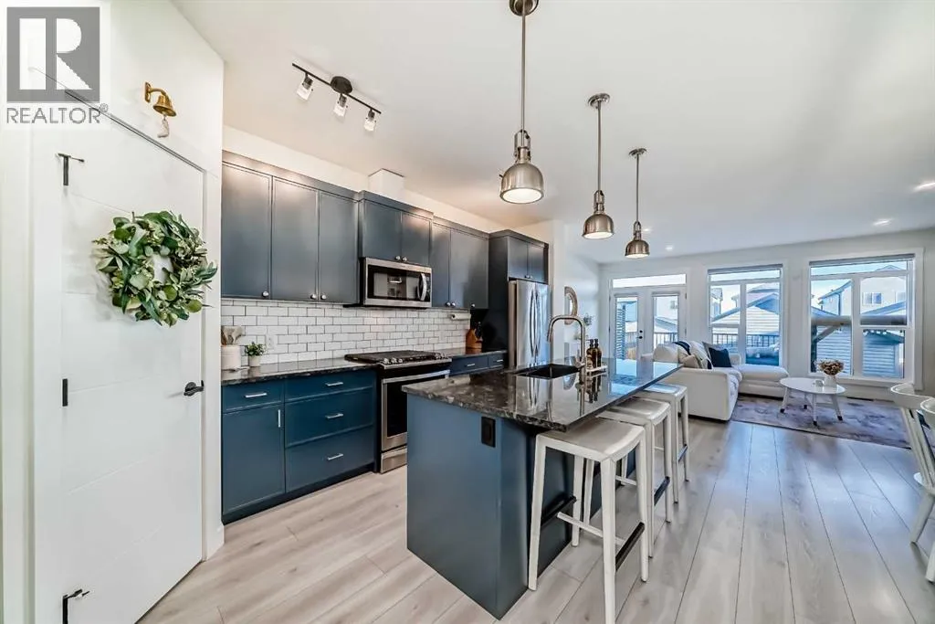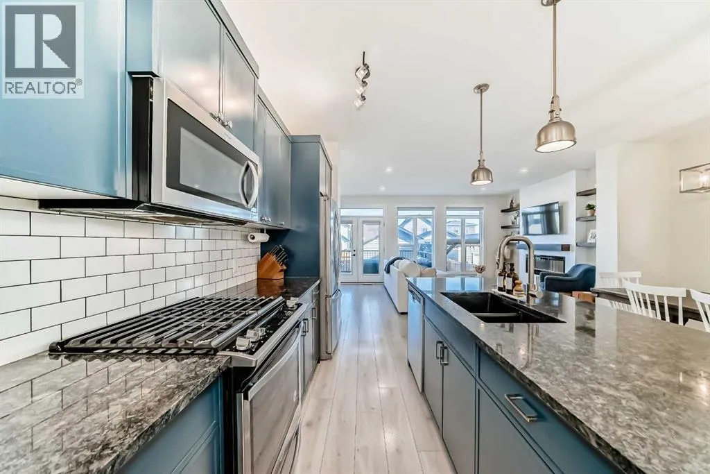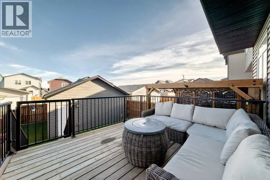 ** OPEN HOUSES - CANCELLED ** Welcome to this stunning, completely move-in ready home in the sought-after community of Chinook Gate. Meticulously maintained and beautifully finished, the pride of ownership is evident from the moment you step through the front door. A generous west-facing office/den offers the perfect work-from-home space, filled with natural light. The bright, open-concept main living area is both functional and stylish, featuring a beautiful kitchen with upgraded lighting, a large island, pantry, ample cupboard space and gas stove. Timeless blue cabinetry paired with grey stone countertops creates a warm yet sophisticated atmosphere. The east-facing living room is a true showpiece, highlighted by an electric fireplace with a shiplap feature wall, natural wood mantle, and custom built-in shelving. An entire wall of windows floods the space with morning light. Both the front and backyard have been thoughtfully landscaped with low-maintenance turf. The backyard is an entertainerâs dream, complete with a large deck, a built-in outdoor kitchen with BBQ, pergola and stone walkway â a space youâll never want to leave. Upstairs, youâll find a spacious bonus room and three bedrooms, including a large primary retreat featuring a 4 piece ensuite, a walk-in closet and incredible west-facing private balcony â the perfect place to enjoy your morning coffee. Convenient upper-floor laundry adds to the homeâs thoughtful design. The fully finished basement expands your living space with a fourth bedroom, generous recreation area, full bathroom, and plenty of storage. Additional highlights include air conditioning for summer comfort and a double detached garage for secure parking. There is truly nothing missing in this exceptional home â simply move in and start making memories. Located in the vibrant community of Chinook Gate, residents enjoy year-round family events such as community BBQs, summer movie nights, and Easter egg hunts. Just a block from a park and minu tes to Chinook Winds Park, schools (elementary through high school), and all amenities, this location offers the perfect blend of lifestyle and convenience. (id:27476)