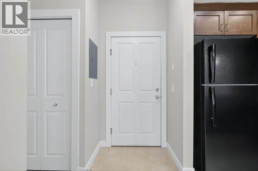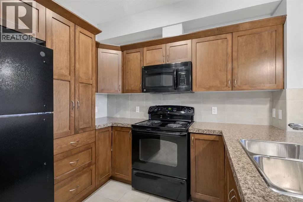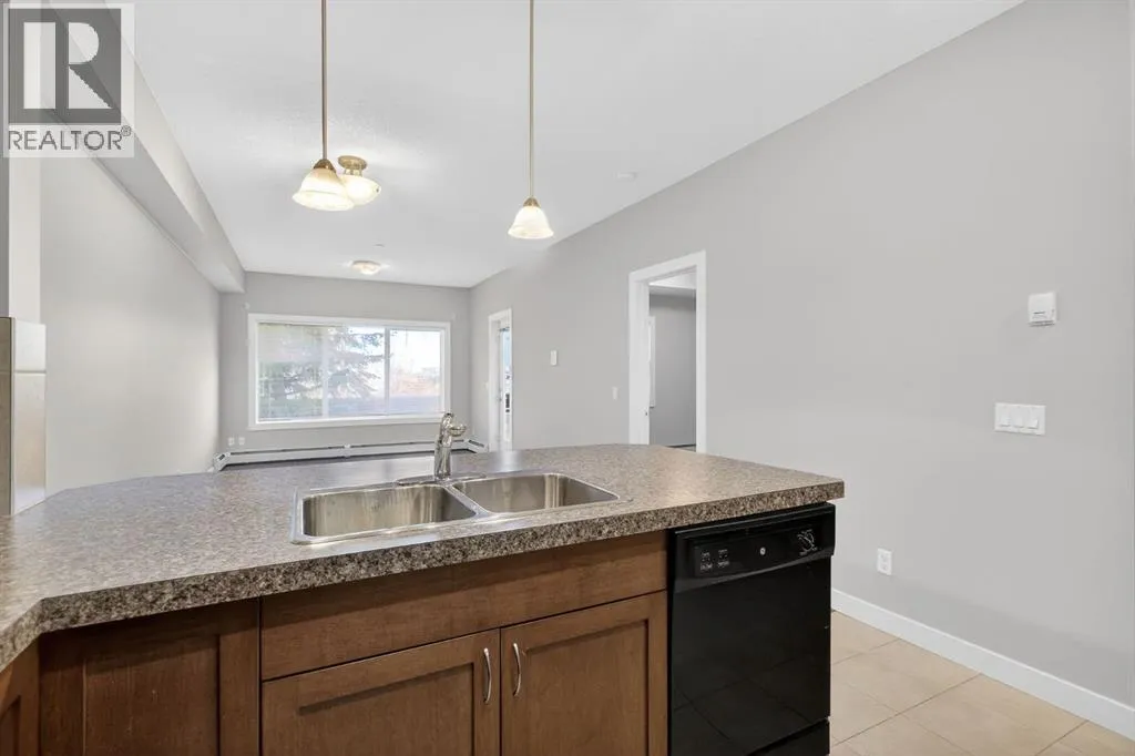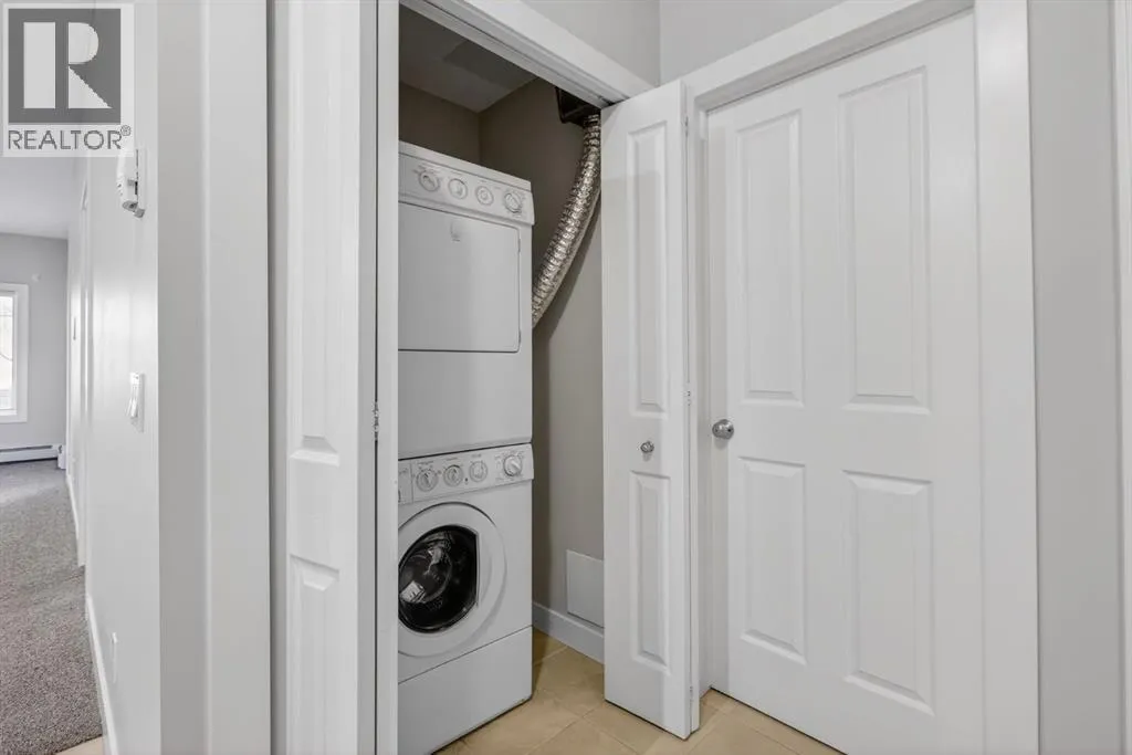 Welcome to this beautifully maintained main-floor condo in the desirable community of Kings Heights in Airdrie. Offering 616 sq ft of thoughtfully designed living space, this 1 bedroom, 1 bathroom home is perfect for first-time buyers, downsizers, or investors seeking comfort, convenience, and low-maintenance living. The open-concept layout creates a bright and functional living space, seamlessly connecting the kitchen, dining, and living areas. The kitchen features warm wood cabinetry, ample counter space, black appliances, and a functional peninsula with sink, making meal prep and entertaining easy and efficient. The living room is spacious and filled with natural light from the large window and patio door. The bedroom is well-sized and offers generous closet space, while the 4-piece bathroom is clean and well-appointed with matching cabinetry and plenty of counter space. Enjoy the convenience of in-suite laundry with a stacked washer and dryer.Located on the main level, this unit offers easy access and a private balcony â perfect for morning coffee or relaxing in the evening. The home also includes a parking stall and a separate storage locker for added convenience. Kings Heights is one of Airdrieâs most sought-after communities, known for its scenic pathways, ponds, and family-friendly atmosphere. Residents enjoy close proximity to schools, parks, shopping, restaurants, and everyday amenities at Kingsview Market. With quick access to Highway 2, commuting to Calgary is simple and convenient.Whether youâre looking for an affordable entry into the market or a fantastic investment opportunity, this well-located condo offers incredible value in a vibrant and growing community. (id:27476)