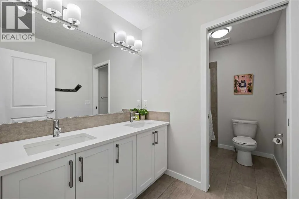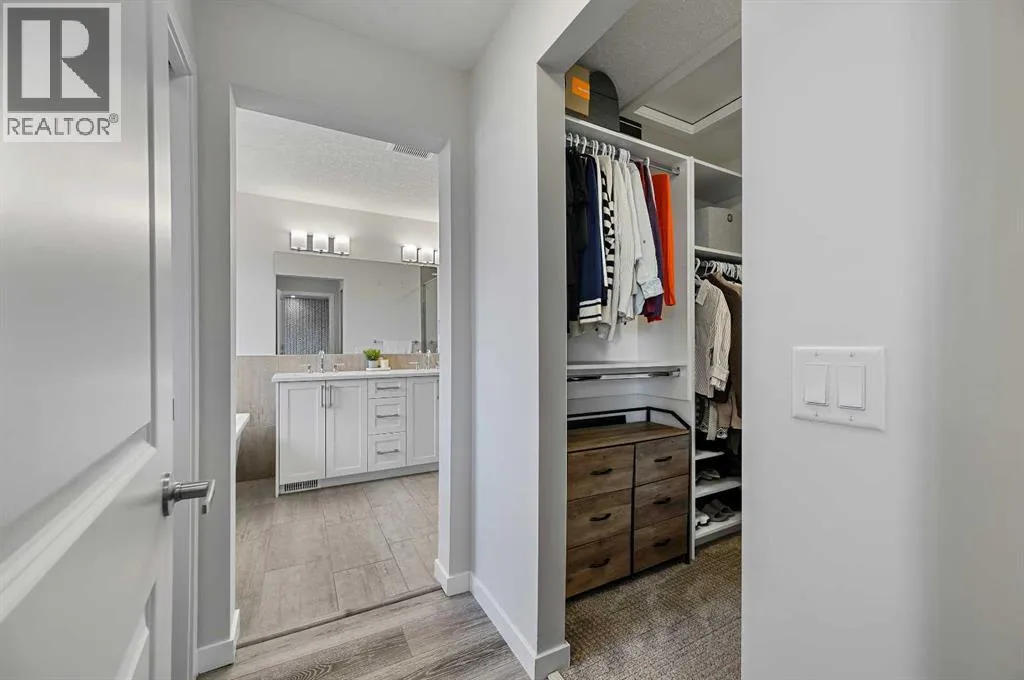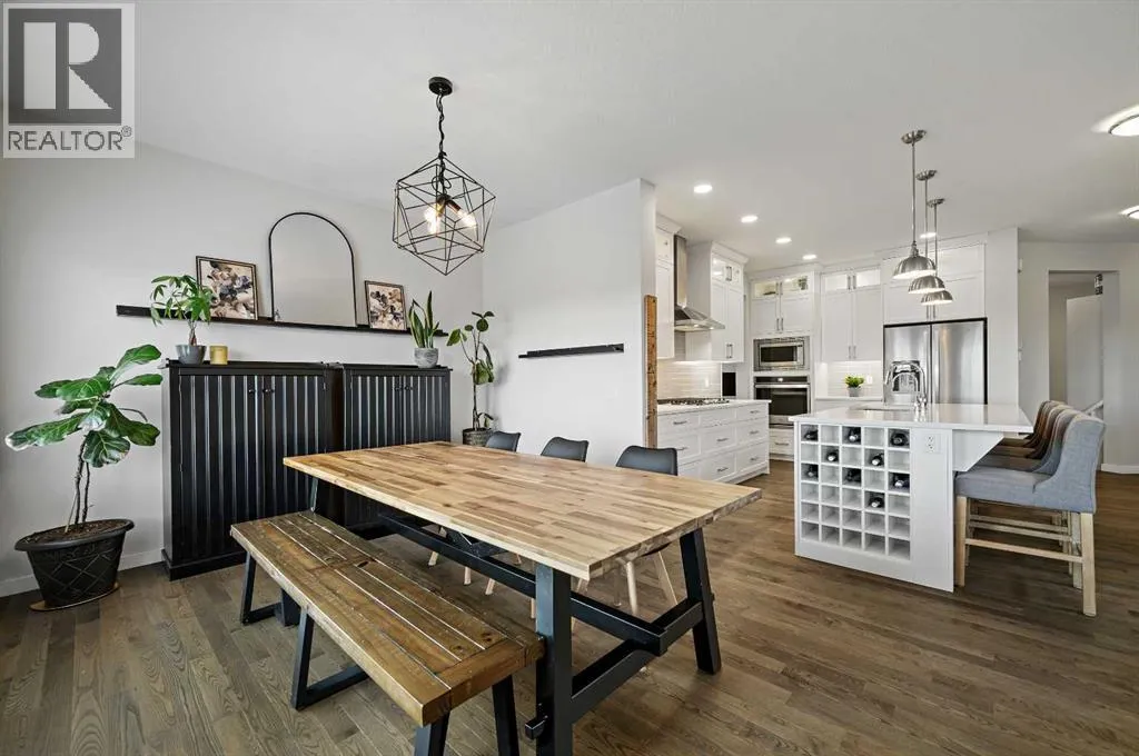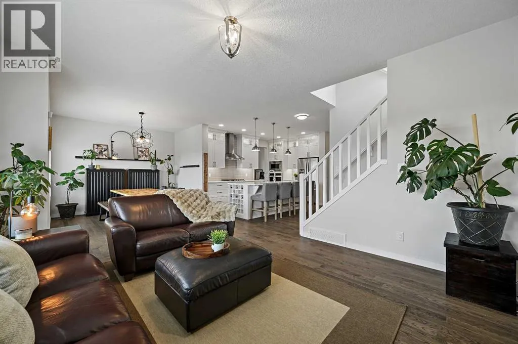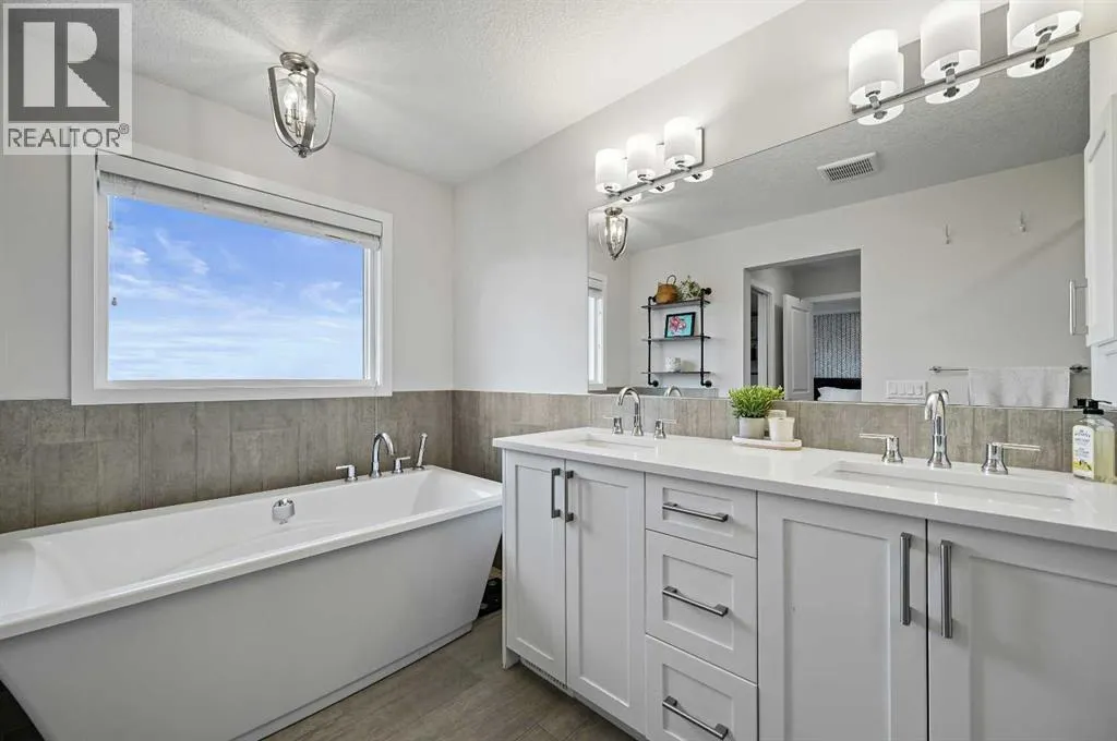 Luxury living meets everyday functionality in this extensively upgraded 5-bedroom, 4-bathroom modern two-storey WALK-OUT, TRIPLE GARAGE home backing directly onto pathways, no "fish bowl" here! You even get some beautiful MOUNTAIN views!Offering 3,384 sqft of total developed living space on a 4,724 sqft WALK-OUT lot, this Hillcrest home combines thoughtful design with premium finishes throughout.The main floor features 9â ceilings, designer lighting, and a striking stone-surround gas fireplace. The chef-inspired kitchen is a showpiece with a massive flush quartz island with built-in wine storage and seating for four, full-height cabinetry with glass upper doors including accent lighting and under-cabinet lighting, farmhouse under-mount stainless steel sink, gas cooktop stove, built-in wall oven and microwave, chimney-style hood fan, tile backsplash, and a large pantry. A tucked-away tech space/drop zone behind the kitchen offers the perfect homework or work-from-home station. The sunk-in mudroom includes built-in lockers and bench seating for organized family living.Upstairs youâll find four bedrooms â ALL with WALK-IN CLOSETS â plus a large central bonus room with VAULTED ceilings, ideal for family movie nights or a kidsâ retreat. The spacious primary suite features a TRAY ceiling, separate recessed (dimmable) pot lights and large walk-in closet with built-ins. The luxurious 5-piece ensuite offers dual sinks with a raised vanity, standalone soaker tub, and a fully tiled shower with additional wand/control. A second 5-piece bathroom serves the additional bedrooms with a separate pocket door to the tub/shower and toilet for added convenience and functionality.The fully developed walk-out basement offers a large recreation area, fifth bedroom, 4pc bathroom, 2 storage rooms and direct access to the recently landscaped backyard that opens seamlessly to the pathway system leading to multiple parks, schools, shopping and more! The large upper deck finished in Dura dek gives the bottom stone patio coverage for those rainy spring days ahead.Enjoy the elevated glass-panel deck finished with duradek, has a BBQ gas line and unobstructed views overlooking the green space. The TRIPLE tandem garage provides exceptional parking, storage, and workspace flexibility.Additional upgrades include: Dual-zone high-efficiency furnace, high-efficiency water heater, reverse osmosis system, water softener and load management system to meet all current required codes.Located close to schools, parks, playgrounds, pathways, shopping, restaurants, and medical services â this exceptional Airdrie WALK-OUT home delivers space, storage, privacy, and refined comfort in one of the cityâs most desirable family communities. (id:27476)