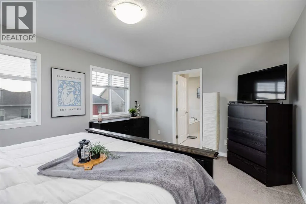 Open House Cancelled Seller accepted an offer! Welcome to this beautifully finished two-story home in the highly sought-after community of South Windsong in Airdrie! Offering a perfect blend of style, comfort, and function, this property is move-in ready and designed to impress from the moment you arrive. The homeâs charming curb appeal provides a warm welcome before stepping inside to discover over 1,839 sq ft above grade modern living space. The open-concept main floor features 9-ft ceilings and stunning vinyl plank flooring throughout, creating a bright and airy feel. A cozy gas fireplace anchors the spacious living room, perfect for family nights or entertaining guests. The kitchen is sure to impress, boasting sleek quartz countertops, stainless steel appliances, and a gas stove, with plenty of counter and island space for cooking and casual dining. The adjoining dining area offers seamless access to the outdoor living space, making it easy to enjoy meals and gatherings inside or out. Upstairs, youâll find three generously sized bedrooms, including a relaxing primary suite with a private ensuite bathroom with double vanities. The upper floor also includes a convenient laundry space and a bonus room that opens to a west-facing balcony, ideal for enjoying your morning coffee or watching beautiful evening sunsets. This bonus space can easily serve as a family lounge, home office, or playroomâflexibility to fit your lifestyle. The fully finished basement adds even more valuable living space with modern LVP flooring, an additional bedroom, a full bathroom, and a spacious recreation roomâperfect for guests, teens, or a cozy movie night. The thoughtful layout provides plenty of space for relaxation and creativity while maintaining excellent flow throughout. Step outside to your private backyard retreat featuring a double-tiered deckâperfect for BBQs, entertaining, or quiet evenings soaking in the hot tub. Thereâs ample room for kids or pets to play, and the low-mainten ance design allows you to enjoy your leisure time instead of yard work. Located in one of Airdrieâs most desirable areas, South Windsong offers a great lifestyle surrounded by amenities. Youâll find schools, parks, and green spaces within walking distance and shopping, restaurants, and coffee shops just minutes away. Commuting is a breeze with quick access in and out of Airdrie, while the communityâs family-friendly atmosphere and scenic pathways make it a wonderful place to live and grow. This exceptional home has it allâmodern finishes, open-concept design, 4 total bedrooms, 3.5 bathrooms, a finished basement, and outdoor living with a hot tubâall in a fantastic location close to everything you need. Whether youâre a growing family, a couple seeking more space, or someone looking to enjoy the perfect mix of comfort and convenience, this gem checks every box. Donât miss your chance to make this beautiful property your new homeâschedule your showing today with your favorite realtor! (id:27476)