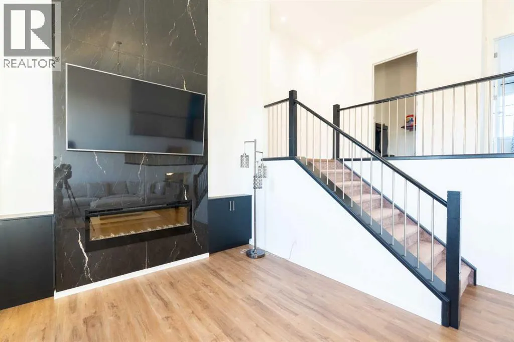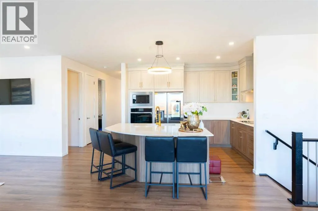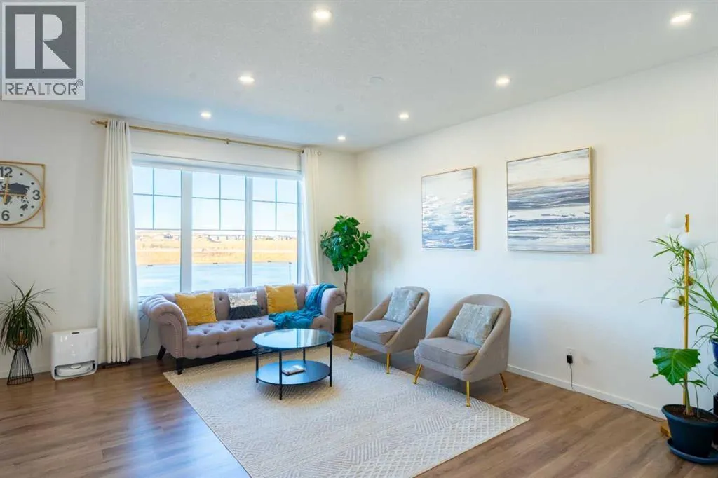 Welcome to 228 Windrow Link SW â perfectly positioned on one of the most desirable premium walkout lots in the community, backing directly onto a serene pond with unobstructed water views and facing a park right out front. With no homes directly in front or behind, this property offers exceptional privacy, abundant natural light, and a truly balanced indoor-outdoor lifestyle in a family-friendly setting.Thoughtfully designed with both everyday functionality and elevated style in mind, the bright open-concept main floor features luxury vinyl plank flooring and expansive windows that flood the home with light from both exposures. The spacious great room offers a loft-inspired feel and is anchored by an upgraded electric fireplace set against a striking modern black panel accent wall â creating a warm yet contemporary focal point.The kitchen is the true showpiece of the home. A custom oversized quartz island with elegant curved edges creates a softer, more organic flow than traditional rectangular islands, making it the perfect gathering space for entertaining, casual dining, or hosting family and friends. The island is finished with matching cabinetry panels for a refined, built-in furniture look and offers generous seating and prep space. The kitchen is further enhanced with full-height cabinetry, sleek built-in appliances, stainless steel finishes, and a clean modern aesthetic. A separate spice kitchen adds exceptional functionality â ideal for keeping the main kitchen immaculate while preparing meals. A dedicated main floor office provides valuable flexibility for remote work or study.Upstairs youâll find four generously sized bedrooms, including a well-appointed primary retreat complete with a walk-in closet and ensuite bath. The upper layout is designed with comfort and practicality in mind â ideal for growing families or multigenerational living.The walkout basement presents incredible future potential â whether for extended family living, recreation spa ce, or income-generating possibilities (subject to approvals).Step outside to the upgraded glass-railed deck and take in the uninterrupted pond views â a stunning backdrop for summer evenings and morning coffee.A rare opportunity to own a premium walkout lot with water views in one of Airdrieâs most sought-after communities. Location, layout, design, and lifestyle â this home truly stands apart. (id:27476)