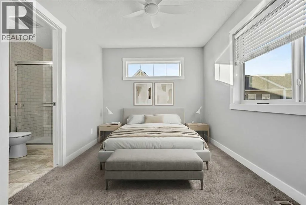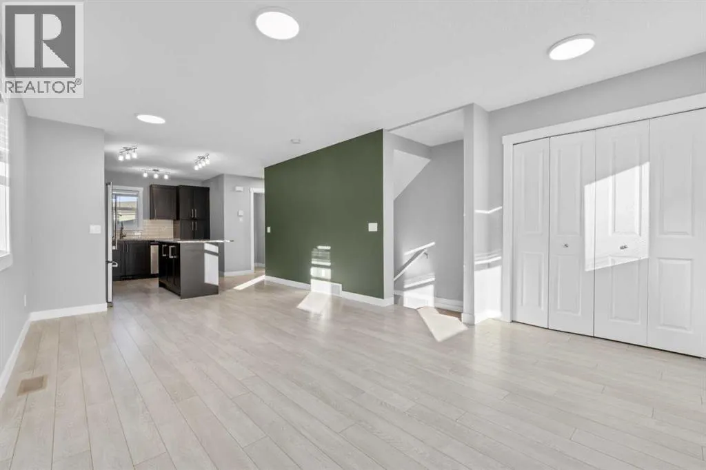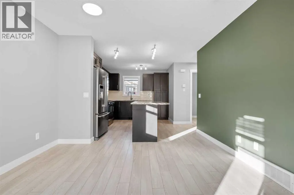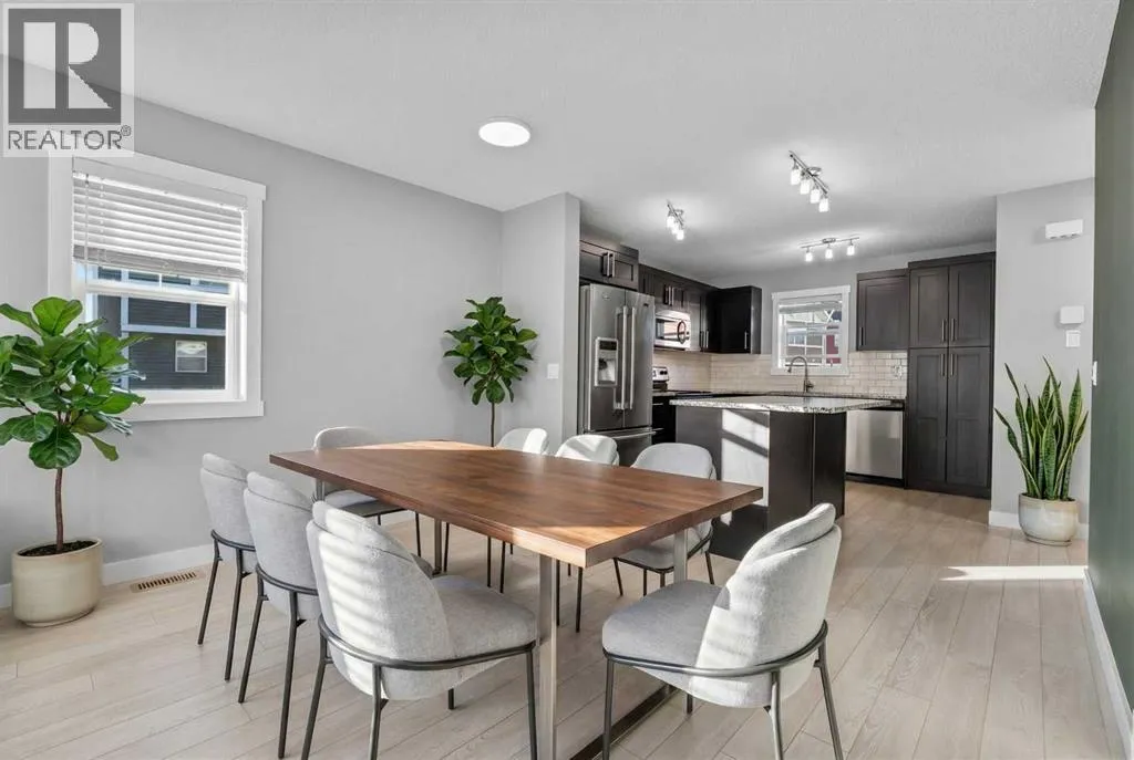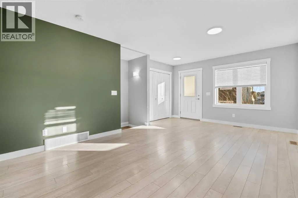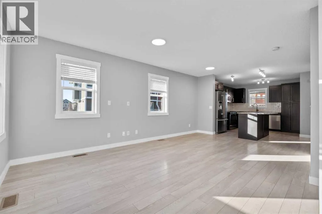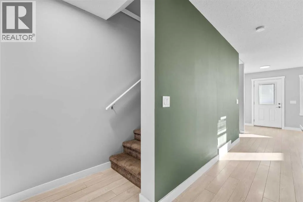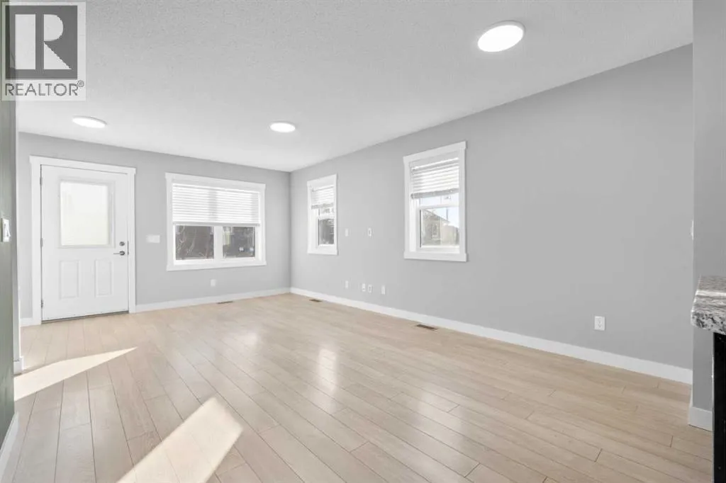 Hello Airdrie! Welcome to this immaculately maintained END UNIT is truly the one you've been waiting for! Freshly painted and professionally cleaned, this bright and inviting home features spectacular windows, modern flooring and new light fixtures throughout the main floor. With an open-concept layout where the kitchen, dining, and family room flow seamlessly together, creating the perfect space for both everyday living and entertaining. Upstairs, you'll find a versatile flex area ideal for a home office or play space, a spacious secondary bedroom and full bathroom, a convenient upper-floor laundry, and a generous primary retreat complete with its own ensuite. Enjoy outdoor living with both a lower patio and upper deck, plus the added bonus of an oversized single attached garage and driveway for extra parking and storage. Situated in a quiet, well-managed complex offering a community gazebo and ample visitor parking, this home is surrounded by parks, scenic pathways around the ponds, bike paths and a pump track, and is just minutes from shopping and quick access to 40th Avenue for easy commuting. This is an exceptional opportunity to own a beautifully cared-for home in one of Airdries most fantastic communities. (id:27476)