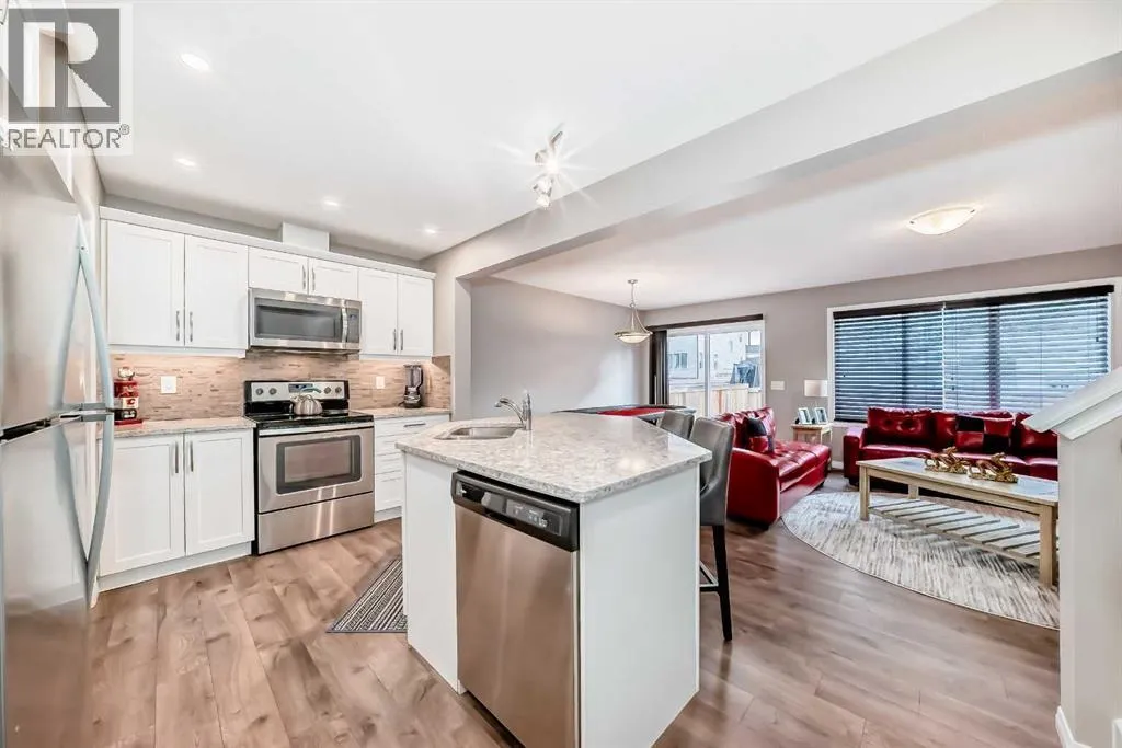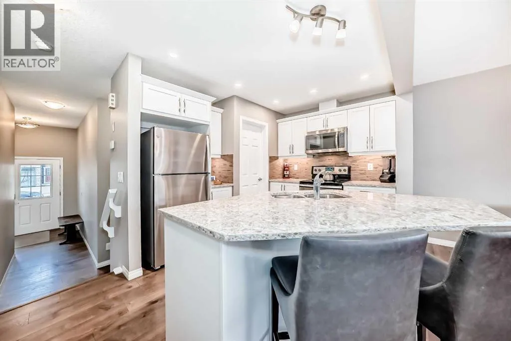 No Condo Fees! Welcome to this beautifully designed 3-bedroom, 2.5-bathroom townhome in one of Airdrieâs most desirable communities. Offering the perfect blend of modern style and family functionality, this home is move-in ready and thoughtfully finished throughout.The bright open-concept main floor is filled with natural light from large windows and features a chef-inspired kitchen complete with stainless steel appliances, premium granite countertops, and an extended island with seating â ideal for casual meals or entertaining guests. The spacious living and dining areas flow seamlessly, creating a warm and inviting space for everyday living.Upstairs, youâll find three generously sized bedrooms, including a comfortable primary retreat with a walk-in closet and private ensuite. Whether youâre starting a family or looking for flexible space, this layout delivers both comfort and practicality.Step outside to a beautifully landscaped backyard featuring a large deck â perfect for hosting summer gatherings â with minimal maintenance required, so you can enjoy more and maintain less.Located in Airdrie close to parks, schools, and amenities, this home offers modern living without condo fees and with outdoor space that truly sets it apart. (id:27476)