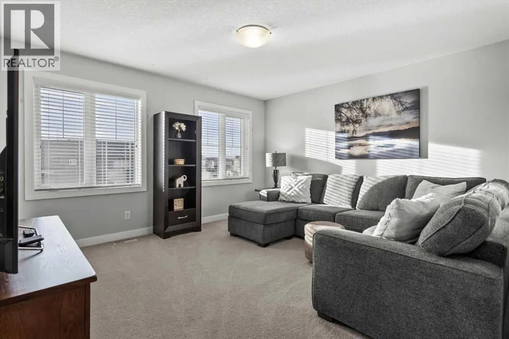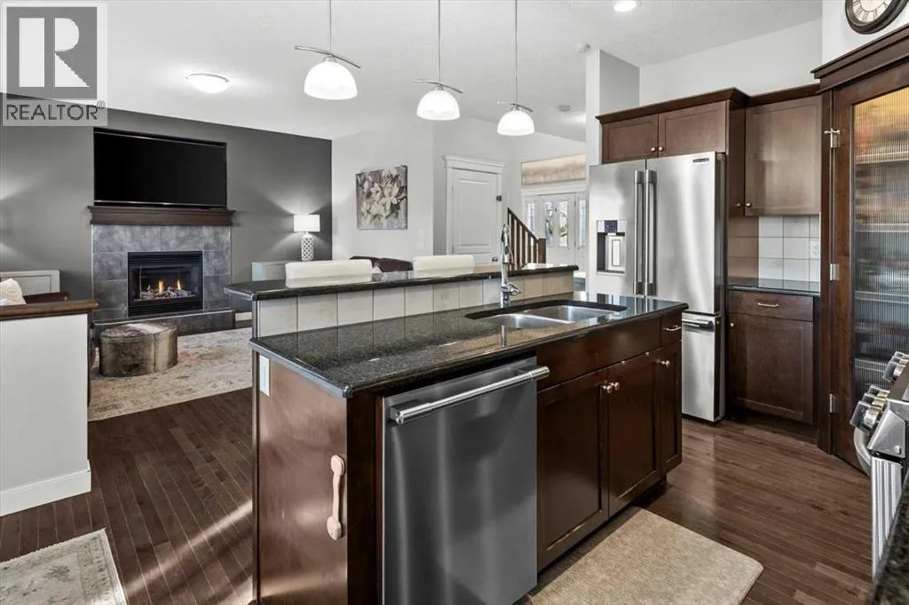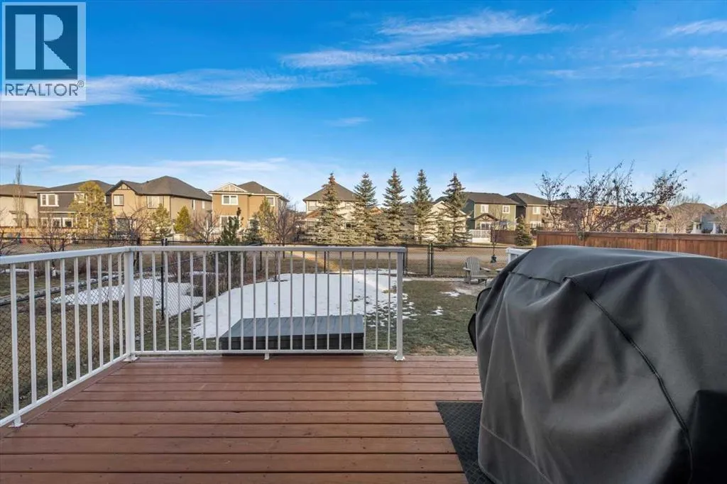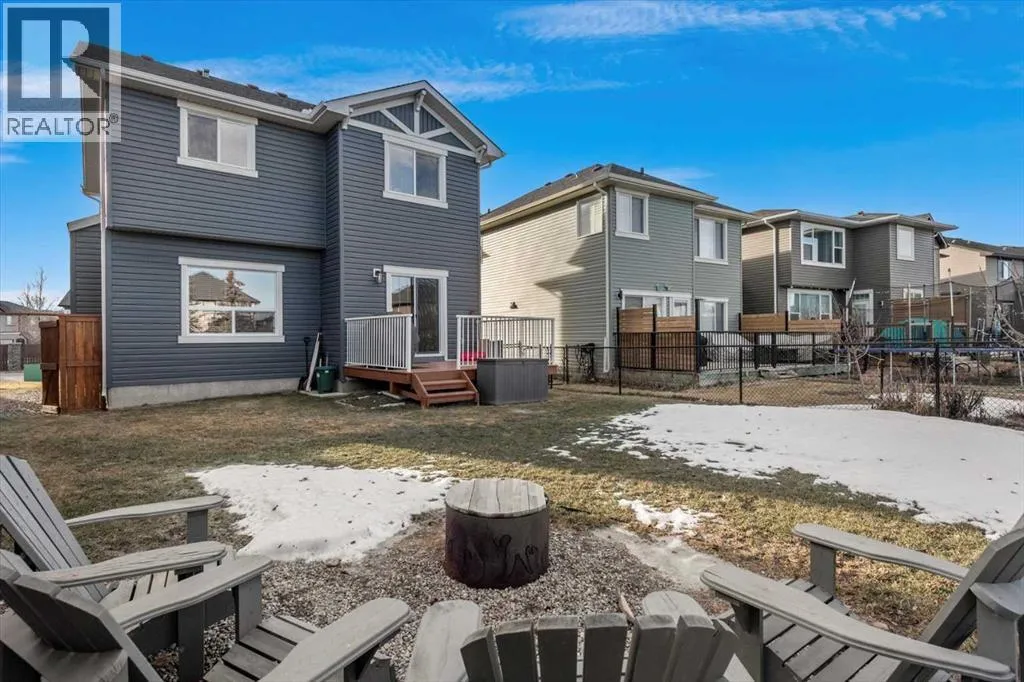 Meticulous, designer-inspired two-story home in the Airdrie community of Ravenswood. The welcoming foyer leads into a bright, open-concept main living area. The kitchen is beautifully appointed with a central island and breakfast bar, new stainless-steel appliances (including an exceptional gas range), and a walk-in pantry. Open to the kitchen, the family room features a cozy gas fireplace and outdoor views of the adjoining green space with its convenient walkway. Step outside to a private, fully fenced backyard with a fire pitâperfect for summer evenings with friends. Upstairs discover a bright, spacious bonus room, three bedrooms, and a 4-piece main bath. The primary retreat offers a customized walk-in closet and a 4-piece ensuite complete with a soaker tub and skylight. The unfinished lower level awaits a finishing design to suit your lifestyle. Ideally located close to Heloise Lorimer School and Ãcole des Haute-Plaines (Kâ12), with easy access to Highway 2 for easy commuting north and south, including YYC airport and downtown Calgary. (id:27476)