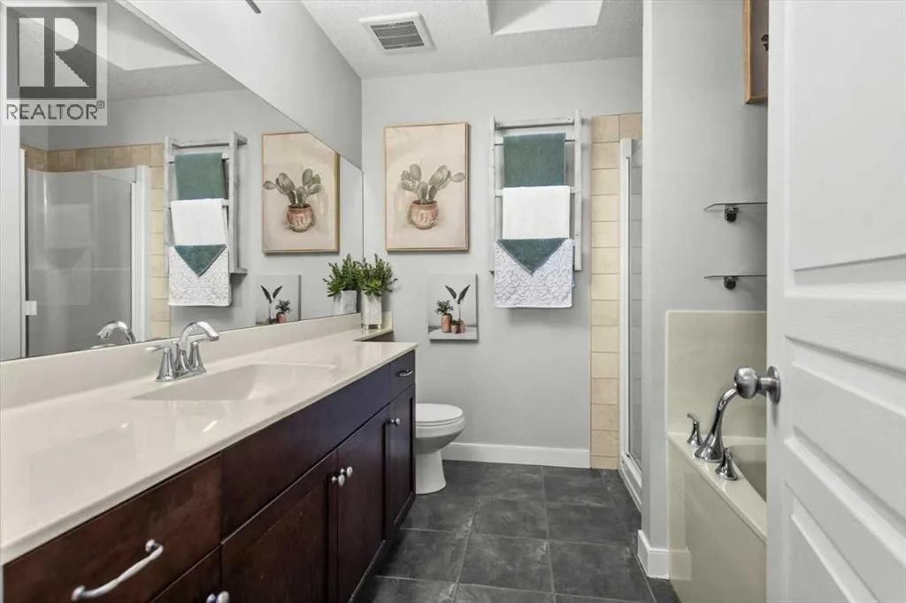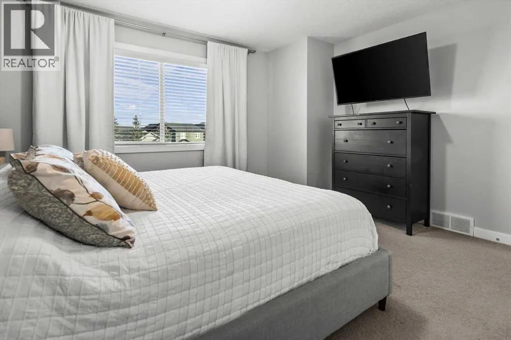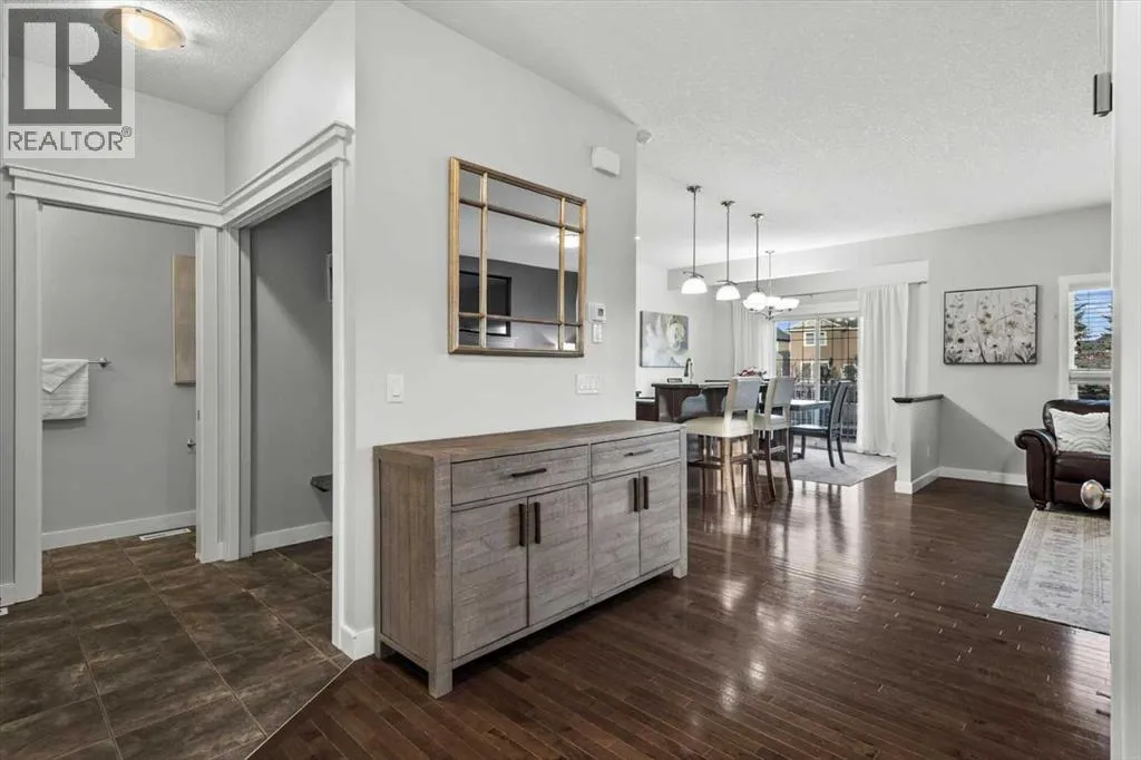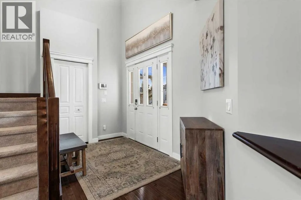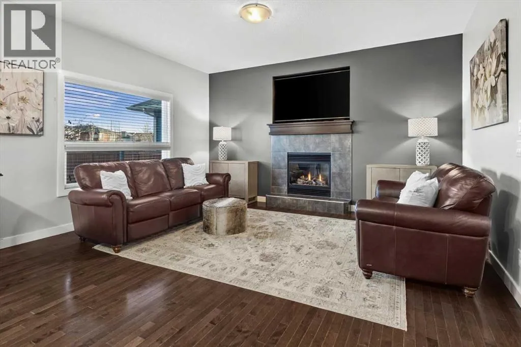 Meticulous, designer-inspired two-story home in the Airdrie community of Ravenswood. The welcoming foyer leads into a bright, open-concept main living area. The kitchen is beautifully appointed with a central island and breakfast bar, new stainless-steel appliances (including an exceptional gas range), and a walk-in pantry. Open to the kitchen, the family room features a cozy gas fireplace and outdoor views of the adjoining green space with its convenient walkway. Step outside to a private, fully fenced backyard with a fire pitâperfect for summer evenings with friends. Upstairs discover a bright, spacious bonus room, three bedrooms, and a 4-piece main bath. The primary retreat offers a customized walk-in closet and a 4-piece ensuite complete with a soaker tub and skylight. The unfinished lower level awaits a finishing design to suit your lifestyle. Ideally located close to Heloise Lorimer School and Ãcole des Haute-Plaines (Kâ12), with easy access to Highway 2 for easy commuting north and south, including YYC airport and downtown Calgary. (id:27476)