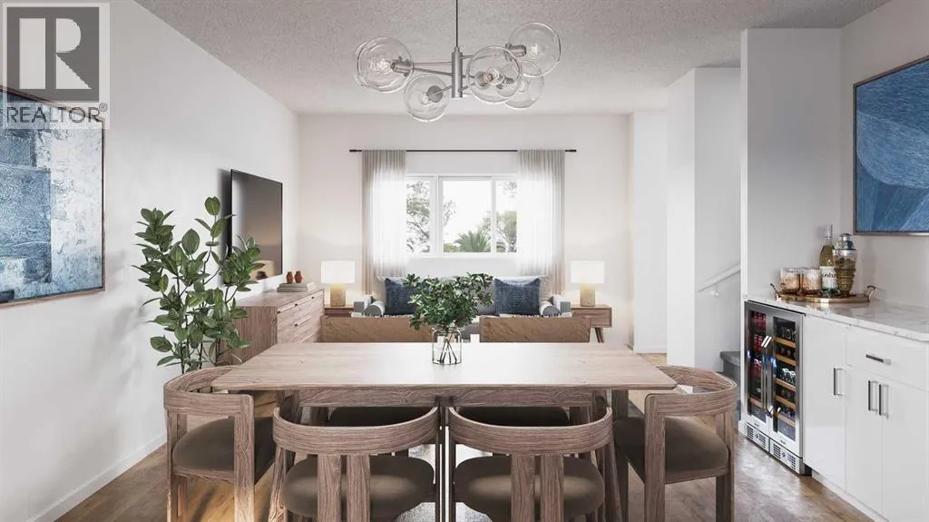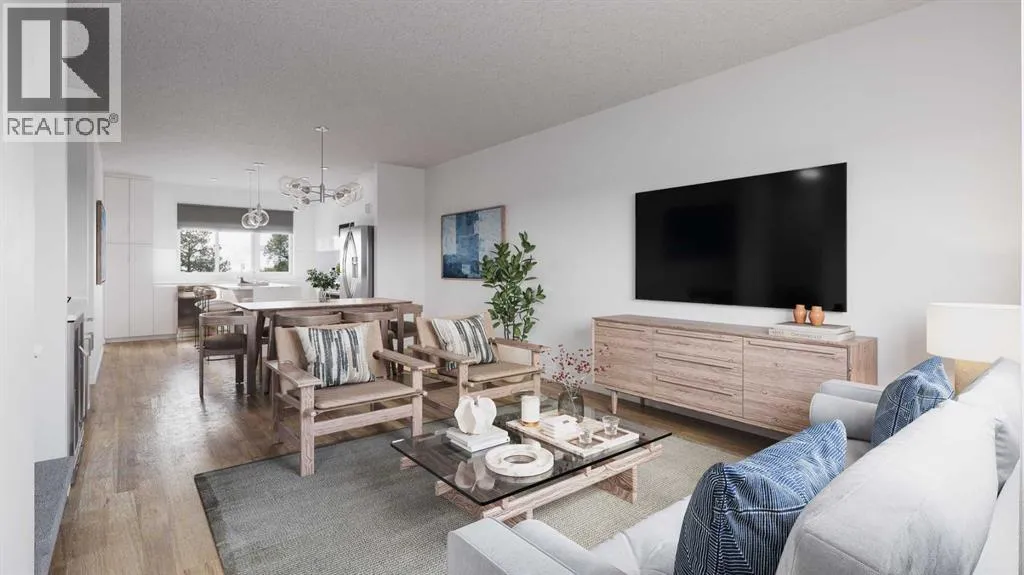 HOME IS UNDER CONSTRUCTION. StreetSide Homes towns at Vantage Rise, where thoughtful design, modern finishes, and long-term value meet to create a home that truly supports your lifestyle. Offering nearly 1,500 sqft of well planned living space, this 3-bedroom, 2.5-bath home delivers the perfect blend of comfort, function, and style. The bright open main floor is highlighted by 9â ceilings, durable luxury vinyl plank flooring, and a stunning contemporary kitchen featuring quartz countertops, stainless steel appliances, soft-close cabinetry, designer lighting, tiled backsplash, and a large central island ideal for entertaining, casual meals, or gathering with family and friends.Upstairs, enjoy the everyday convenience of upper floor laundry and a spacious primary retreat, while two additional bedrooms provide flexibility for family, guests, or a home office. The unfinished basement with roughed-in plumbing offers a valuable opportunity to customize future living space to suit your needs while building equity over time. Outside, the benefits continue with full landscaping, completed fencing, and a double detached garage. Saving you time, effort, and additional expenses after your purchase so you can simply move in and enjoy.Best of all, NO CONDO FEES means greater monthly affordability and financial freedom. Located in Airdrieâs newest southwest community, Vantage Rise is thoughtfully planned to include future commercial amenities, quality outdoor spaces, and a strong sense of community connection. This is a home that not only looks beautiful today but also supports your lifestyle and investment goals for years to come. NOTE: PHOTOS ARE RENDERINGS NOT ACTUAL PHOTOS OF THE UNIT. (id:27476)