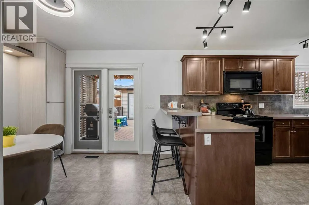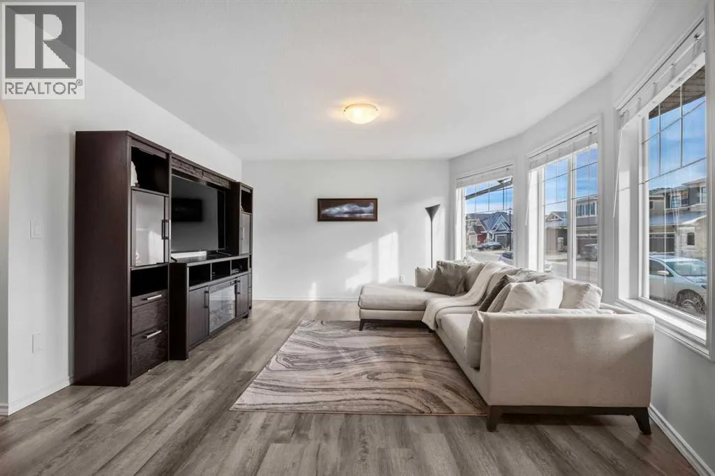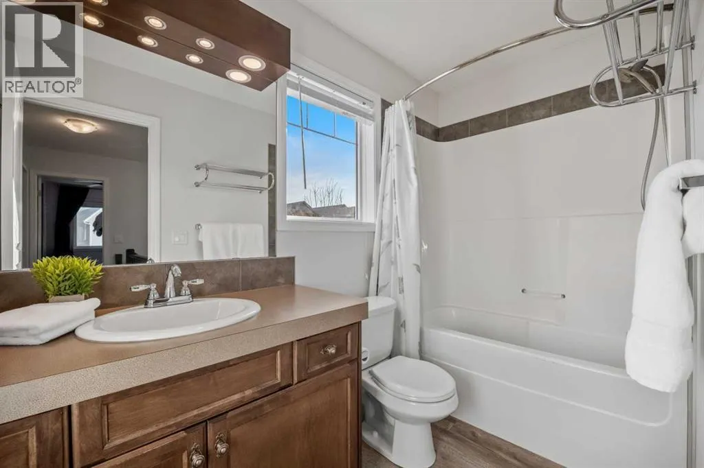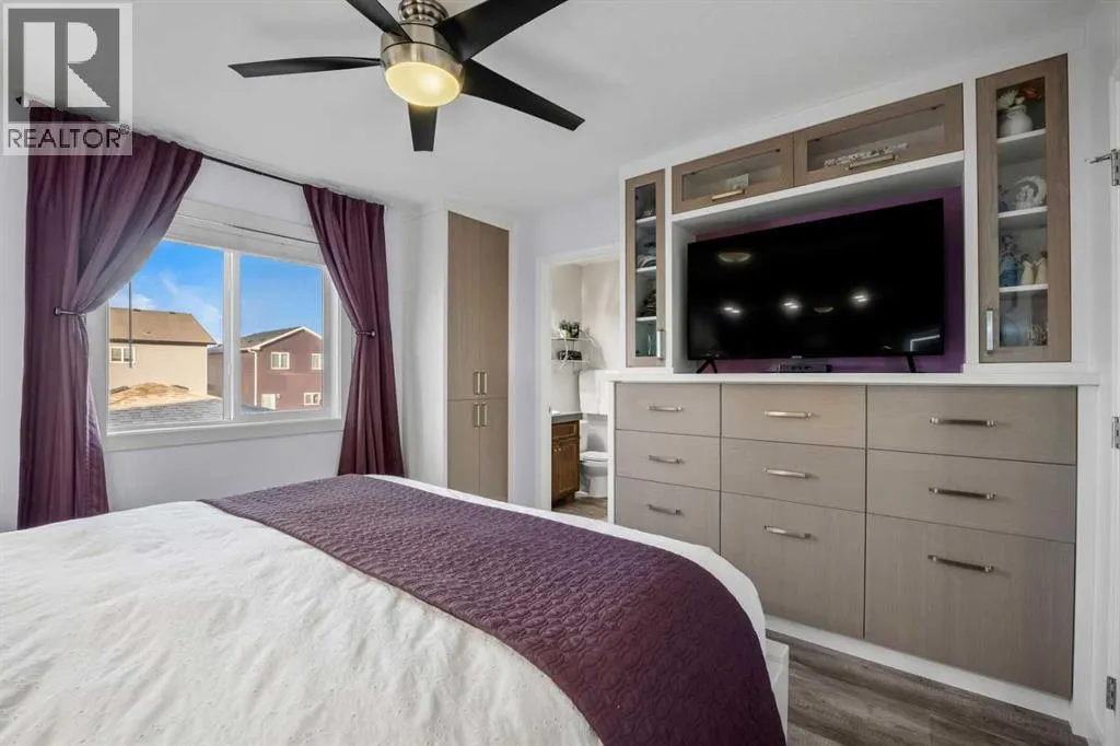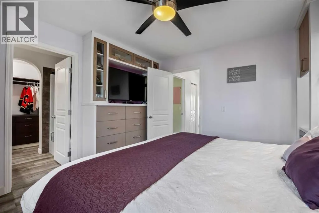 Step into exceptional Bayside living in this truly one-of-a-kind home located across from the scenic canal where every detail has been thoughtfully planned for comfort, style and everyday enjoyment. From the moment you arrive, youâll appreciate the inviting curb appeal, oversized heated double garage, perfect for year round convenience, extra storage, or a functional workshop space. Thoughtful upgrades include a tankless water heater, air conditioning, water softener, and newer washer & dryer, delivering modern efficiency and comfort. Inside, enjoy luxury vinyl plank flooring throughout (except the kitchen), no carpet anywhere! The open, light-filled main floor showcases a spacious living area with bay windows, half bathroom, a great kitchen with large pantry, custom dining nook with benches and beautiful custom built-ins throughout, creating both style and smart storage solutions. Upstairs features 3 spacious bedrooms, including a relaxing primary retreat complete with a 4-piece ensuite, walk-in closet with built-ins and a custom kangaroo bed, ET centre, dresser, side storage towers, armoire and make up vanity included. An additional 4-piece main bath serves the 2 secondary bedrooms, ideal for families or guests. The developed basement offers incredible versatility with sound-dampening insulation, making it perfect for movie nights, a games area, or a quiet workspace, and donât miss the secret door feature that adds a fun and unique touch! Step outside to your massive cedar deck with pergola, an entertainerâs dream. With a natural gas BBQ hook-up, plenty of space to host, and an extra wide lot with garden beds for the green thumb in the family, this backyard was designed for unforgettable summer evenings. An additional concrete pathway along the south side of the home enhances functionality and access to your outdoor space. This is more than just a home; itâs a lifestyle opportunity in one of Airdrieâs most sought-after canal communities. With premium upgrades, unb eatable outdoor living, and an incredible location, buyers will not want to miss this one. Walkable to Nose Creek Elementary school (K-5), shopping, parks and so much more, this location has it all. Book your private viewing today, homes like this donât last. VIRTUAL TOUR AVAILABLE! (id:27476)