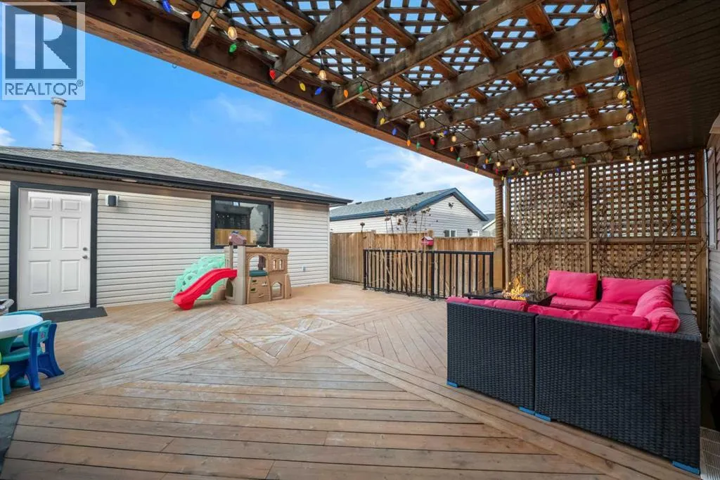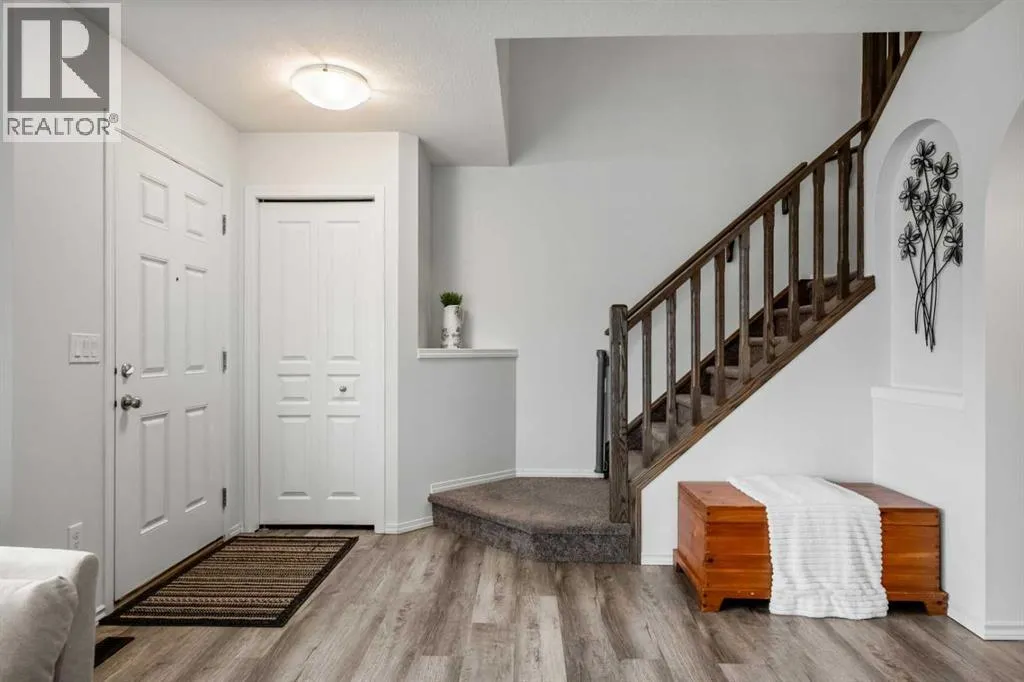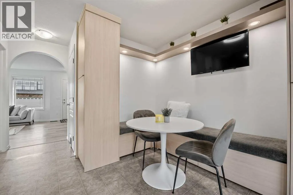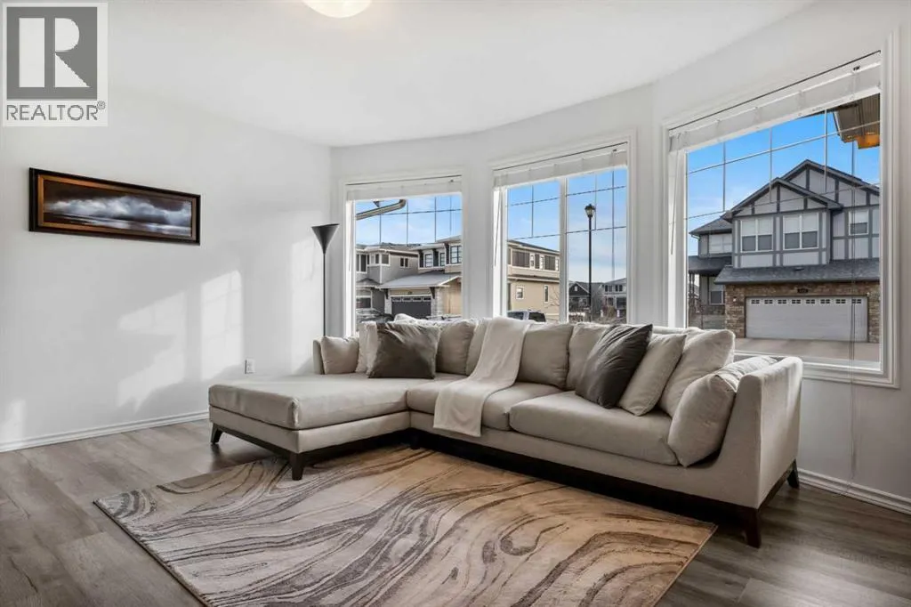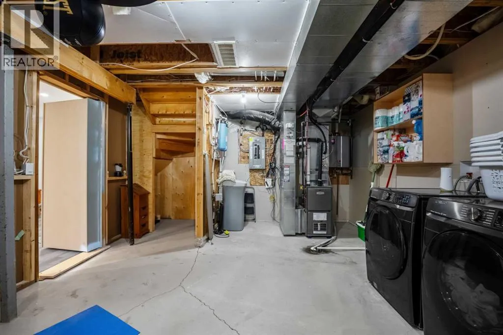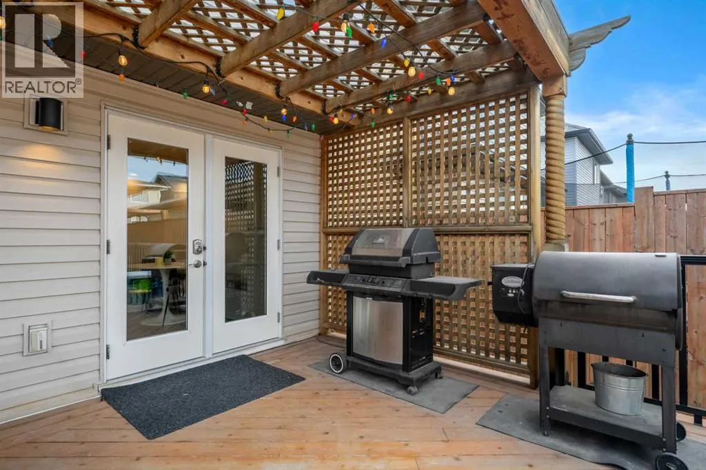 Step into exceptional Bayside living in this truly one-of-a-kind home located across from the scenic canal where every detail has been thoughtfully planned for comfort, style and everyday enjoyment. From the moment you arrive, youâll appreciate the inviting curb appeal, oversized heated double garage, perfect for year round convenience, extra storage, or a functional workshop space. Thoughtful upgrades include a tankless water heater, air conditioning, water softener, and newer washer & dryer, delivering modern efficiency and comfort. Inside, enjoy luxury vinyl plank flooring throughout (except the kitchen), no carpet anywhere! The open, light-filled main floor showcases a spacious living area with bay windows, half bathroom, a great kitchen with large pantry, custom dining nook with benches and beautiful custom built-ins throughout, creating both style and smart storage solutions. Upstairs features 3 spacious bedrooms, including a relaxing primary retreat complete with a 4-piece ensuite, walk-in closet with built-ins and a custom kangaroo bed, ET centre, dresser, side storage towers, armoire and make up vanity included. An additional 4-piece main bath serves the 2 secondary bedrooms, ideal for families or guests. The developed basement offers incredible versatility with sound-dampening insulation, making it perfect for movie nights, a games area, or a quiet workspace, and donât miss the secret door feature that adds a fun and unique touch! Step outside to your massive cedar deck with pergola, an entertainerâs dream. With a natural gas BBQ hook-up, plenty of space to host, and an extra wide lot with garden beds for the green thumb in the family, this backyard was designed for unforgettable summer evenings. An additional concrete pathway along the south side of the home enhances functionality and access to your outdoor space. This is more than just a home; itâs a lifestyle opportunity in one of Airdrieâs most sought-after canal communities. With premium upgrades, unb eatable outdoor living, and an incredible location, buyers will not want to miss this one. Walkable to Nose Creek Elementary school (K-5), shopping, parks and so much more, this location has it all. Book your private viewing today, homes like this donât last. VIRTUAL TOUR AVAILABLE! (id:27476)