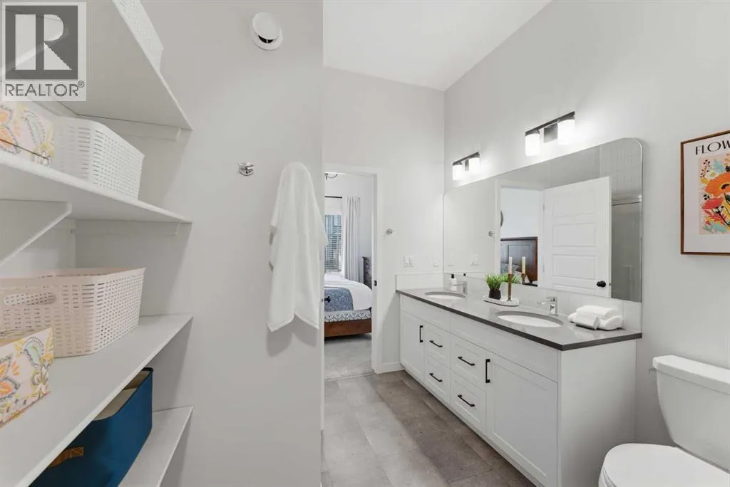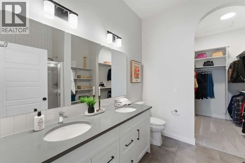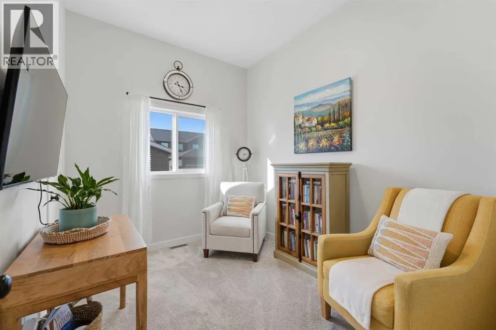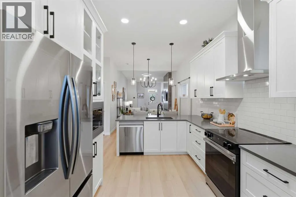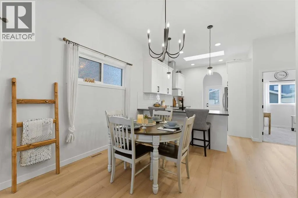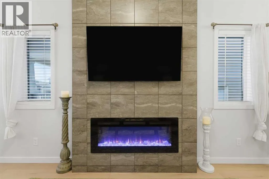 Welcome to an exceptional laned bungalow tucked into the award-winning community of Coopers Crossing in Airdrie where timeless design meets modern comfort in all the right ways.From the moment you arrive, this home makes a statement. Its charming laned configuration allows for a clean, welcoming front façade, while the rear double garage keeps the streetscape elegant and uncluttered. The low-maintenance landscaping frames the property beautifully, offering year-round curb appeal without demanding your weekends. Thoughtfully designed pathways and tidy greenery create a polished first impression that only gets better once you step inside.Open the front door and youâre greeted by soaring 10-foot ceilings on the main floorâan architectural feature that instantly enhances the sense of space and light. The expansive height amplifies every detail, from the modern lighting fixtures to the oversized windows that bathe the home in natural sunshine. The result is an airy, uplifting atmosphere that feels both luxurious and inviting.A Kitchen Designed to Impress. At the heart of the home lies a custom kitchen crafted for both everyday living and memorable entertaining. Beautiful cabinetry, sleek countertops, and thoughtful storage solutions combine style with functionality. A full set of appliances ensures youâre ready to host everything from intimate dinners to holiday gatherings. Whether youâre preparing a quiet morning coffee or a gourmet feast, this kitchen is as inspiring as it is practical.Above, a skylight draws in streams of natural light, adding warmth and brightness throughout the day. Itâs the kind of detail that subtly transforms the mood of the entire living spaceâsunshine by day, soft stargazing ambiance by night.Comfortable & Cozy Living SpacesThe living area is anchored by a striking electric fireplace, offering both visual charm and effortless warmth. Itâs the perfect focal pointâideal for cozy winter evenings or simply adding a touch of elegance to the ro om year-round.To ensure comfort in every season, the home is equipped with a central AC unit, keeping the interior refreshingly cool during Albertaâs warm summer months. Combined with the homeâs thoughtful design, this creates an environment that feels just right, no matter the weather outside.Thoughtful Bedroom & Bathroom LayoutThis bungalow features 2 spacious bedrooms and 2 full bathrooms, all conveniently located on the main level for easy living.The primary suite is a private retreatâgenerous in size and designed for relaxation. Large windows provide natural light, while the adjoining full ensuite offers a spa-like experience with quality finishes and ample space to unwind.The second bedroom is perfect for guests, family, or even a stylish home office. A second full bathroom ensures comfort and privacy for everyone.Outdoor Living at Its FinestStep outside to discover a large rear deckâan extension of your living space thatâs ideal for summer barbecues, morning coffee rituals, or quiet evenings (id:27476)