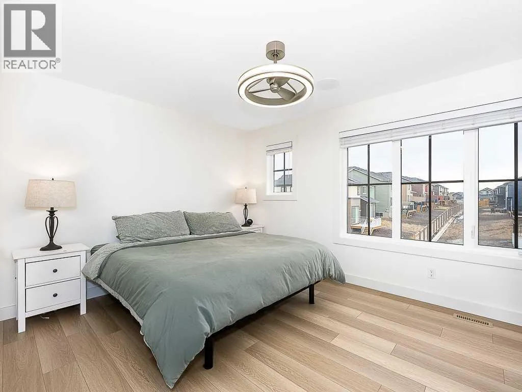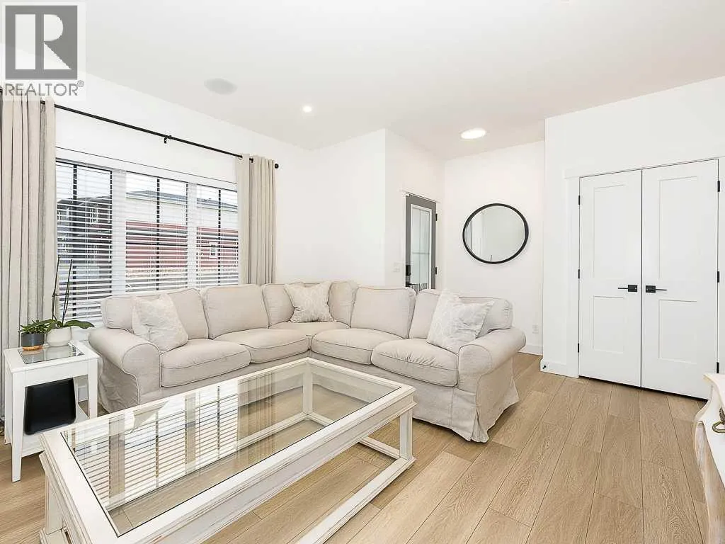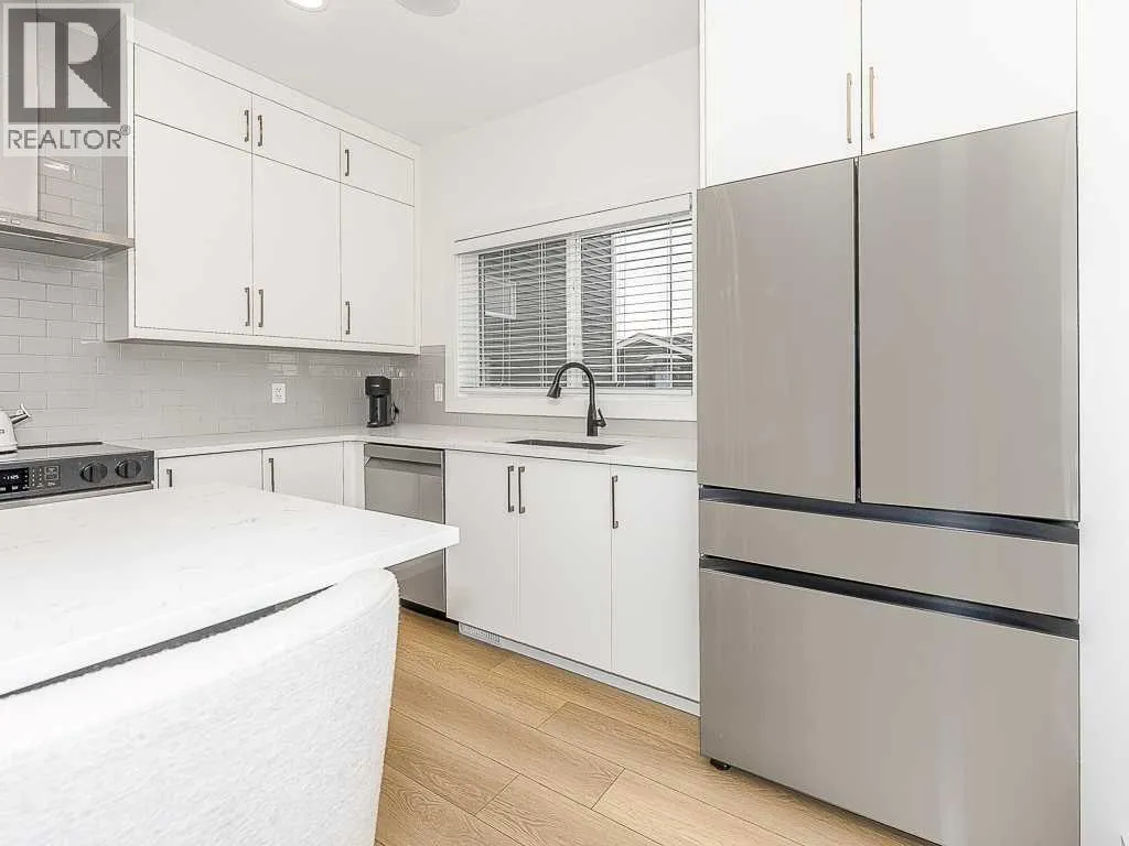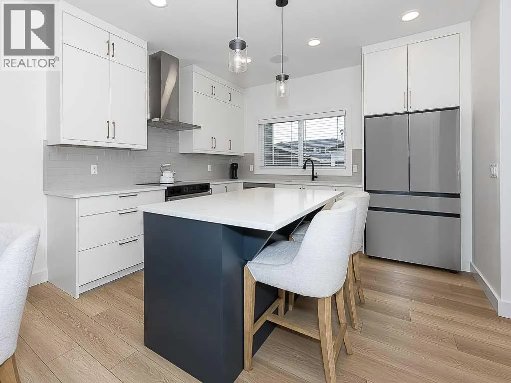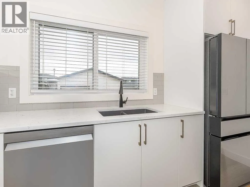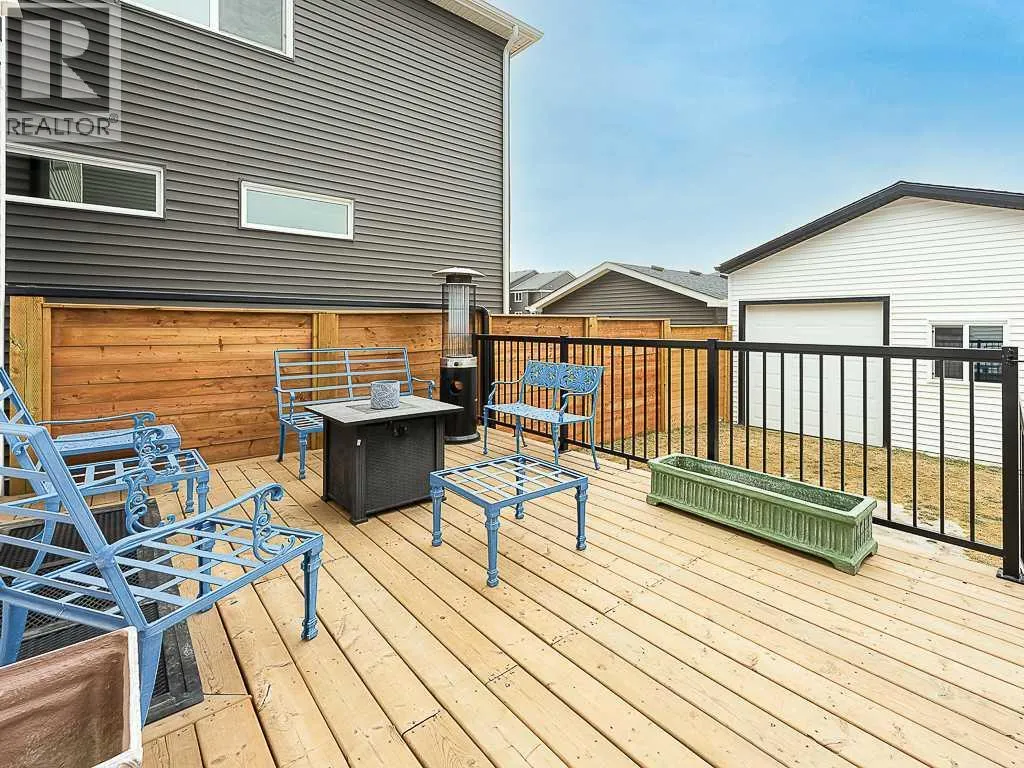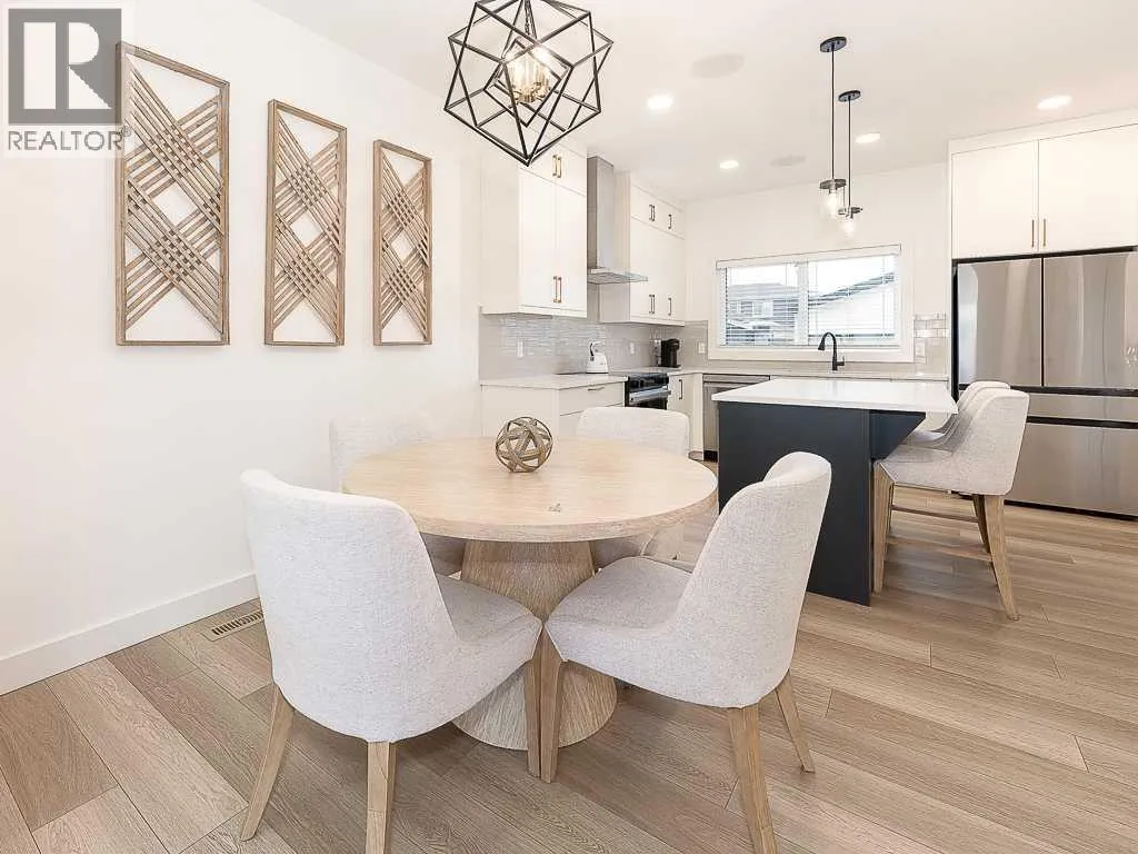 Beautifully upgraded single-family home by McKee Homes, combining modern style, comfort, and functionality. The bright main floor features a front living room with large windows, a spacious dining area, and a stunning rear kitchen with an island, quartz countertops, stainless steel appliances, and luxury vinyl plank flooring throughout. The open-concept layout creates a seamless flow, perfect for everyday living and entertaining. Upstairs offers three generous bedrooms, two full bathrooms, with the private primary suite offering a four-piece ensuite. Convenient upper-level laundry adds to the practical design, while the unfinished basement with a separate side entrance provides excellent future development potential. Step outside to a sunny south-facing deck and a fully fenced yard with a smart irrigation system. Gemstone lights wrap the home with soft, easy-maintenance lighting. The oversized detached garage features dual overhead doors and a 60-amp subpanel, ideal for car enthusiasts or hobbyists. Thoughtfully upgraded and move-in ready, this exceptional home in Airdrie perfectly balances modern design with everyday practicality. Book your private showing today! (id:27476)