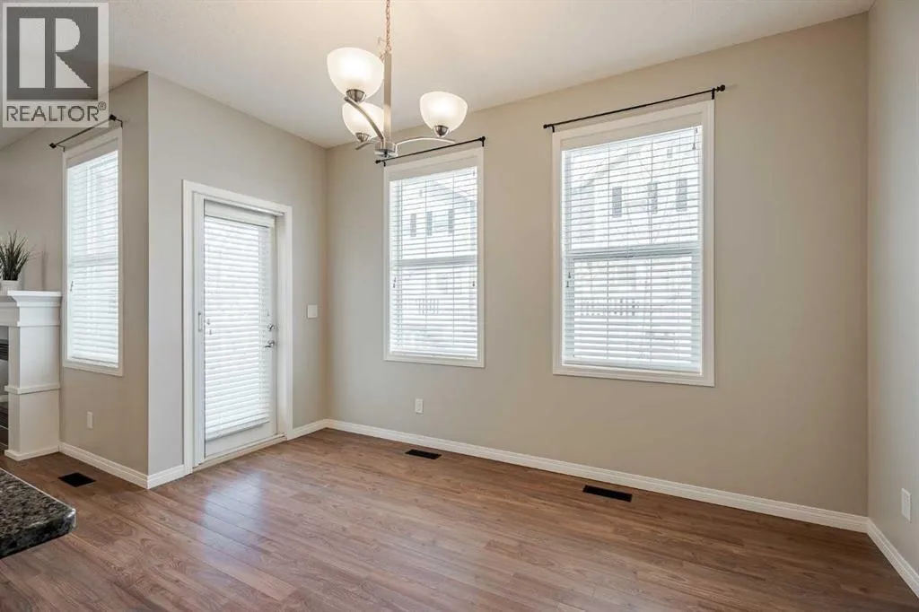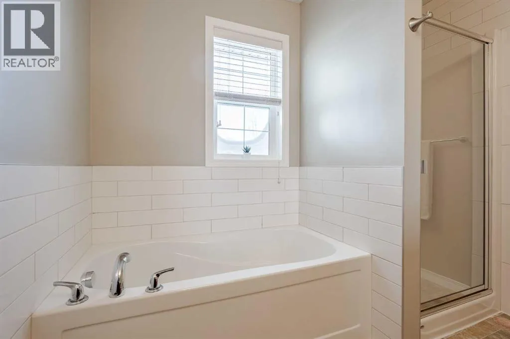 Welcome to this beautifully maintained 3 bedroom townhouse, perfectly positioned across from scenic pathways and an Environmental Reserveâoffering a peaceful, nature-filled setting with everyday convenience. The inviting main level features durable, high-quality laminate flooring, a cozy living room with a gas fireplace, and a chef-inspired kitchen designed for both style and function. Enjoy granite countertops, stainless steel appliances with a gas stove, ample cabinetry, a pantry, and a spacious dining area ideal for family meals or entertaining. Upstairs, the thoughtful layout includes a generous primary bedroom with his-and-hers closets and its own ensuite complete with a soaker tub and separate shower. Plus two additional bedrooms, a full 4-piece bathroom, and convenient upper-level laundry round out the floor. The unfinished basement offers a roughed-in bathroom and endless potential to customize to your needs. Pet-friendly with board approval (restrictions apply), this well-located home delivers comfort, space, and easy access to natureâan opportunity not to be missed. Book your showing today! (id:27476)