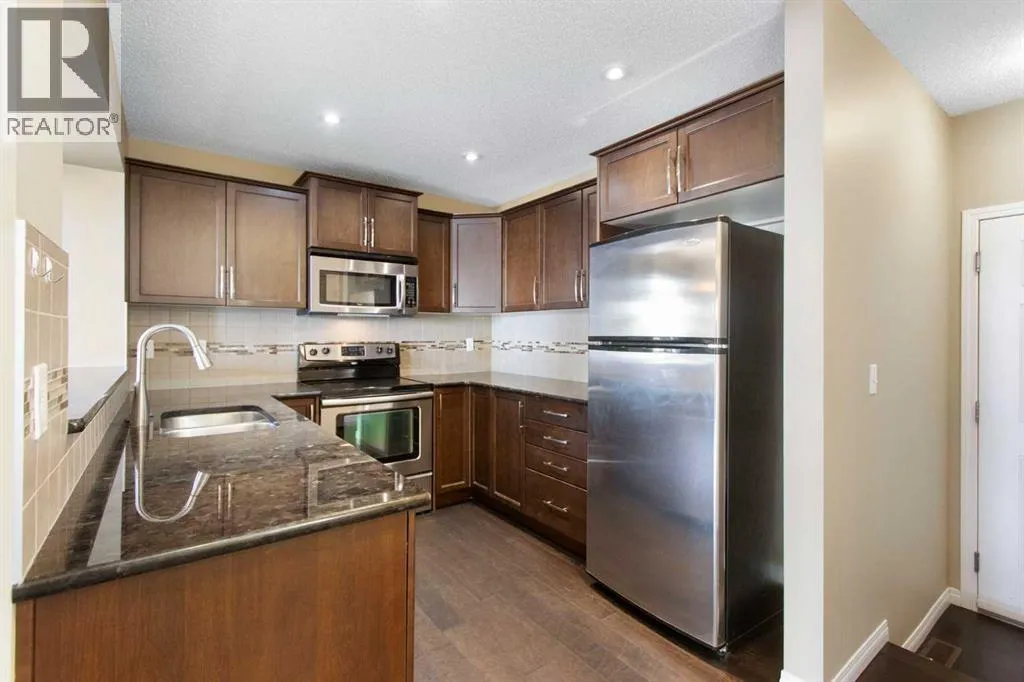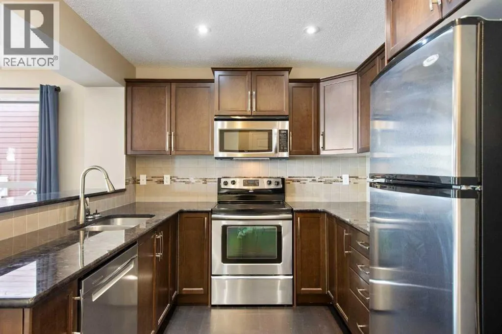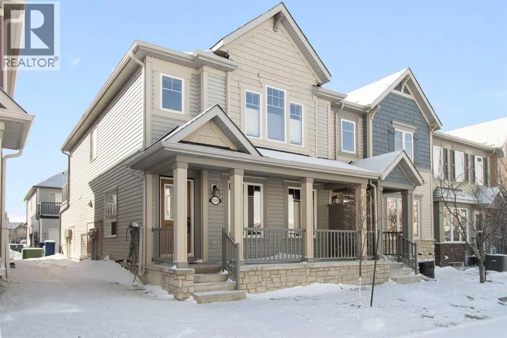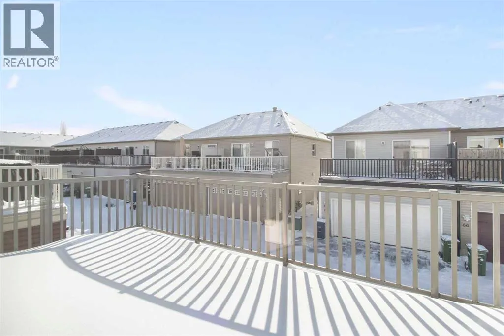Welcome to this stylish and affordable end-unit two-storey townhome in desirable Windsong, offering unbeatable value with no condo fees, a double attached garage, and a massive south-facing rooftop patio. Located on a quiet, family-friendly street with abundant parking, this home features a front yard, side green space, attractive landscaping, and a spacious covered front porch. Inside, a bright entryway leads to an open-concept main floor with a generous living room, dining area, and well-designed U-shaped kitchen complete with stainless steel appliances, electric stove, built in dishwasher, pantry, raised eating bar, and ample cabinetry and counter space. A mudroom off the kitchen provides convenient access to the garage and main floor half bath. Upstairs offers a versatile bonus/tech space with direct access to the sunny Duradek rooftop patio, along with three well-sized bedrooms including a primary suite with walk-in closet and 4-piece ensuite, plus an additional full bathroom. The unfinished basement includes laundry, bathroom rough-in, and room for future development. Perfect for first-time buyers, downsizers, or anyone seeking a low-maintenance lifestyle, this move-in ready home is close to schools, parks, shopping, dining, medical services, and scenic pathways, delivering exceptional comfort, functionality, and value in a vibrant community. (id:27476)