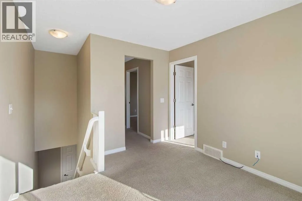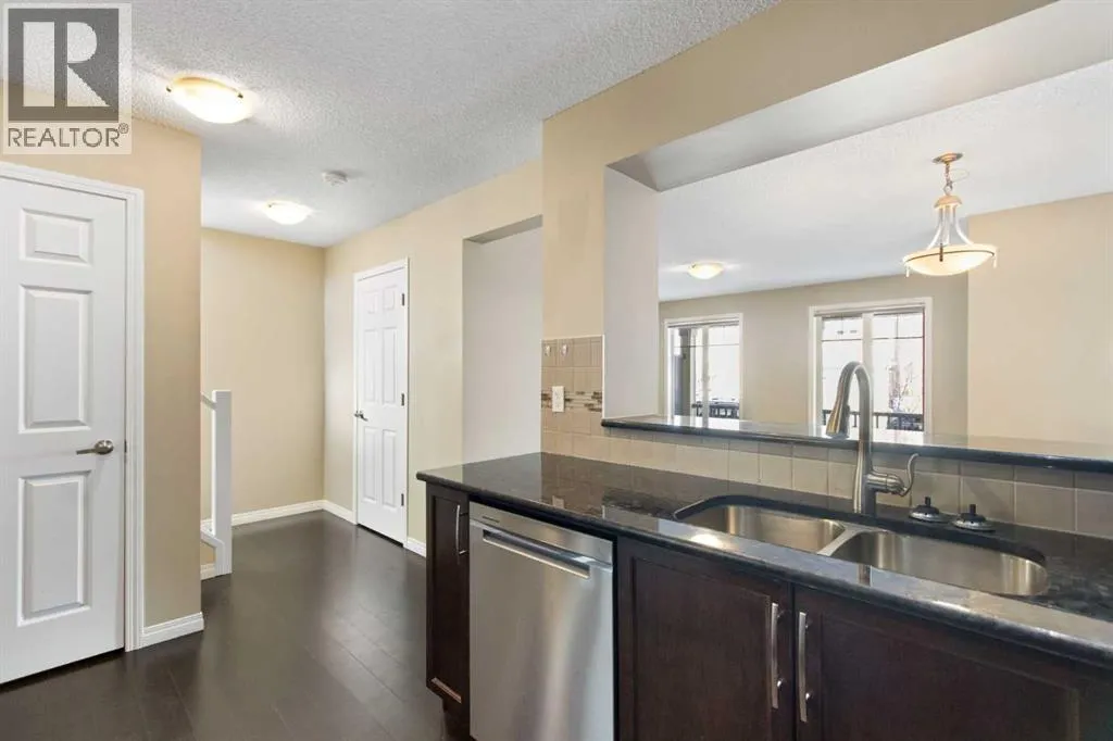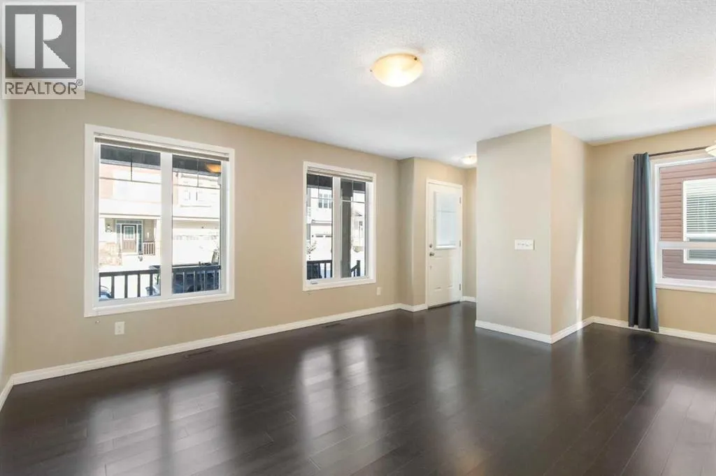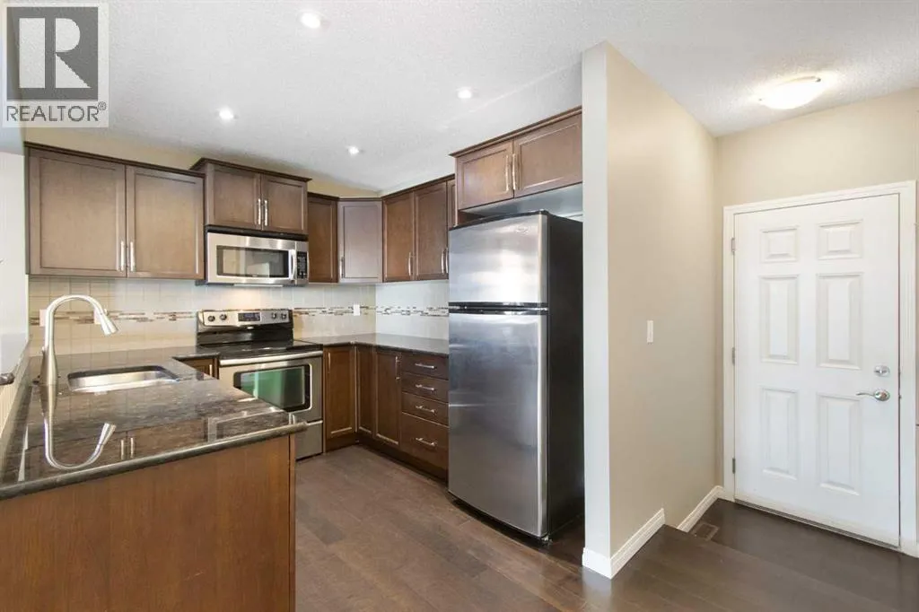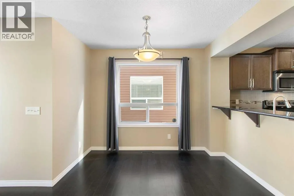 Welcome to this stylish and affordable end-unit two-storey townhome in desirable Windsong, offering unbeatable value with no condo fees, a double attached garage, and a massive south-facing rooftop patio. Located on a quiet, family-friendly street with abundant parking, this home features a front yard, side green space, attractive landscaping, and a spacious covered front porch. Inside, a bright entryway leads to an open-concept main floor with a generous living room, dining area, and well-designed U-shaped kitchen complete with stainless steel appliances, electric stove, built in dishwasher, pantry, raised eating bar, and ample cabinetry and counter space. A mudroom off the kitchen provides convenient access to the garage and main floor half bath. Upstairs offers a versatile bonus/tech space with direct access to the sunny Duradek rooftop patio, along with three well-sized bedrooms including a primary suite with walk-in closet and 4-piece ensuite, plus an additional full bathroom. The unfinished basement includes laundry, bathroom rough-in, and room for future development. Perfect for first-time buyers, downsizers, or anyone seeking a low-maintenance lifestyle, this move-in ready home is close to schools, parks, shopping, dining, medical services, and scenic pathways, delivering exceptional comfort, functionality, and value in a vibrant community. (id:27476)