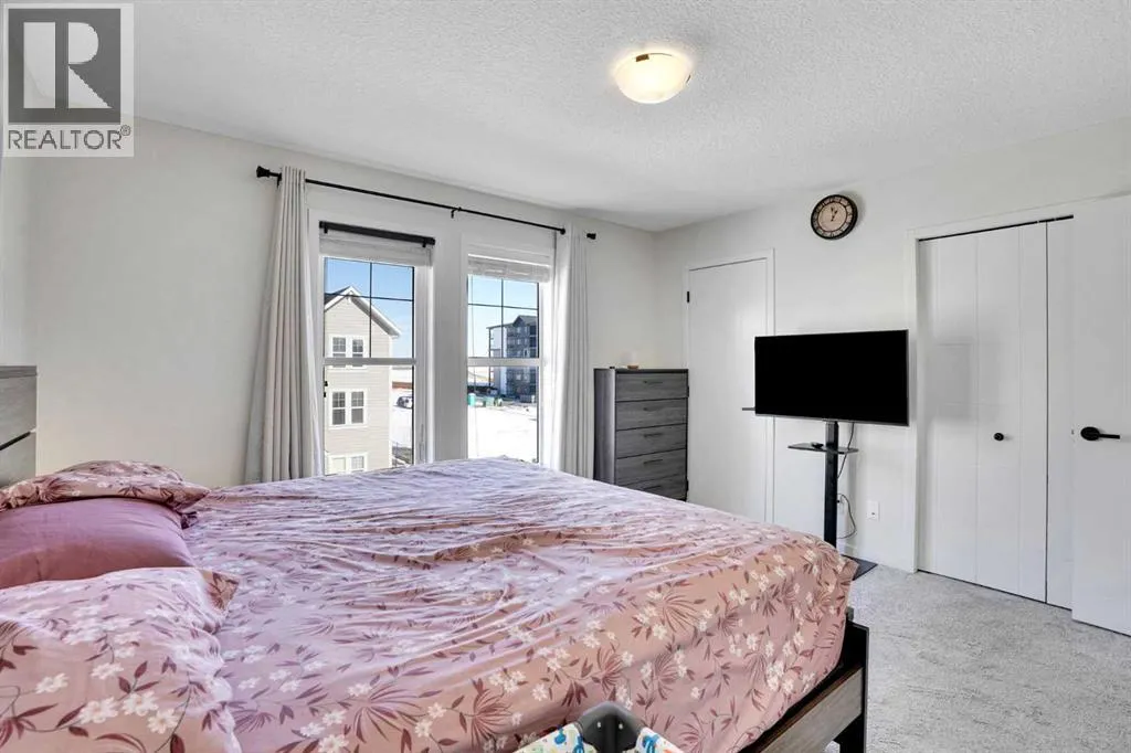 PRICE REDUCTION!!! Welcome to this impeccably maintained townhouse in the highly sought-after SouthPoint Park community of SW Airdrie. Offering 3 bedrooms, 2.5 bathrooms, and a versatile lower-level flex space, this residence seamlessly blends modern style, thoughtful design, and everyday comfort.Step inside to a bright, open-concept layout designed for both functionality and elegance. The lower level features a spacious flex areaâideal for a home office, fitness studio, media room, or play spaceâproviding flexibility to suit your lifestyle needs.The main level showcases beautiful vinyl plank flooring throughout and an effortless flow between living spaces. At the heart of the home is a stunning white kitchen accented with striking black finishes. Designed with both form and function in mind, it features a generous centre island, sleek stainless steel appliances, quartz countertops, and a dramatic full-height tile backsplash. Ample cabinetry and counter space make this kitchen perfect for everyday living and hosting gatherings alike.Across from the kitchen is a spacious dining area with direct access to a private balconyâan inviting extension of your living space. Adjacent, the comfortable and well-proportioned living room offers the perfect setting to relax or entertain. A convenient powder room completes this level.On the upper level, the primary suite provides a private retreat, complete with a 3-piece ensuite. Two additional well-sized bedrooms, a full bathroom, and the convenience of upper-level laundry complete the upper floor.The attached double garage offers both practicality and additional storage, while the spacious balcony creates an ideal outdoor escape for morning coffee or evening relaxation.Ideally located just steps from schools, playgrounds, and everyday amenities, this home presents an exceptional opportunity for families and modern buyers alike. With its strategic location, thoughtful layout, and outstanding value, this turnkey residen ce delivers comfort, convenience, and lifestyle in one exceptional package.Donât miss your chance to make this property your own â schedule a private showing or connect for early access today!??? (id:27476)