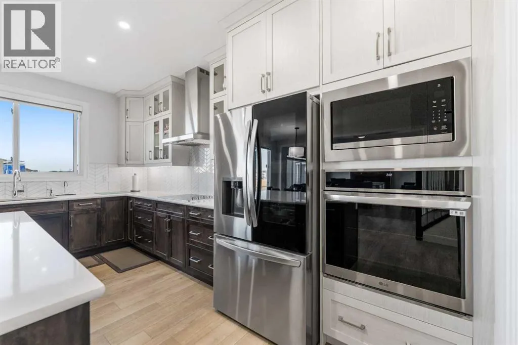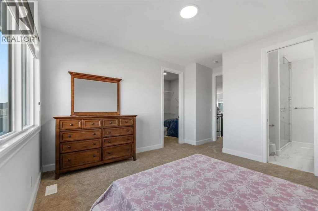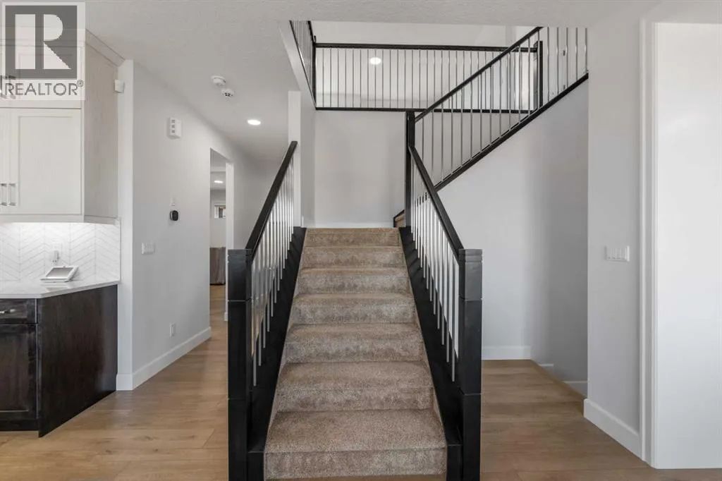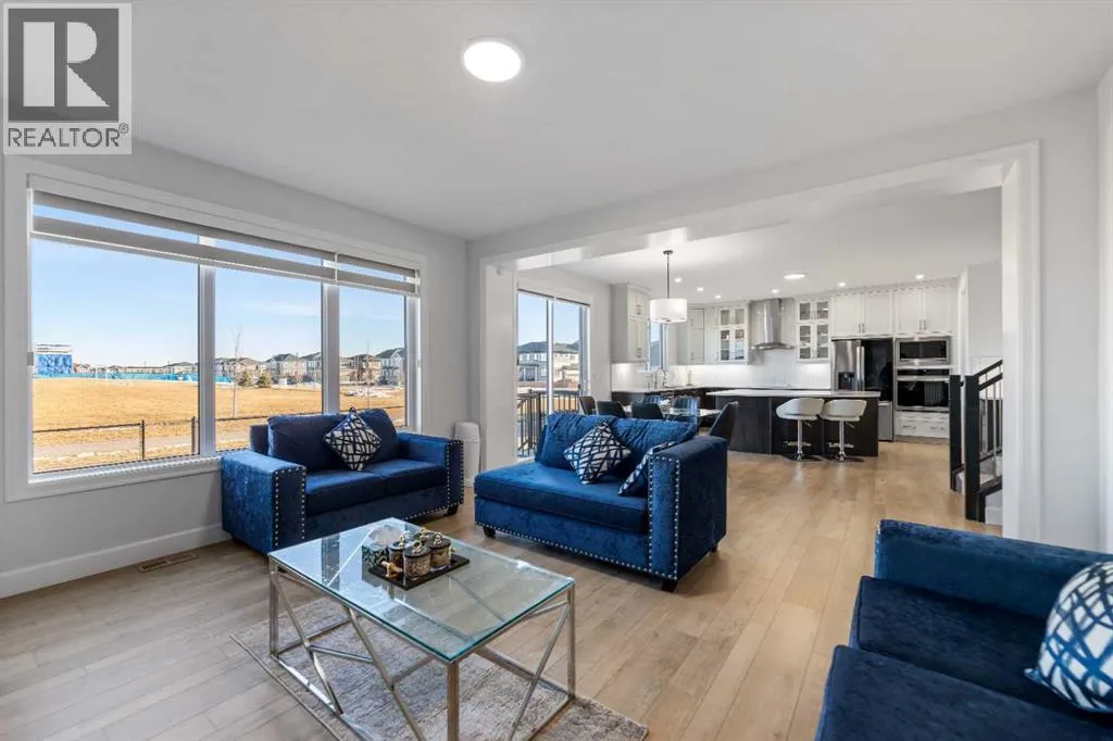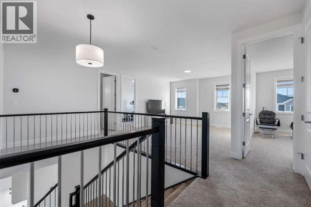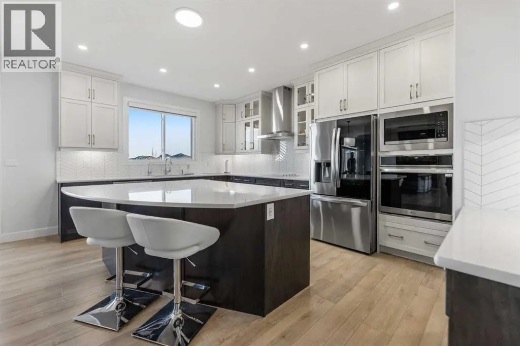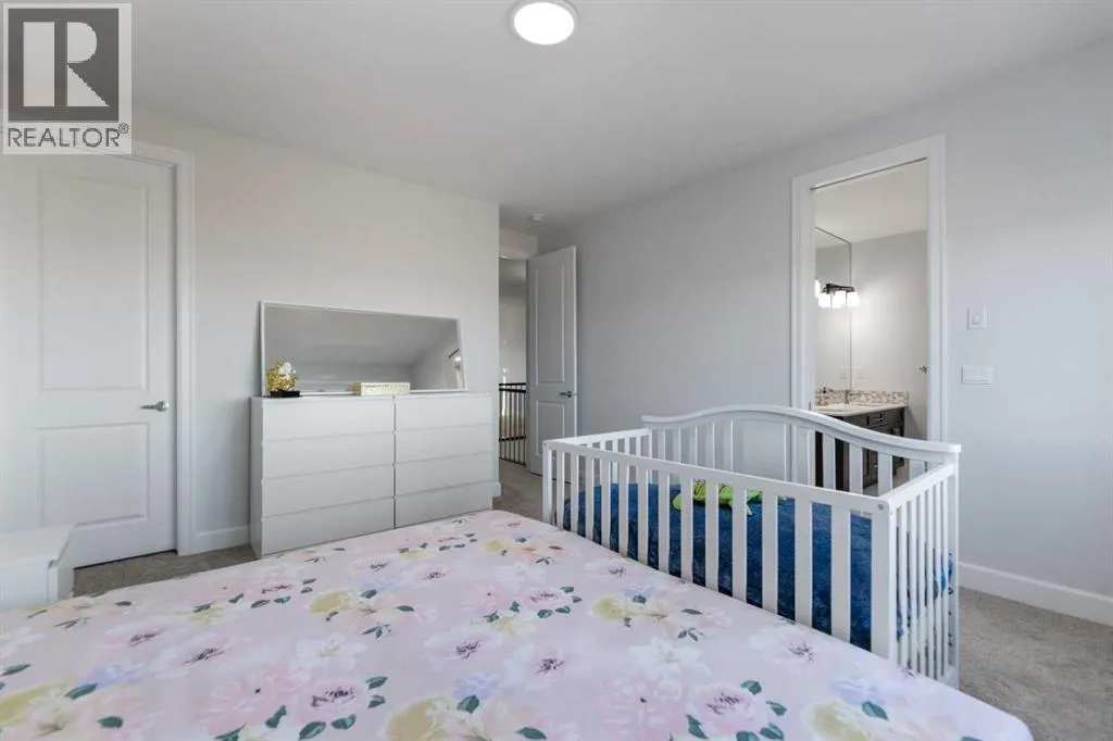 Welcome to 1116 Southwinds Green SW in Southwinds, Airdrie! Backing onto green space and a school, this upgraded 5-bedroom, 4 full-bathroom home offers approx. 2,800 sq. ft. above grade with over $200K in builder upgrades. Situated on a premium deep lot with an oversized backyard and separate basement entry. The main floor bedroom with full bathroom and two primary suites upstairs are thoughtfully designed. All three levels feature 9â ceilings and 8â doors. The open-concept main floor home includes upgraded luxury vinyl plank flooring, upgraded tile and carpet, triple-pane windows with motorized blinds, and a spacious living room with electric fireplace. The fully upgraded kitchen showcases two-tone cabinetry, built-in upgraded stainless steel appliances, electric cooktop, gas line rough-in, upgraded quartz countertops, large island, silgranit sink with soap dispenser, RO system, garburator, and walk-in pantry. Main-floor bedroom and full bath with standing shower ideal for guests or multi-generational living. Large mudroom adds functionality with ample storage space.Upstairs offers a huge bonus room, two primary suites each with walk-in closets and ensuites with dual sinks and large showers, plus two well sized additional bedrooms and full bath. Upper laundry with stackable washer/dryer and utility sink rough-in for future needs.Smart home with Wi-Fiâcontrolled appliances, lights, and garage door. Basement includes two legal-size windows and plumbing rough-in for future development.Premium green space location, front porch charm, and exceptional upgrades make this a rare opportunity in family-friendly Southwinds. (id:27476)