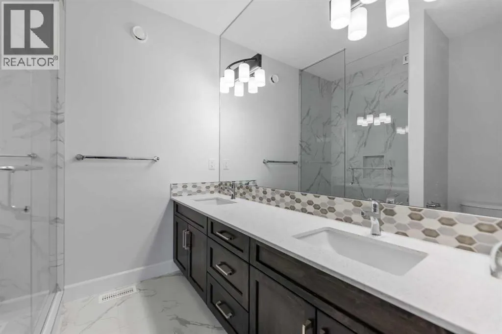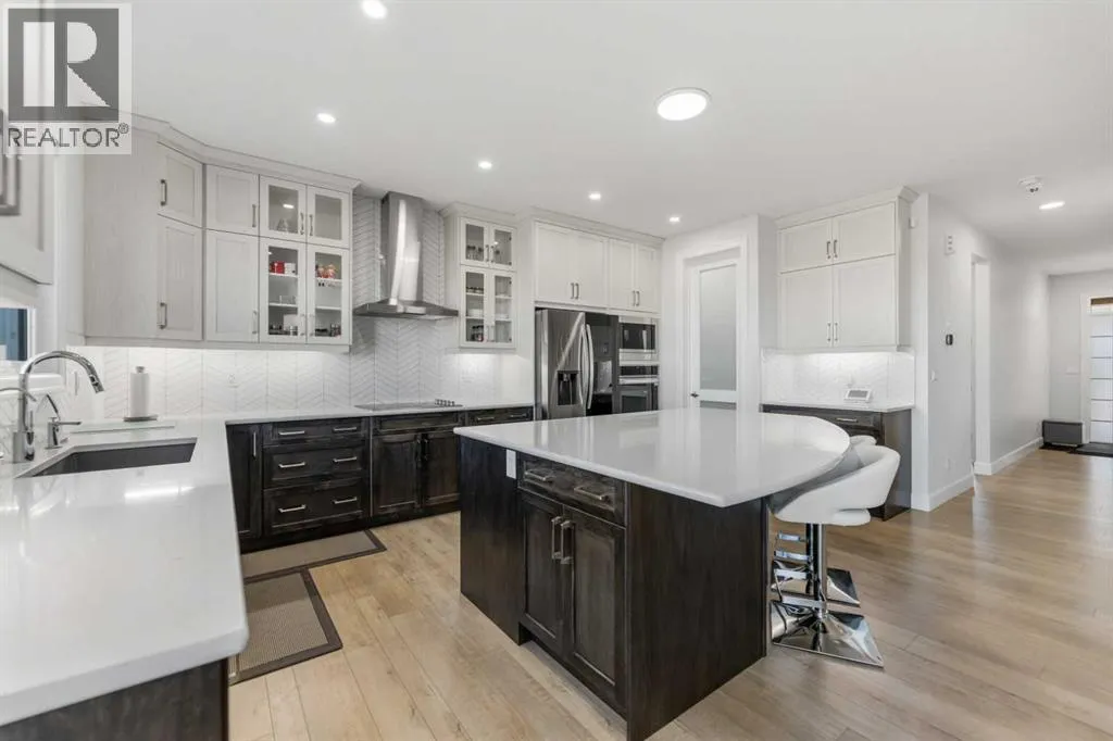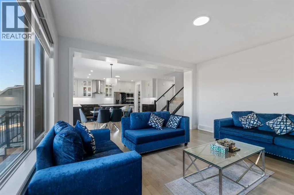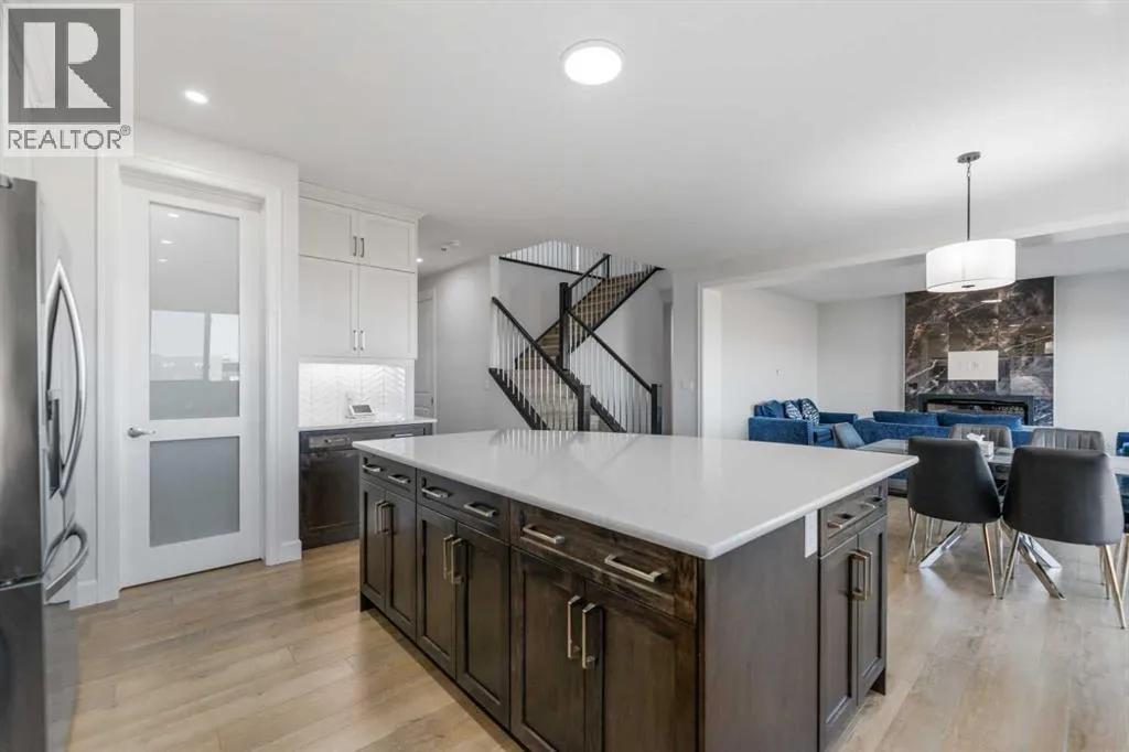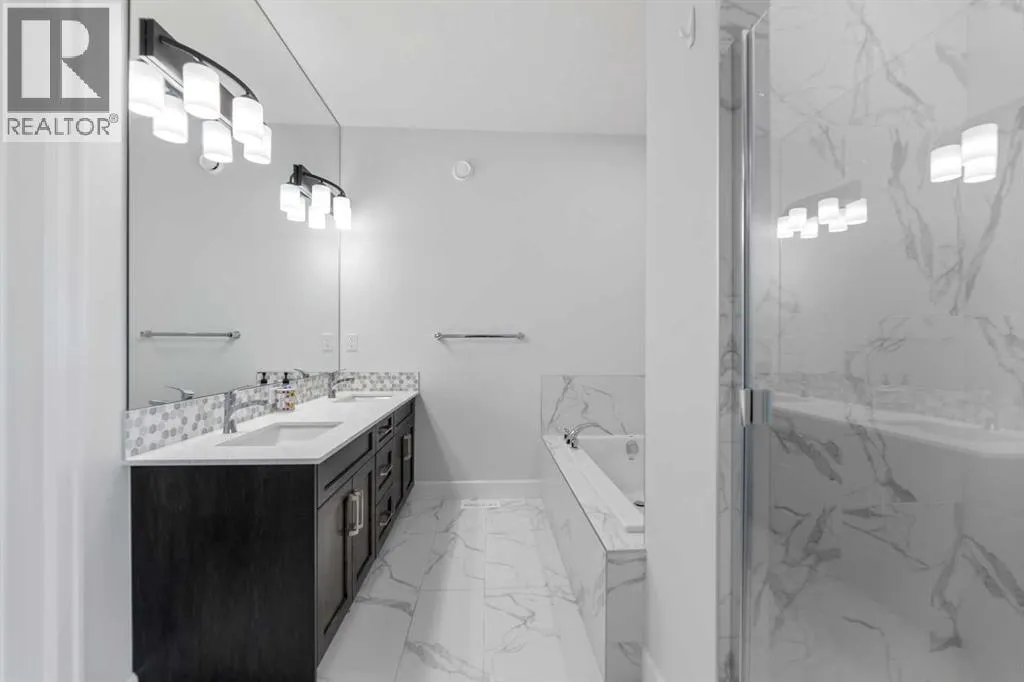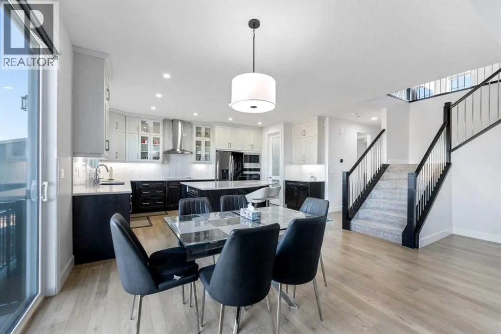 Welcome to 1116 Southwinds Green SW in Southwinds, Airdrie! Backing onto green space and a school, this upgraded 5-bedroom, 4 full-bathroom home offers approx. 2,800 sq. ft. above grade with over $200K in builder upgrades. Situated on a premium deep lot with an oversized backyard and separate basement entry. The main floor bedroom with full bathroom and two primary suites upstairs are thoughtfully designed. All three levels feature 9â ceilings and 8â doors. The open-concept main floor home includes upgraded luxury vinyl plank flooring, upgraded tile and carpet, triple-pane windows with motorized blinds, and a spacious living room with electric fireplace. The fully upgraded kitchen showcases two-tone cabinetry, built-in upgraded stainless steel appliances, electric cooktop, gas line rough-in, upgraded quartz countertops, large island, silgranit sink with soap dispenser, RO system, garburator, and walk-in pantry. Main-floor bedroom and full bath with standing shower ideal for guests or multi-generational living. Large mudroom adds functionality with ample storage space.Upstairs offers a huge bonus room, two primary suites each with walk-in closets and ensuites with dual sinks and large showers, plus two well sized additional bedrooms and full bath. Upper laundry with stackable washer/dryer and utility sink rough-in for future needs.Smart home with Wi-Fiâcontrolled appliances, lights, and garage door. Basement includes two legal-size windows and plumbing rough-in for future development.Premium green space location, front porch charm, and exceptional upgrades make this a rare opportunity in family-friendly Southwinds. (id:27476)