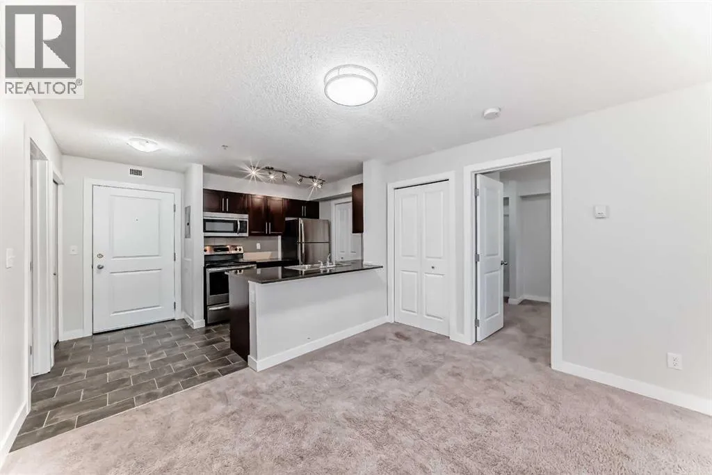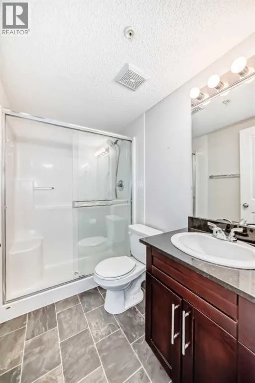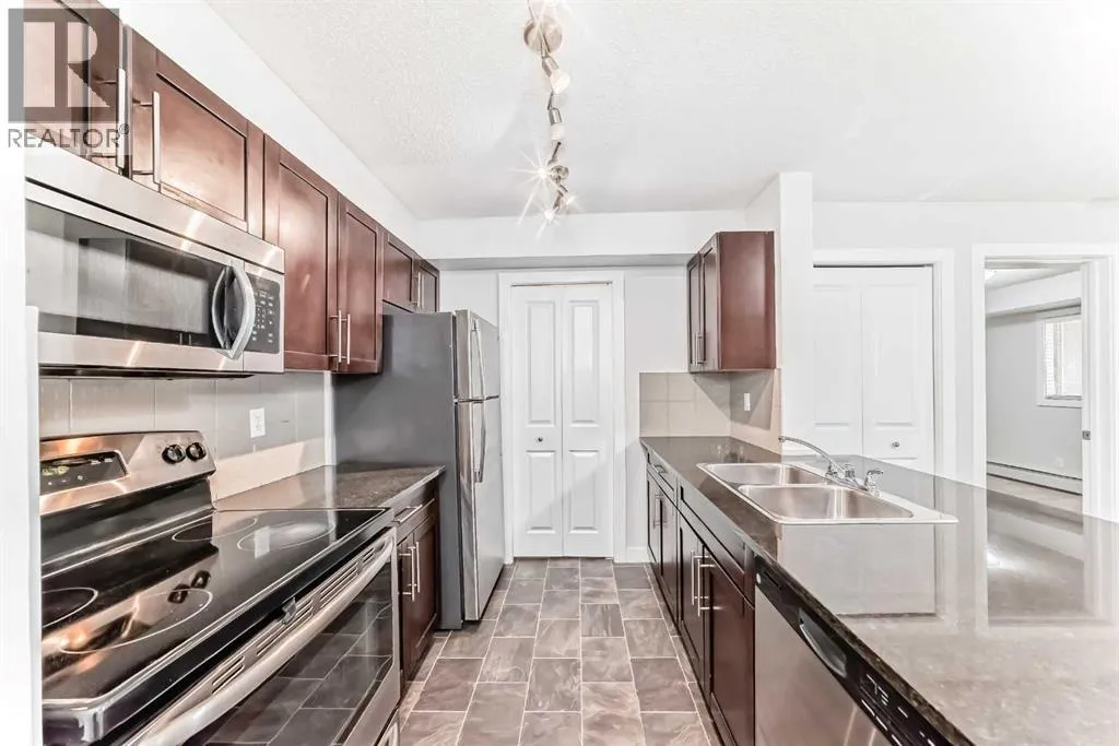 Rare opportunities like this do not come along often at Creekside Crossing. This bright and beautifully maintained three-bedroom, two-bathroom third-floor apartment offers 843 sq ft of smartly designed living space in the heart of Downtown Airdrieâan exceptional find at this price point. The open-concept living and dining area is filled with natural light, creating an inviting space perfect for relaxing or entertaining. The stylish kitchen features granite countertops, a convenient breakfast island, ample cabinetry, and a seamless connection to the main living area.The primary bedroom provides a comfortable private retreat with a walk-through closet leading to a 3-piece ensuite with a walk-in shower. Thoughtfully positioned on the opposite side of the unit, the two additional bedrooms share a spacious 4-piece bathroomâan ideal setup for families with children, guests, roommates, or a flexible home office. In-suite laundry adds everyday convenience, while the heated underground titled parking stall ensures year-round comfort and security.Condo fees include all utilities except electricity, providing excellent value and predictable monthly costs. Step outside and enjoy the convenience of downtown living with grocery stores, cafés, restaurants, pharmacies, medical services, fitness facilities, and transit all within walking distance. Parks and pathways are nearby for outdoor enjoyment, and quick access to major routes makes commuting simple. Whether you are a first-time buyer, a growing family, or an investor looking for strong value, this is a rare chance to secure a spacious three-bedroom home in one of Airdrieâs most convenient locations. Book your private showing today. (id:27476)