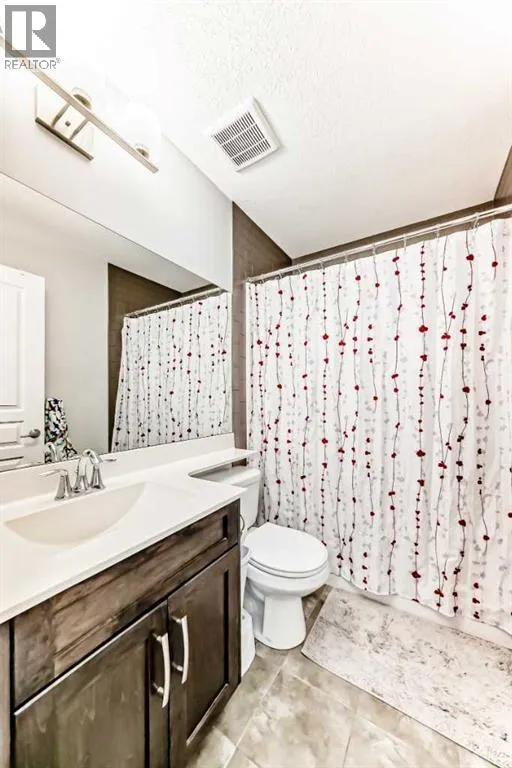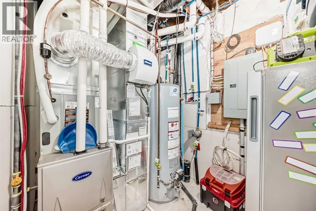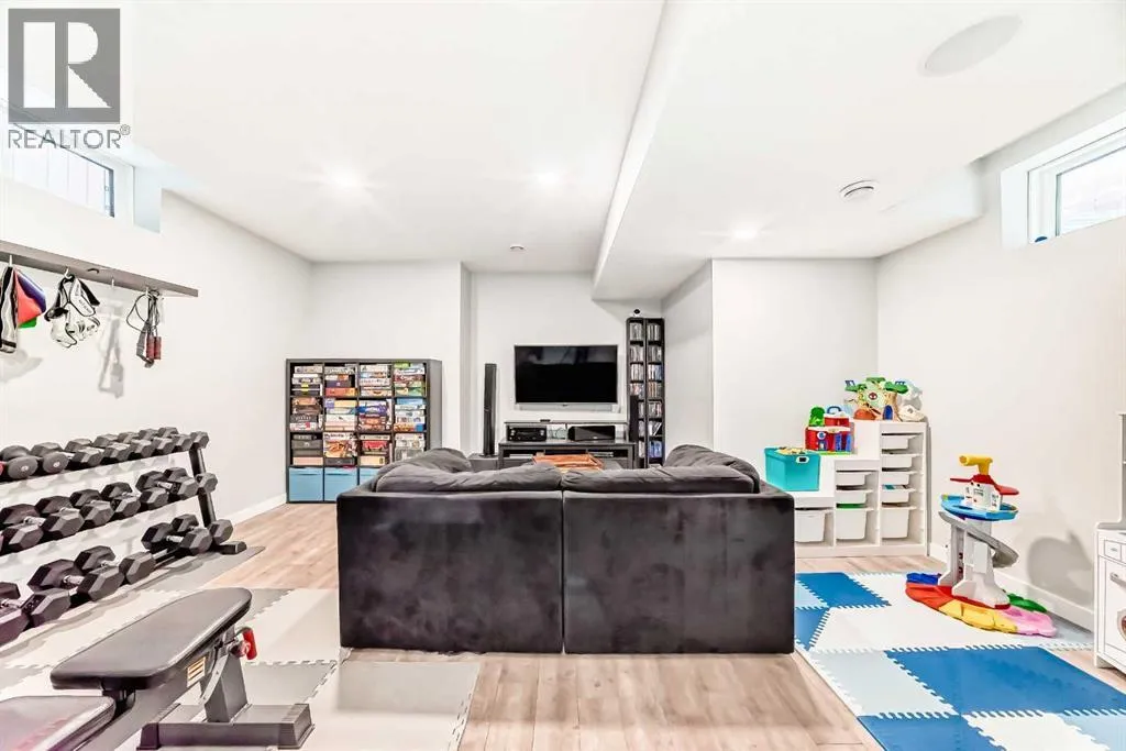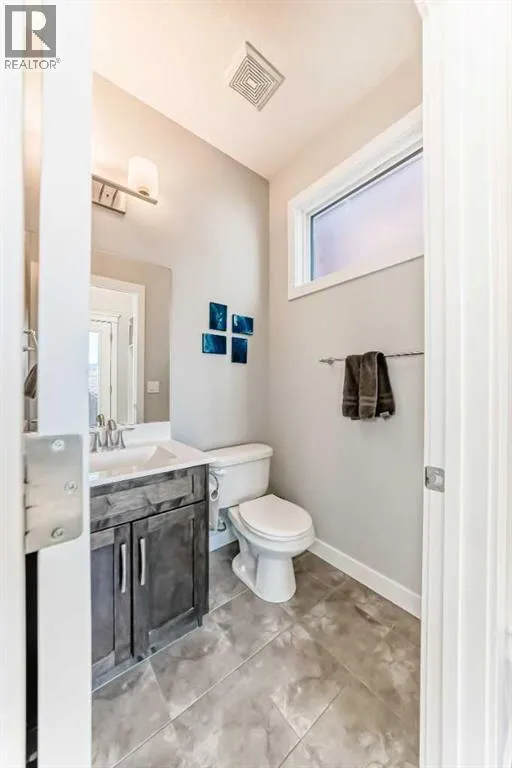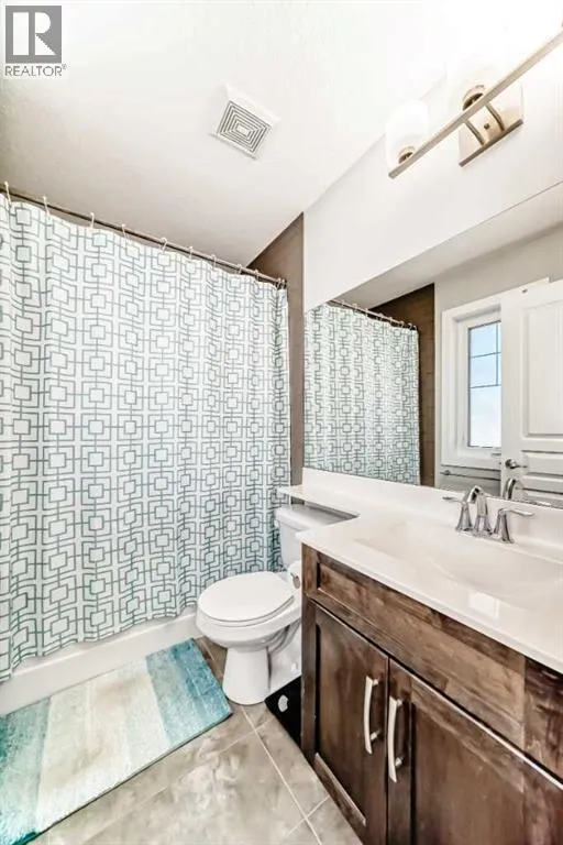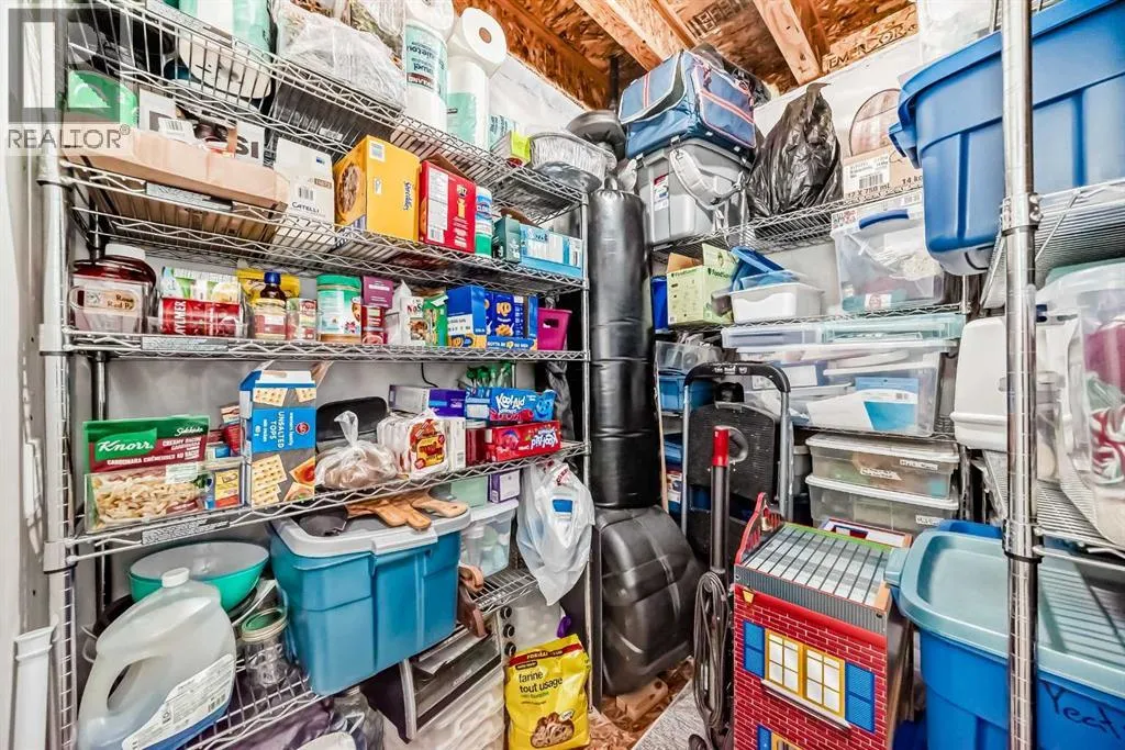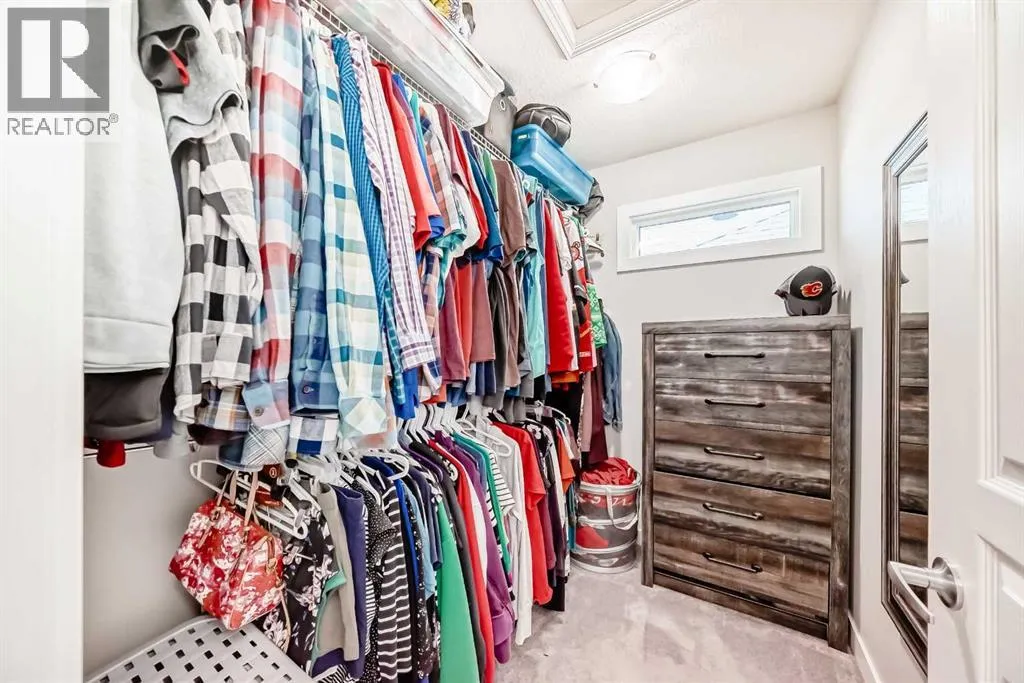 Perfect home for first time owners or a growing family, 2015 vintage 3+ bedroom 2 storey in Airdrie's district of Ravenswood. Lovely curb appeal with covered veranda. Upgraded wood laminate flooring on main floor with tiled front and rear entries. Large and spacious kitchen with 8 foot working island, separate pantry, 9 ft ceilings and tall cabinetry, dining room nook over looks rear yard, spacious great room expanding into flex space/dining area before kitchen area, main floor laundry room with storage space. 3 Bedroom upstairs, 4 pce ensuite plus 4 pce for other bedrooms, All bedrooms have walk-in closets. Huge lot (142 ft+ long lot with sunny western exposure). Rear yard b. house and garage is about 65 ft long and 30 ft wide., lots of room for children or adults to play. Huge 16 ft X 18 ft wood deck with pergola, small decorative rocked side yards for low maintenance or dog run. Completely fenced lot. Basement fully dev'd with 9 foot ceilings, raised floors with laminate flooring, an office/bedroom, large recreation room, large storage room. High efficient furnace, A/C, over sized water heater. Oversized double garage 24 ft wide and 22 ft deep. Large lots are rare without backing onto busy locations. (id:27476)
