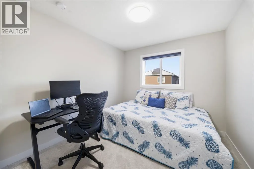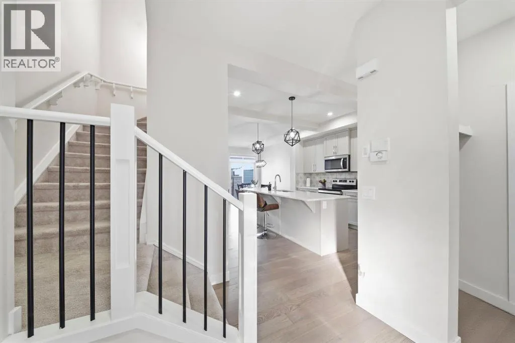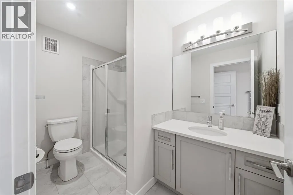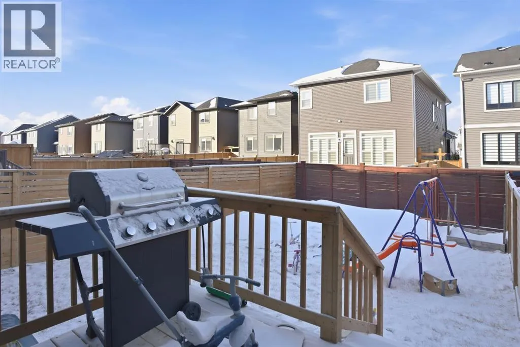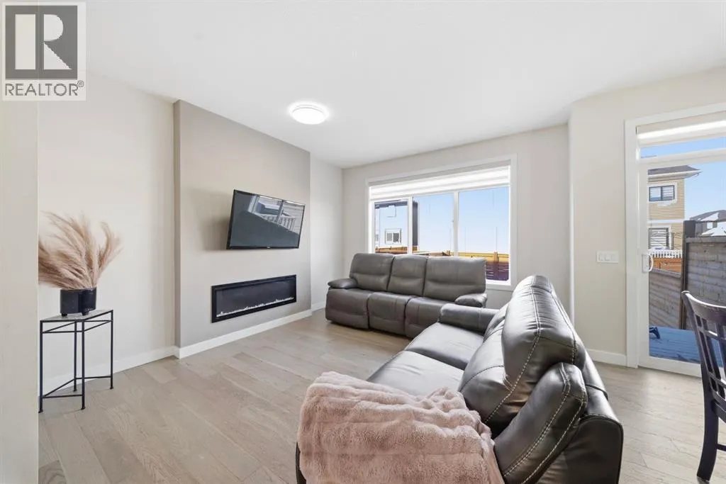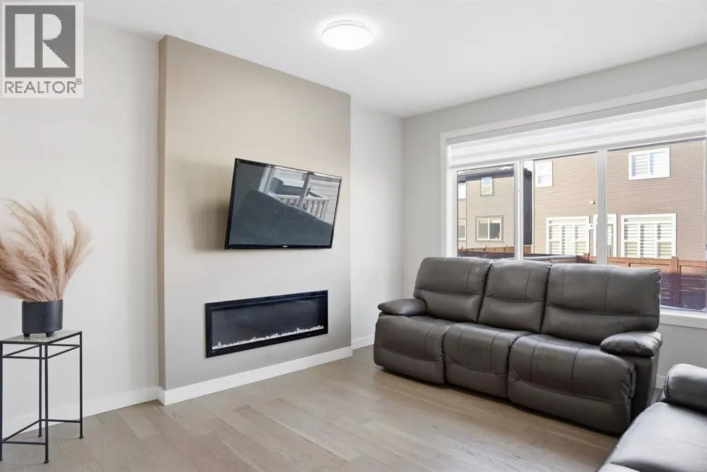 NEW PRICE!!!!! | A semi-detached Duplex feels like a House, Not Communal Living. More Privacy,Less Density. Built by Douglas Homes in 2021, this move-in ready duplex is located in the vibrant community of Creekrun in Airdrie, within the sought-after Cobblestone area, just steps from pickle-ball and tennis courts, soccer fields and green space. Offering 1410.11 sq ft of thoughtfully designed above grade living space, this home combines modern style, functionality and remaining new home warranty coverage for added peace of mind.The main floor features luxury Vinyl Plank Flooring, a bright open layout, a convenient half bath and a beautifully designed kitchen centred around a large 9 foot quartz island that comfortably seats up to six, making it the true heart of the home for everyday living and entertaining. A cozy electric fireplace, oversized windows and upgraded light fixtures add warmth and character throughout. Upstairs you will find three bedrooms including a spacious primary retreat with a walk in closet with a window and a private 3-piece ensuite. A full 4-piece bathroom and the convenience of upper floor laundry complete this level. Carpet is featured upstairs with tile flooring in the bathrooms.The unfinished side entry basement offers incredible future potential and the possibility for a legal suite (subject to city approval). Step outside to a fully fenced yard with a deck already built, a generous backyard and an attached single garage with ample storage.Additional highlights include a smart thermostat, electric range, over-the-range microwave hood fan, quartz countertops and a functional, well-planned layout throughout. There are no condo fees.The Alberta New Home Warranty began September 28, 2022 and includes five-year building envelope coverage and ten-year structural coverage.Creekrun is one of Airdrieâs newest and fastest growing communities, offering future schools, parks, pathways and quick access to shopping, Planet Fitness, No Fri lls and other everyday amenities, all within minutes. This is a rare opportunity to own a nearly new home in a growing, family friendly neighbourhood with long term value and income potential. (id:27476)
