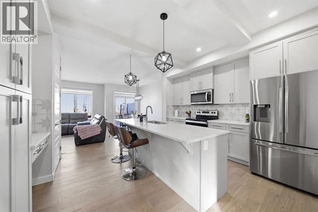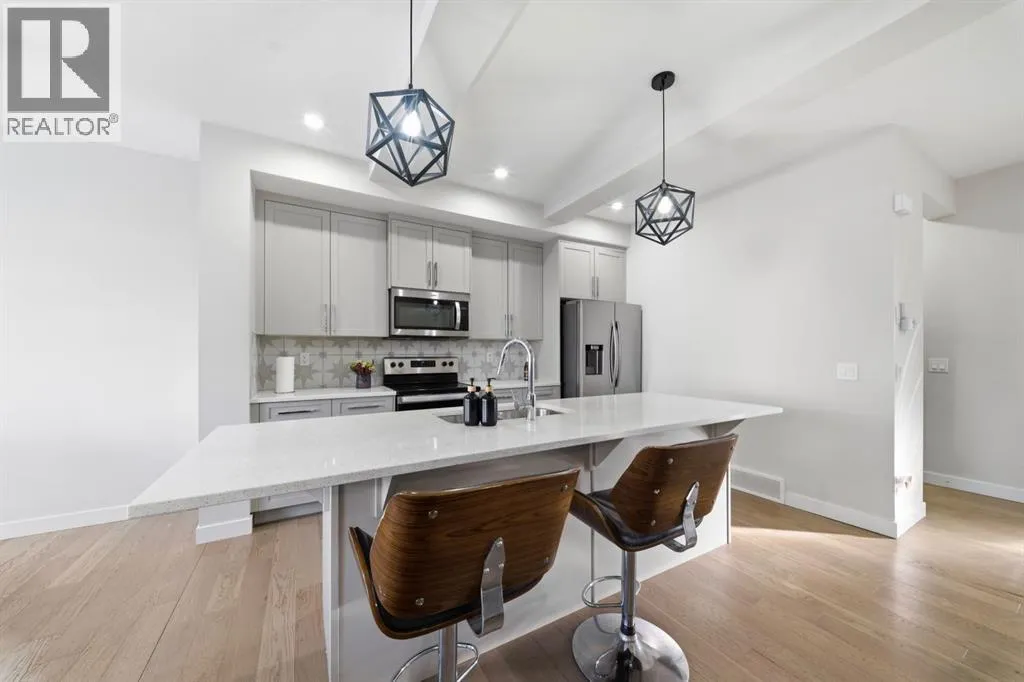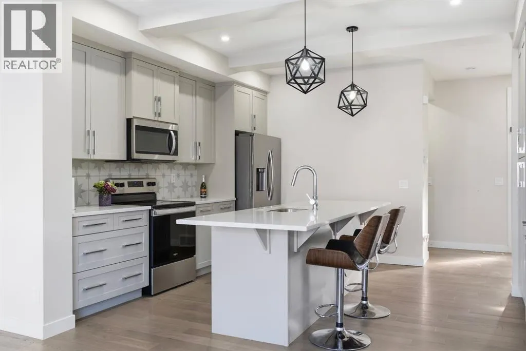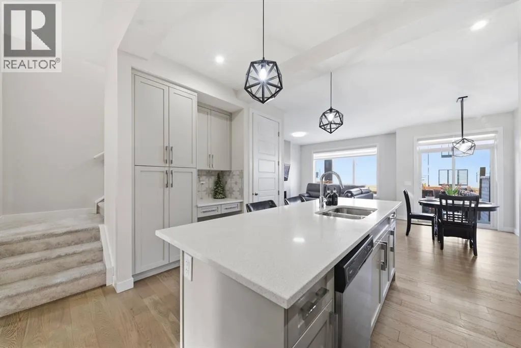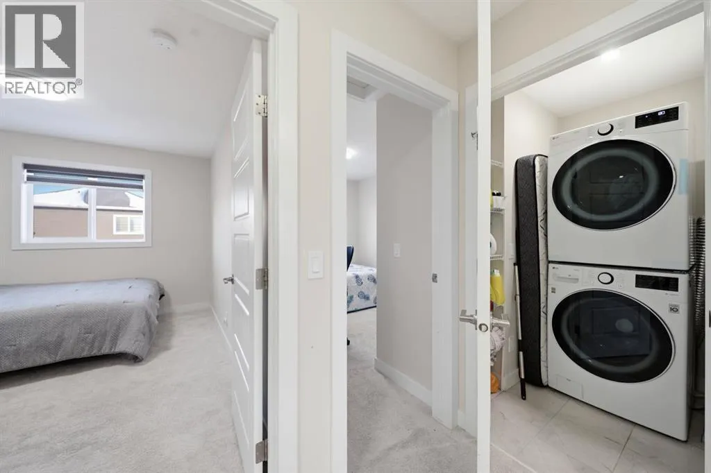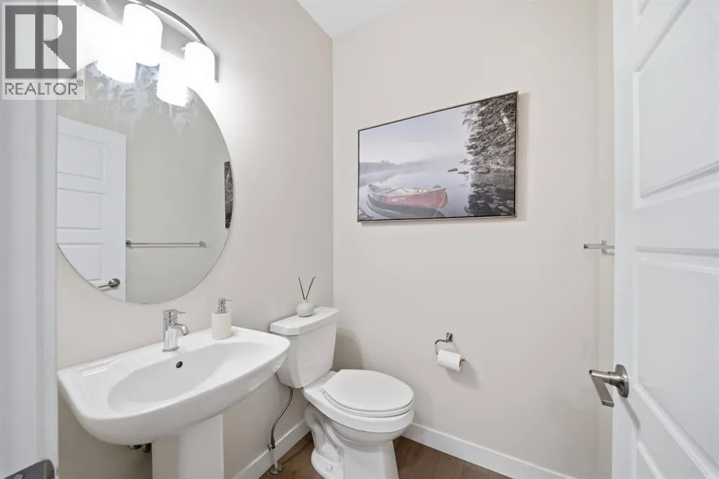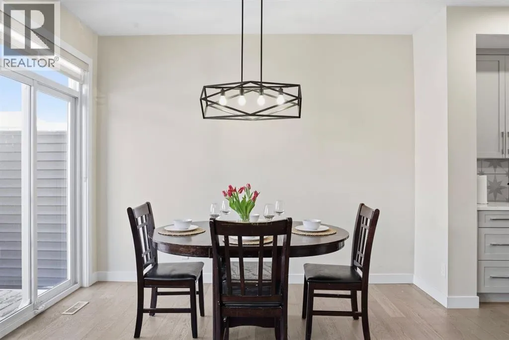 NEW PRICE!!!!! | A semi-detached Duplex feels like a House, Not Communal Living. More Privacy,Less Density. Built by Douglas Homes in 2021, this move-in ready duplex is located in the vibrant community of Creekrun in Airdrie, within the sought-after Cobblestone area, just steps from pickle-ball and tennis courts, soccer fields and green space. Offering 1410.11 sq ft of thoughtfully designed above grade living space, this home combines modern style, functionality and remaining new home warranty coverage for added peace of mind.The main floor features luxury Vinyl Plank Flooring, a bright open layout, a convenient half bath and a beautifully designed kitchen centred around a large 9 foot quartz island that comfortably seats up to six, making it the true heart of the home for everyday living and entertaining. A cozy electric fireplace, oversized windows and upgraded light fixtures add warmth and character throughout. Upstairs you will find three bedrooms including a spacious primary retreat with a walk in closet with a window and a private 3-piece ensuite. A full 4-piece bathroom and the convenience of upper floor laundry complete this level. Carpet is featured upstairs with tile flooring in the bathrooms.The unfinished side entry basement offers incredible future potential and the possibility for a legal suite (subject to city approval). Step outside to a fully fenced yard with a deck already built, a generous backyard and an attached single garage with ample storage.Additional highlights include a smart thermostat, electric range, over-the-range microwave hood fan, quartz countertops and a functional, well-planned layout throughout. There are no condo fees.The Alberta New Home Warranty began September 28, 2022 and includes five-year building envelope coverage and ten-year structural coverage.Creekrun is one of Airdrieâs newest and fastest growing communities, offering future schools, parks, pathways and quick access to shopping, Planet Fitness, No Fri lls and other everyday amenities, all within minutes. This is a rare opportunity to own a nearly new home in a growing, family friendly neighbourhood with long term value and income potential. (id:27476)