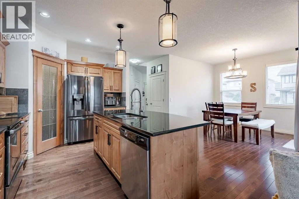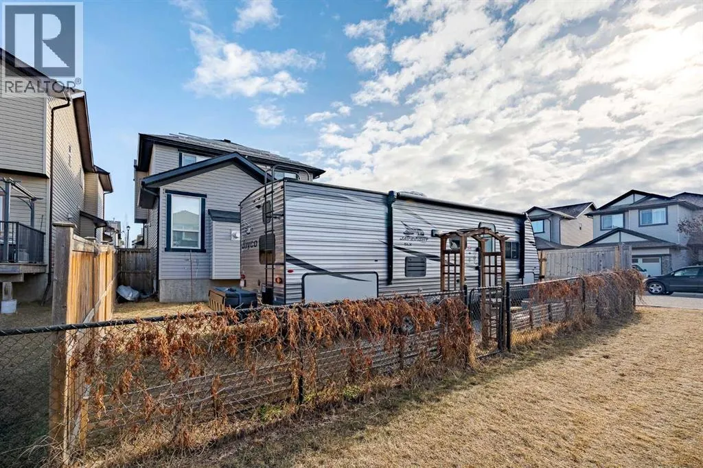 YOUR CHANCE TO ACCESS AIRDRIE DETACHED CORNER LOT FOR UNDER $600,000! | Set on a prominent corner lot in the established community of Prairie Springs, this fully developed two-storey offers the space, layout, and versatility for growing families! With ~2,400 sqft of total living space designed to function as beautifully as it feels, featuring 4 total bedrooms, 3.5 bathrooms and a fully developed basement.The double front attached garage, double-car driveway, and additional RV parking pad in the backyard create rare flexibility for multi-vehicle households, recreational storage, or future utility needs. Corner lots also mean more breathing room, additional street parking, and enhanced curb appeal.Inside, the main floor unfolds in a warm and welcoming open-concept design. Rich hardwood flooring leads into a kitchen that is both practical and polished, featuring granite countertops, ample prep space, and seamless flow into the dining area and quick access onto the back deck. The spacious living room is anchored by a cozy fireplace â an inviting focal point for quiet evenings or lively gatherings. Whether hosting gatherings or managing weekday routines, the layout supports real life family needs.Large windows invite natural light throughout, while the connection to the backyard deck extends your living space outdoors. The deck is ideal for summer entertaining, morning coffee rituals, or simply unwinding after a long day. Garden beds provide an opportunity to cultivate vegetables, herbs, or seasonal colour â adding personality and purpose to the yard. That's not all â right behind the yard is a community walking path leading to a playground, perfect for walking the dog and for kids to explore!Upstairs, three bedrooms create a comfortable retreat for the family. The primary suite offers privacy and convenience with its own ensuite, while the additional bedrooms are thoughtfully sized for children, guests, or home office flexibility. Carpet upstairs adds comfort un derfoot, balanced by durable ceramic tile in high-traffic areas.The fully developed basement meaningfully expands the homeâs functionality. A fourth bedroom, full bathroom, and generous recreation room / movie room creates endless options â whether as a teenagerâs retreat, guest quarters, home gym, media lounge, or play space. This lower level ensures the home adapts as your familyâs needs evolve.What sets this property apart is its balance: open yet defined spaces, indoor-outdoor flow, storage and parking flexibility, and a location within the established south-Airdrie neighbourhood Prairie Springs that remains popular for its family-oriented atmosphere and accessibility. Quick access onto Highway 2 provides commute to Calgary within minutes. Book your showing today, and see all this home has to offer! Rare corner lot with RV parking! (id:27476)