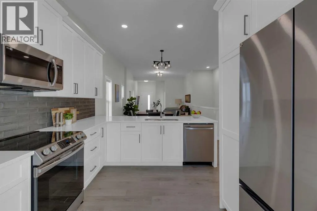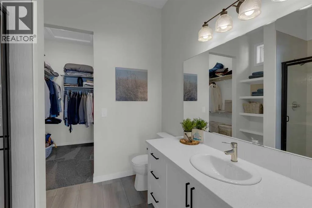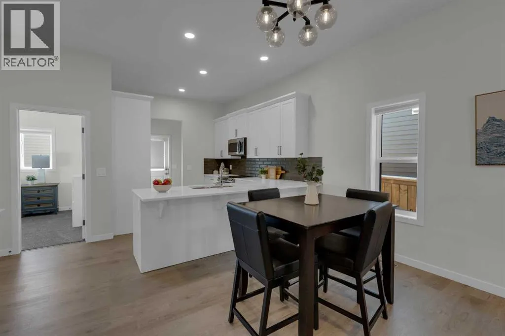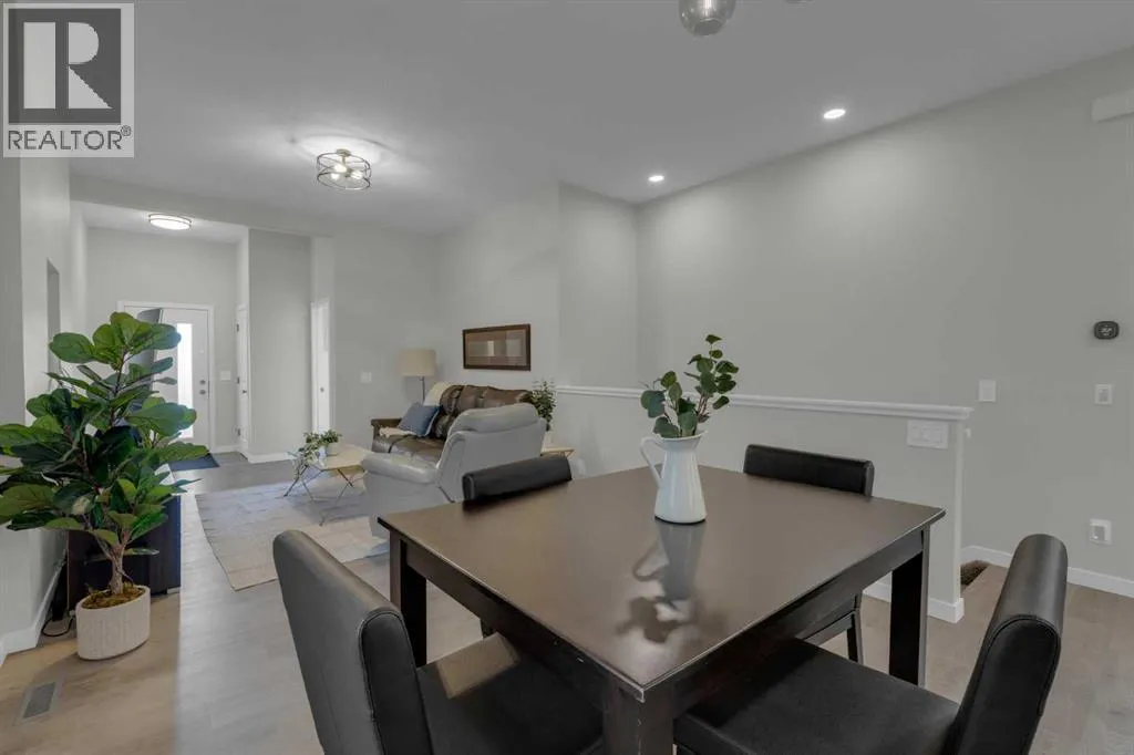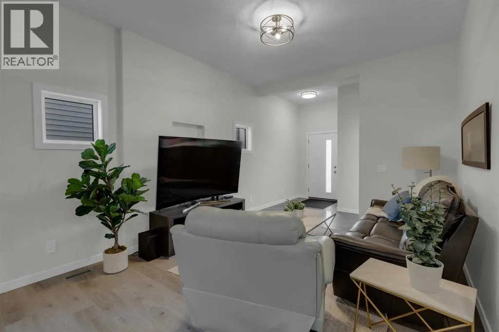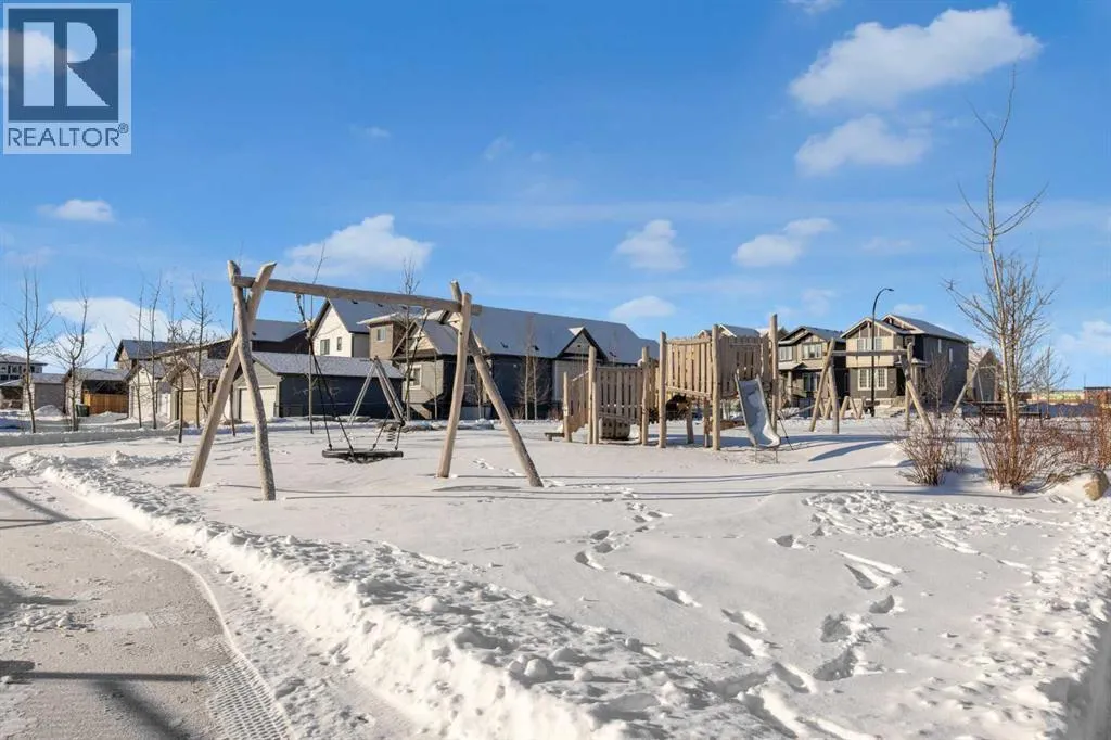 **OPEN HOUSE Saturday February 28th 2-4pm** Modern BUNGALOW living with soaring 10â ceilings, a heated DOUBLE DETACHED 19'x21' GARAGE, and an unbeatable location across from a children's park in Coopers Crossing! Built in 2022 and offering 1,119 sq ft of thoughtfully designed space, this 2 Bedroom, 2 Full Bathroom home delivers stylish single level living with an open concept layout and clean contemporary finishes throughout. Step inside and immediately appreciate the airy feel created by the tall ceilings and expansive main living area finished in durable VINYL PLANK flooring. The bright white Kitchen is both timeless and functional, featuring quartz countertops, crisp white cabinetry, stainless steel appliances, and a long peninsula that offers generous prep space and a comfortable eating area, perfect for casual meals or entertaining guests. The Kitchen flows seamlessly into the Dining and Living areas, creating an inviting space ideal for everyday living. The spacious Primary Suite is designed as a comfortable retreat, complete with a large WALK IN CLOSET and a beautifully finished tiled Ensuite featuring a glass shower for a clean, modern look. A second Bedroom and full Bathroom provide flexibility for guests, a home office, or small family living. The unfinished Basement offers excellent future potential, ready for your vision with room to expand your living space exactly how you need it with 3 large windows and rough in plumbing for a bathroom. Outside, youâll appreciate the fenced yard, heated and insulated DOUBLE DETACHED GARAGE, offering year round comfort and valuable storage. Conveniently close to 40th Avenue for quick access into Calgary, this home combines convenience, modern design, and low maintenance living in one of Airdrieâs most desirable communities. Welcome home! (id:27476)