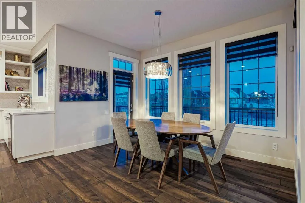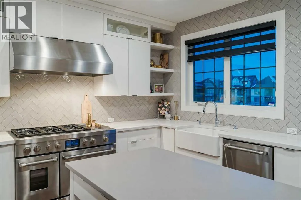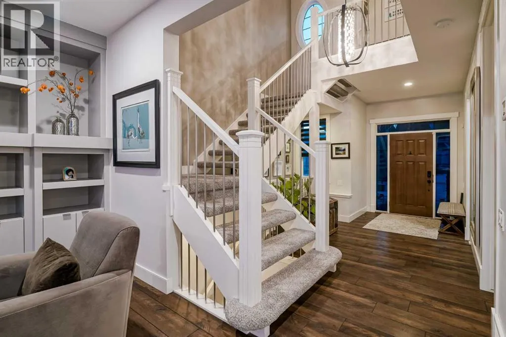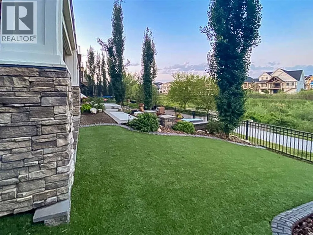 **OPEN HOUSE SAT APR 4th 2PM - 4PM** Welcome to this exceptional McKee-built custom home in the prestigious community of Coopers Crossing, where refined craftsmanship meets unobstructed pond-side living. Offering over 3,700 sqft of professionally developed living space, this fully finished 4-bedroom, 3.5-bathroom walk-out home delivers an elevated lifestyle defined by architectural detail and premium upgrades. From the moment you arrive, the curb appeal is undeniable - an exposed aggregate driveway, covered front porch with cedar soffit detailing, and a fully landscaped lot create a strong first impression. The 708 sqft triple tandem heated garage is both functional and impressive, complete with overhead storage and room for vehicles, toys, or workshop space. Inside, a dramatic open-rise staircase anchors the main level, while engineered hardwood flooring flows throughout. The great room is designed for both everyday living and upscale entertaining, featuring a custom fireplace surround with built-ins and expansive windows framing tranquil pond views. The chef-inspired kitchen is a true showpiece. Thoughtfully upgraded with crisp white cabinetry, double islands, and premium stainless steel appliances, it includes a 48â Jenn-Air dual-fuel gas range, Vent-A-Hood range hood, and Electrolux side-by-side refrigerator/freezer. An exquisite under mount sink and refined finishes complete this elevated culinary space. From this level, step outside to your private backyard oasis: a full-width 33â4â x 9â8â composite deck with stairs leading to professionally designed stone scaping, low-maintenance turf, and a dedicated firepit and patio area (15â4â x 10â4â). Upstairs, vaulted ceilings and two skylights flood the bonus room, primary suite, ensuite, and laundry room with natural light. The primary retreat offers serene water views and a spa-inspired ensuite designed for relaxation. Three additional bedrooms complete the upper level, including one with a charming Juliet balcony. The fully developed walk-out basement extends the living space seamlessly outdoors and features a wet bar, spacious recreation area, hobby room, and additional storage. Morning coffees overlooking the water in summer. Skating on the pond in winter. This is a home designed to be experienced in every season. Additional highlights include upper-level exterior pot lights, custom built-ins throughout, security camera system and panel, pre-wired in-ceiling speakers with two Sonos bridges, dual furnaces plus A/C. Rarely do homes combine this level of finish, functionality, and uninterrupted pond views in one of Airdrieâs most sought-after communities. This is luxury living - without compromise. (id:27476)