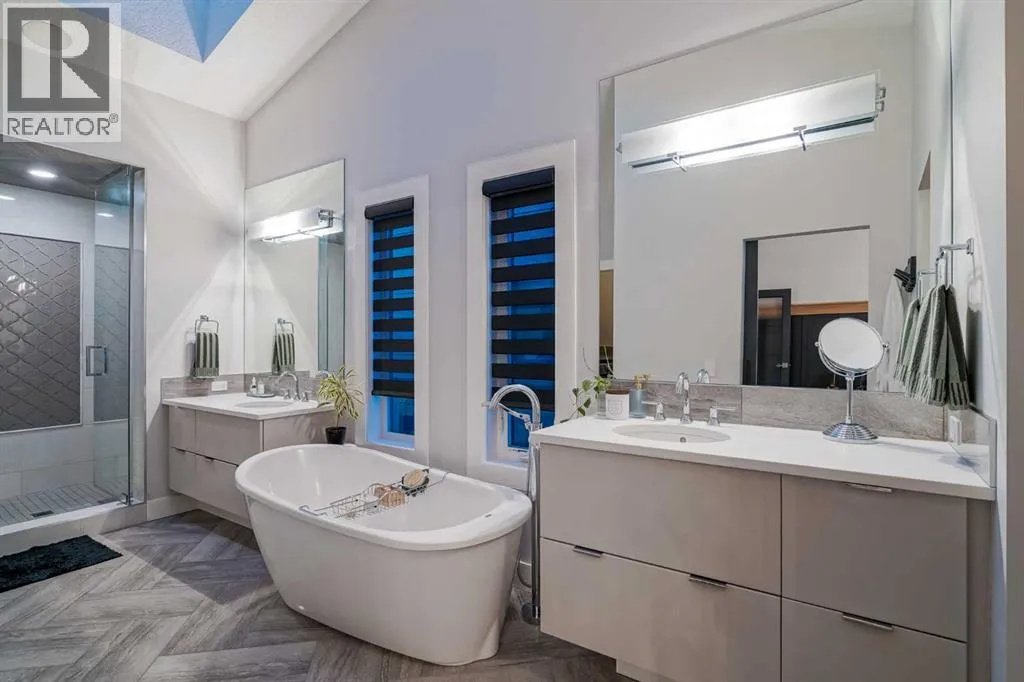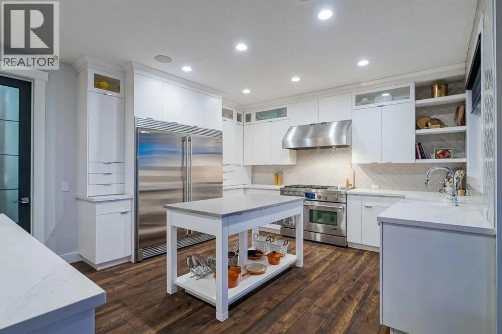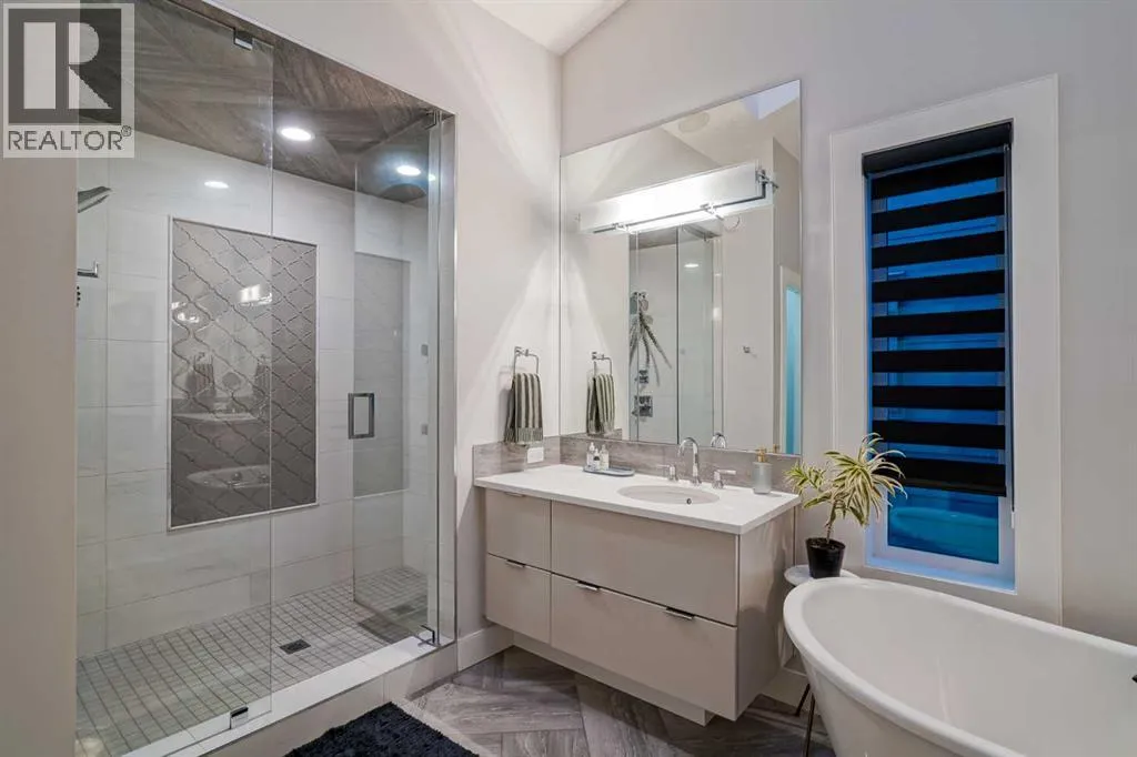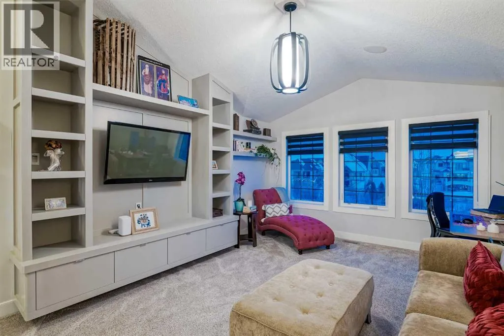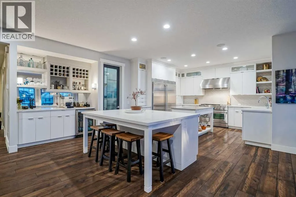 **OPEN HOUSE SAT APR 4th 2PM - 4PM** Welcome to this exceptional McKee-built custom home in the prestigious community of Coopers Crossing, where refined craftsmanship meets unobstructed pond-side living. Offering over 3,700 sqft of professionally developed living space, this fully finished 4-bedroom, 3.5-bathroom walk-out home delivers an elevated lifestyle defined by architectural detail and premium upgrades. From the moment you arrive, the curb appeal is undeniable - an exposed aggregate driveway, covered front porch with cedar soffit detailing, and a fully landscaped lot create a strong first impression. The 708 sqft triple tandem heated garage is both functional and impressive, complete with overhead storage and room for vehicles, toys, or workshop space. Inside, a dramatic open-rise staircase anchors the main level, while engineered hardwood flooring flows throughout. The great room is designed for both everyday living and upscale entertaining, featuring a custom fireplace surround with built-ins and expansive windows framing tranquil pond views. The chef-inspired kitchen is a true showpiece. Thoughtfully upgraded with crisp white cabinetry, double islands, and premium stainless steel appliances, it includes a 48â Jenn-Air dual-fuel gas range, Vent-A-Hood range hood, and Electrolux side-by-side refrigerator/freezer. An exquisite under mount sink and refined finishes complete this elevated culinary space. From this level, step outside to your private backyard oasis: a full-width 33â4â x 9â8â composite deck with stairs leading to professionally designed stone scaping, low-maintenance turf, and a dedicated firepit and patio area (15â4â x 10â4â). Upstairs, vaulted ceilings and two skylights flood the bonus room, primary suite, ensuite, and laundry room with natural light. The primary retreat offers serene water views and a spa-inspired ensuite designed for relaxation. Three additional bedrooms complete the upper level, including one with a charming Juliet balcony. The fully developed walk-out basement extends the living space seamlessly outdoors and features a wet bar, spacious recreation area, hobby room, and additional storage. Morning coffees overlooking the water in summer. Skating on the pond in winter. This is a home designed to be experienced in every season. Additional highlights include upper-level exterior pot lights, custom built-ins throughout, security camera system and panel, pre-wired in-ceiling speakers with two Sonos bridges, dual furnaces plus A/C. Rarely do homes combine this level of finish, functionality, and uninterrupted pond views in one of Airdrieâs most sought-after communities. This is luxury living - without compromise. (id:27476)