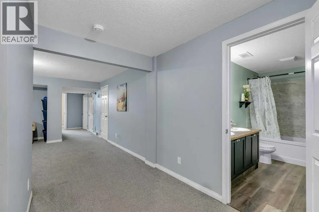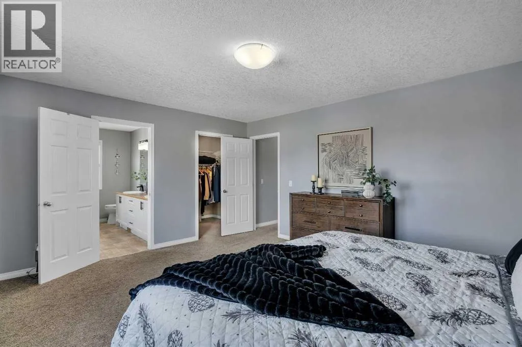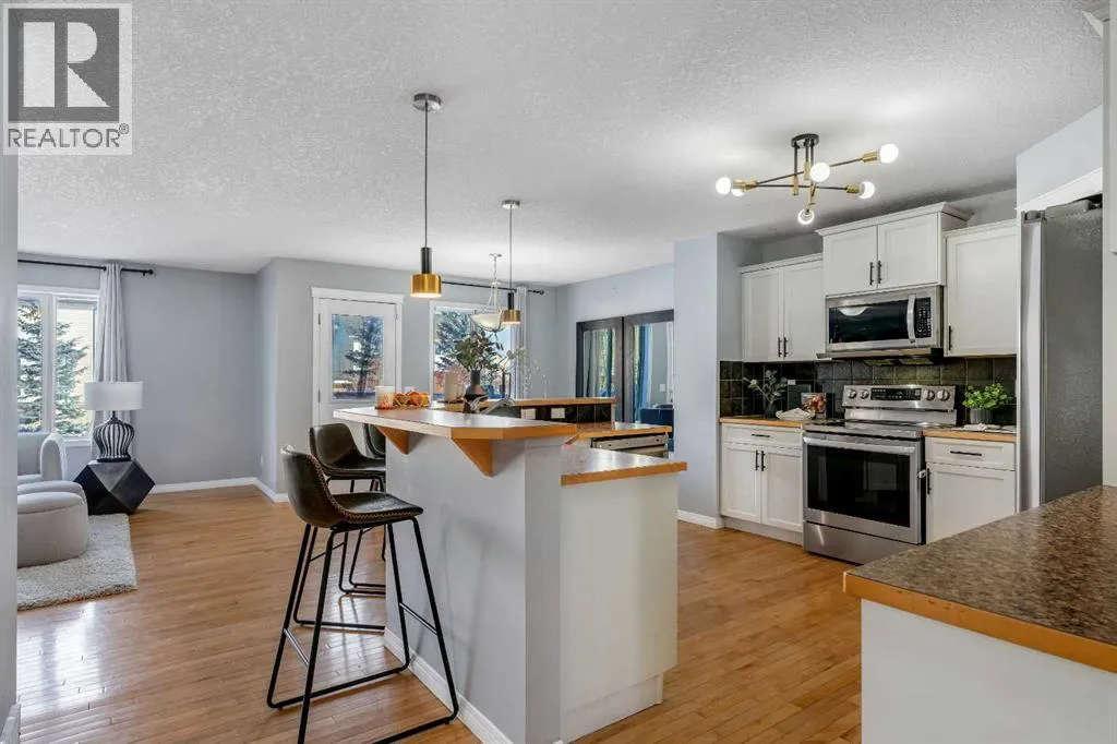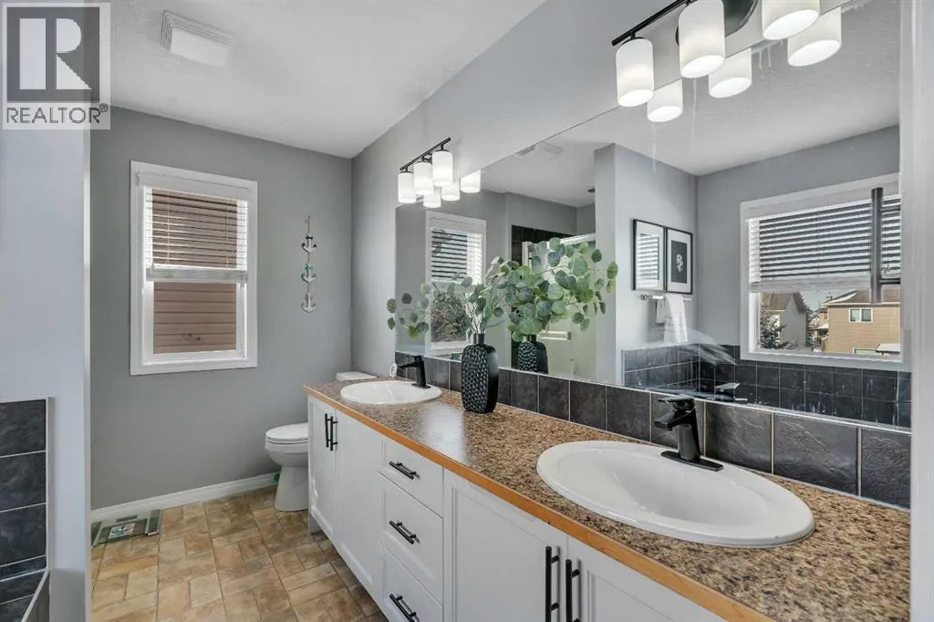 Freshly painted and fully finished, this 5 bedroom home offers over 3,300 sq ft of finished living space designed for large and growing families. Quiet cul-de-sac placement and an extra deep backyard add privacy and room to play, while recent upgrades including a brand new furnace, new hot water tank and central air conditioning ensure year-round comfort and peace of mind. A soaring open-to-above foyer creates a memorable first impression, anchored by hardwood flooring and a bright open layout. Culinary adventures are inspired in the kitchen with stainless steel appliances, abundant cabinetry, a corner pantry for extra storage and a huge island with raised breakfast bar seating, ideal for casual gatherings. The adjacent dining area opens directly to the rear deck for easy indoor/outdoor living. A welcoming living room invites relaxation in front of the gas fireplace flanked by built-ins, while French doors lead to a private den that makes an excellent office or study zone. A tucked-away powder room completes the main level. Cascading lighting guides you upstairs to a vaulted bonus room, an airy retreat perfect for movie nights or quiet family time. The primary suite delivers a true ownerâs refuge with a walk-in closet and a 5-piece ensuite featuring dual sinks, a deep soaker tub and a separate shower. 2 additional bright bedrooms, one with a walk-in closet, share a well-appointed 4-piece bathroom. The finished basement expands your possibilities with a massive rec room for games and media and a flex space for hobbies or play. Also on this level are 2 more bedrooms and a stylish 5-piece bathroom with dual sinks, ideal for shared use. Outside, the extra deep backyard offers endless room for children, pets and gardening alongside a spacious deck for barbecuing and unwinding. A double attached garage adds convenience and storage. Walk to St Veronica School and the nearby pathways and playgrounds, with Coopers Crossing Town Promenade only 3 minutes away for groceries, di ning, coffee and daily essentials. A rare blend of space, comfort, mechanical upgrades and an ideal family-friendly location! (id:27476)
