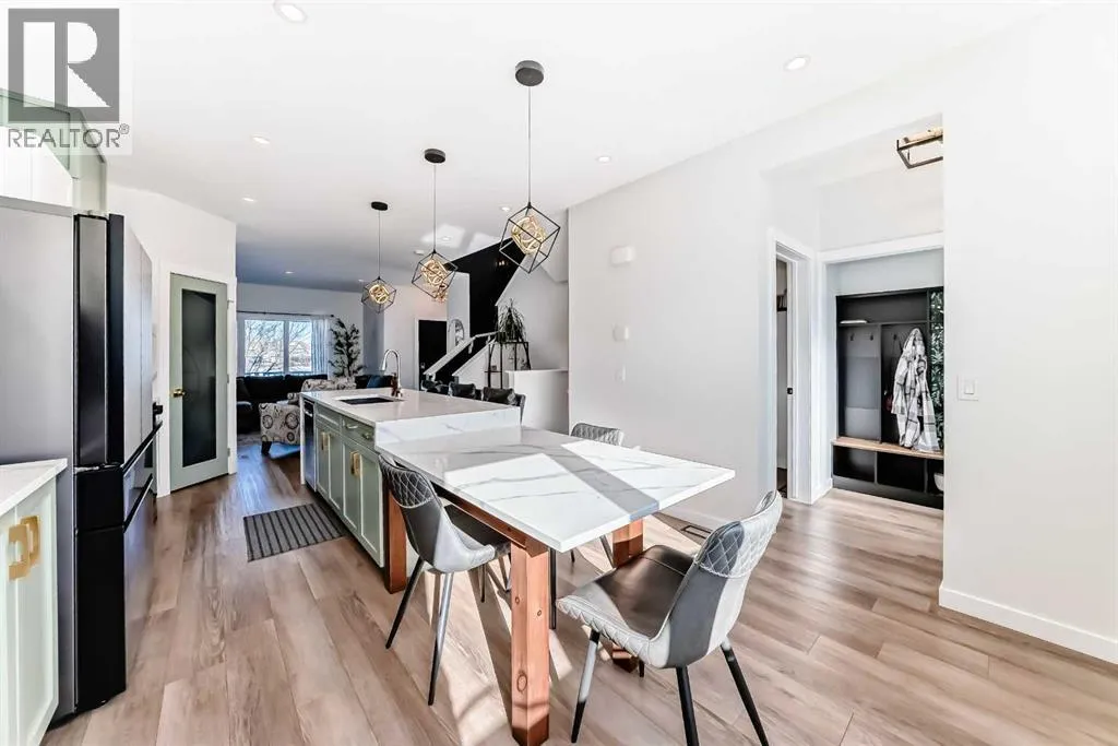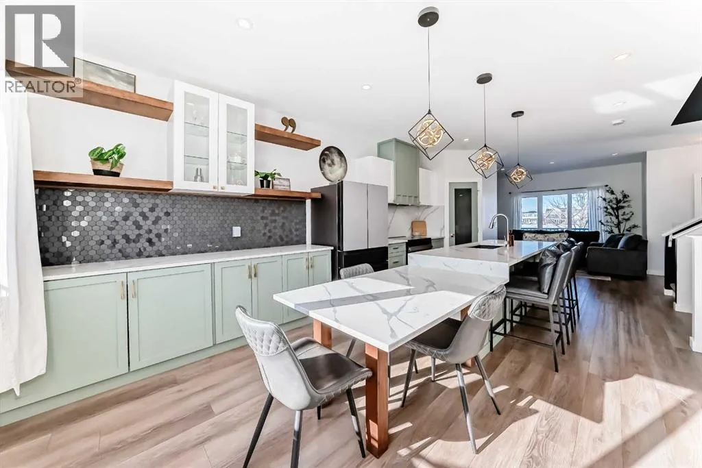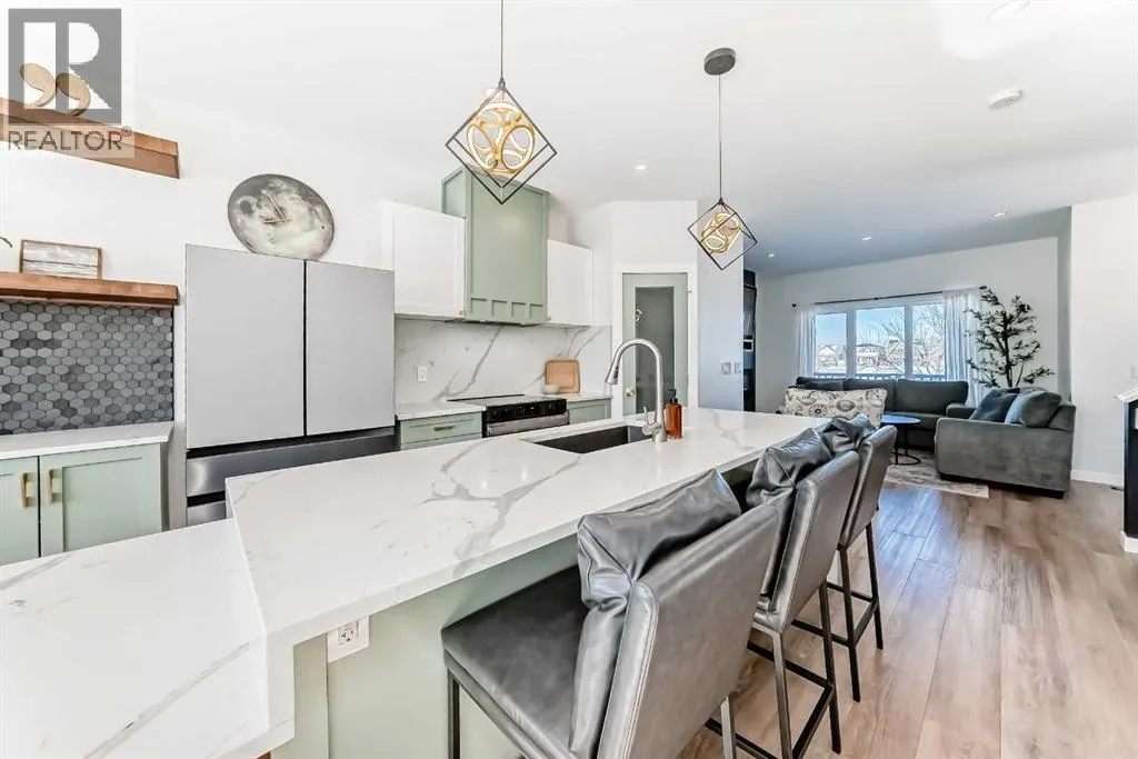 Welcome to this beautifully updated, move-in ready home with over 1800 sqft of finished living space located in the heart of Reunion. Perfectly positioned on a corner lot, directly across from open green space, and within walking distance to Heronâs Crossing school. Bright, welcoming and thoughtfully upgraded throughout, this home offers the ideal blend of comfort, style and functionality in a quiet, family-friendly neighbourhood.Step inside and youâll immediately notice how bright and inviting the main floor feels, with new windows and doors allowing natural light to pour in. The living area is anchored by a custom feature wall with a contemporary electric fireplace, creating a warm and modern focal point. The fully updated custom kitchen is truly the heart of the home, complete with new appliances, updated lighting, luxury vinyl flooring and an oversized waterfall quartz island with matching table. Perfectly designed for everyday living and effortless entertaining.Upstairs, youâll find three bedrooms including a spacious primary retreat with its own full ensuite, offering a comfortable and private space to unwind. New carpet on the stairs adds a fresh finishing touchThe lower level is fully developed, providing valuable additional living space ideal for a rec room, home office, gym or family area, a flexible space that adapts to your needs.Outside enjoy the low maintenance front yard enhancing curb appeal while keeping upkeep simple. Out back, youâll find a fully fenced yard with grass space ideal for children and pets, along with an updated patio and gazebo designed for relaxing and hosting. The corner lot provides ample parking, in addition to the double detached garage and parking pad, offering flexibility for vehicles, toys or guests.Located just steps to schools, shopping, churches, parks and walking paths, this home offers both convenience and community. Bright, stylish and thoughtfully upgraded. This is one you will not want to miss! Contact your favor ite Realtor to schedule a showing today. (id:27476)