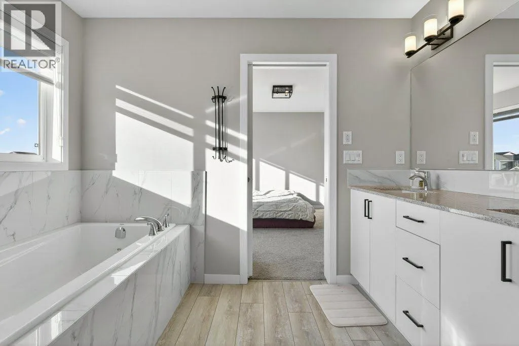 OPEN HOUSE SUNDAY MAR. 15TH 12PM-2PM, Welcome to 665 Creekmill Court SW, a beautifully upgraded 5-bedroom, 4.5-bath home backing directly onto green space in sought-after Cobblestone Creek. Built in 2024, this modern 2-storey is designed for large or growing families who want both space and style. The main floor features an open concept layout with a bright living room, spacious dining area, and a stylish kitchen with large island, quartz counters, pantry, and eating nookâperfect for everyday living and entertaining. A convenient mud room and 2-piece bath complete this level. Upstairs, youâll find four generous bedrooms, including a relaxing primary retreat with 5-piece ensuite and walk-in closet, along with a large family room, upper laundry, and two additional full bathrooms. The finished basement adds even more living space with a huge games room, 5th bedroom, full 4-piece bathroom, storage, and utility roomâideal for teens, guests, or extended family. Enjoy summers on the deck in your private backyard with no neighbours behind, backing onto green space. Located close to parks, playgrounds, and schools, this move-in ready property delivers the space, finish, and setting youâve been waiting for in Airdrie. (id:27476)