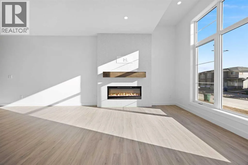 Welcome to 2226 Bayview Drive, the "Eli" - the largest floor plan option available by Genesis Builders Group. This beautifully finished NO CONDO FEE street-side townhome offers almost 1600 sq ft. of well-designed living space with 3 bedrooms, 2.5 bathrooms and a flex space on the 2nd floor, plus an unfinished basement with 9-foot ceilings, ready for your ideas. Large windows and soaring ceilings on the main floor let natural light fill the open-concept living space. The chef-inspired kitchen features sleek cabinetry and stone countertops and is well-equipped with stainless-steel appliances. The kitchen is tucked away yet still feels open and inviting, providing ample room for activities in the open-concept dining and living room. A floor-to-ceiling tiled fireplace is the living room's focal point. Complementing the main floor is a convenient half bath, storage, and access to the attached double garage, which is large enough for a truck. Venturing upstairs, you will find a spacious primary retreat with a spa-like ensuite featuring a shower, his-and-hers sinks, and a walk-in closet. Two additional bedrooms, a full bathroom, a flex room, a 4-piece bathroom, and laundry facilities complete the upper level. Enjoy spending time on your upper rooftop patio, situated above the garage, which is an excellent space for entertaining. Bayview is a beautiful community with parks, benches and pathways that meander throughout the community and along the canals. Kids and adults alike will enjoy the outdoor basketball nets, gym, amphitheatre, and tennis courts, which will convert into a skating rink in the winter. Come and see for yourself all the amenities the community has to offer! *RMS has been applied to the construction drawings provided by the builder. Taxes to be assessed* (id:27476)