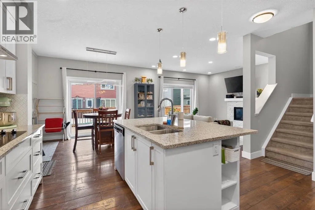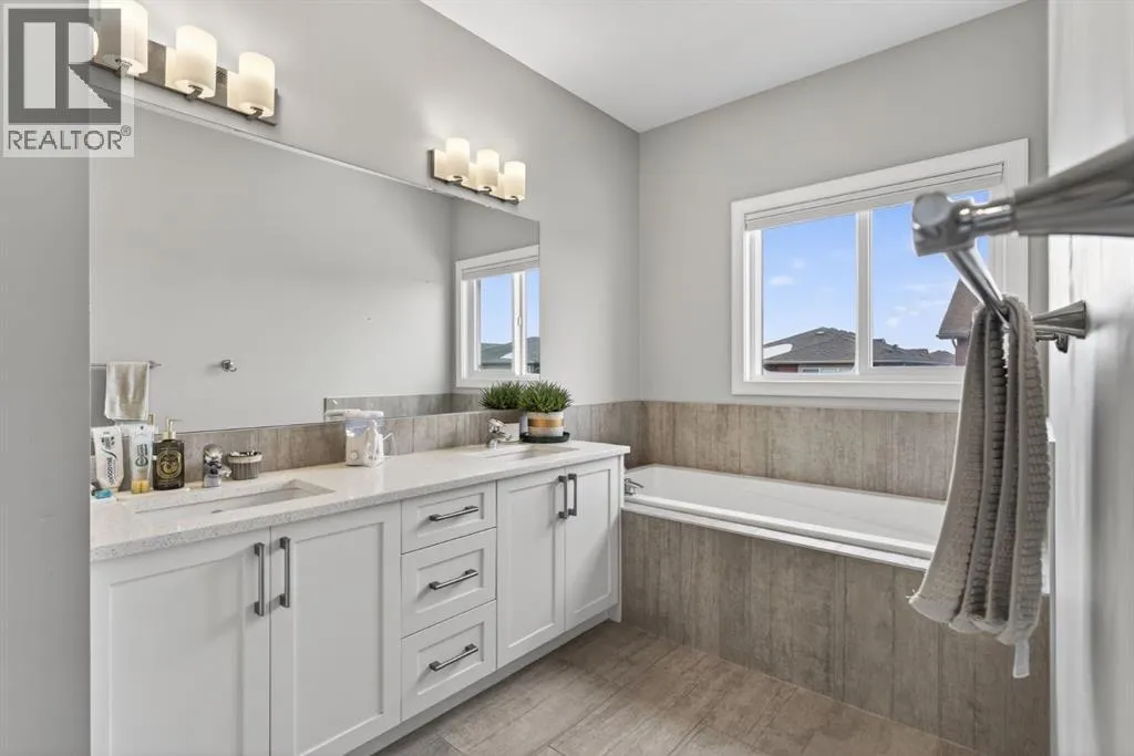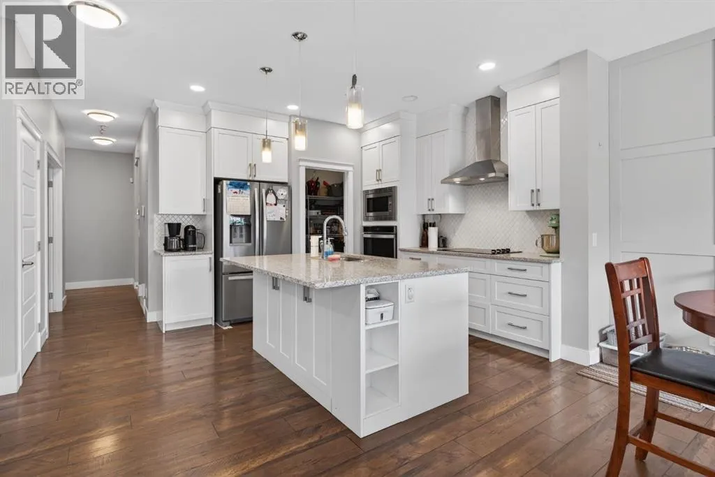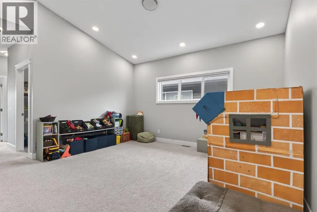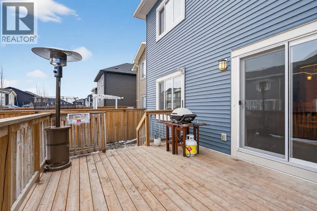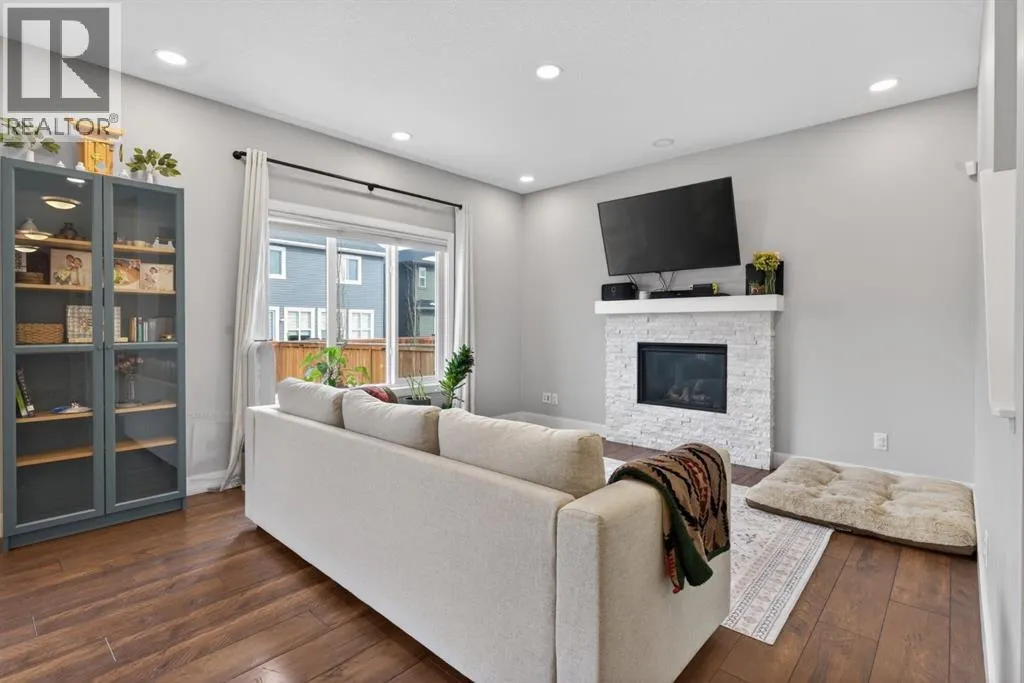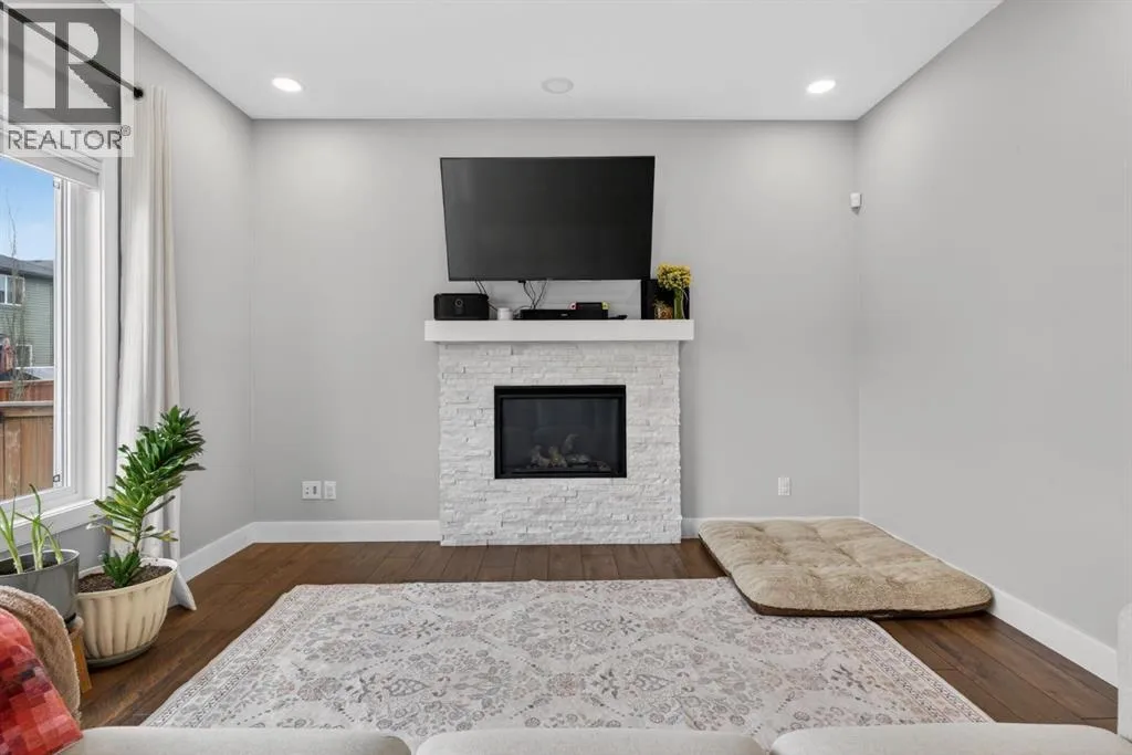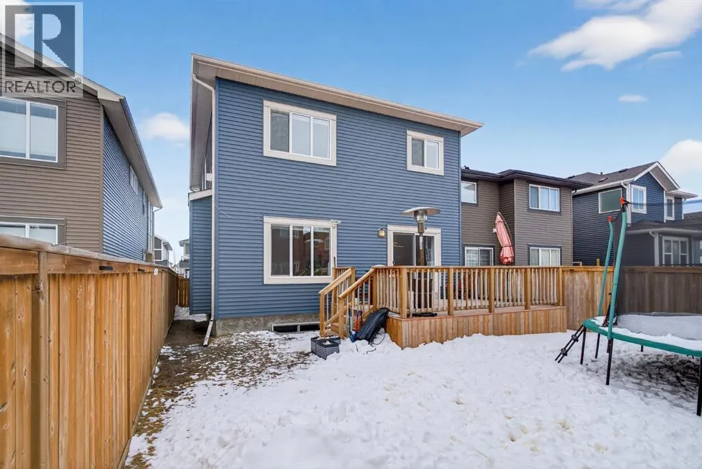 Welcome to this beautifully upgraded home offering 2,331 sq. ft. of refined living space, complete with a double-car garage, four upper-level bedrooms, a versatile main-floor office, and a fully landscaped, fenced yard. Situated on a quiet no-through street, the property showcases a distinctive exterior and high-end interior finishes throughout, including air conditioning.The home features white shaker-style kitchen cabinetry, quartz countertops, and a large central island. Premium built-in stainless steel appliances and a walk-in pantry complete this gourmet kitchen. The open-concept family room is ideal for entertaining family and friends, while the dining area opens onto a raised deck overlooking a beautifully finished yard with a striking fence.The bright living room offers an oversized window and a cozy, child-safe ledgestone fireplace with cool-to-the-touch glass. Durable hand-scraped laminate flooring runs throughout the main floor â perfect for busy households. A standout feature is the enclosed main-floor office with etched-glass French doors, providing a private workspace. A tiled mudroom off the garage adds practical storage, including a full closet for organized family living.Upstairs, four spacious bedrooms with 9-foot ceilings are complemented by a central bonus room with vaulted ceilings â an ideal secondary living space. The 5-piece main bathroom includes dual sinks and a tub/shower combination.The secluded primary bedroom features a designer feature wall, walk-in closet, and a spa-inspired ensuite with a 6-foot soaker tub, separate shower, and dual quartz vanities.The open basement offers excellent potential, providing ample room for storage, a home gym, or a play area for the kids. (id:27476)