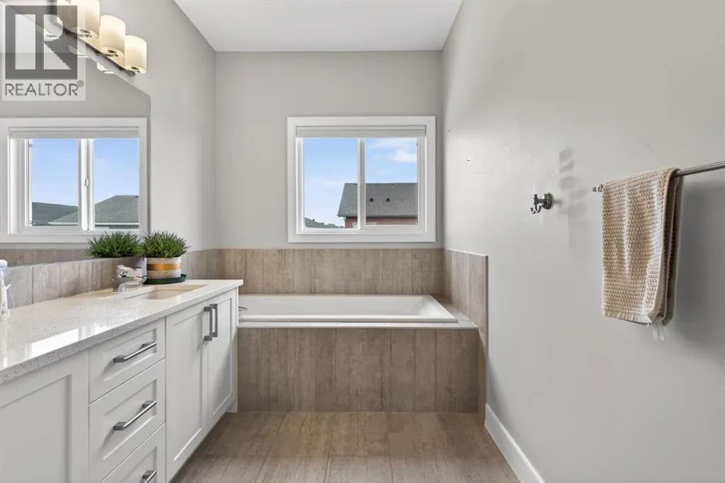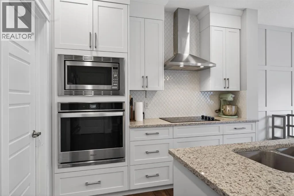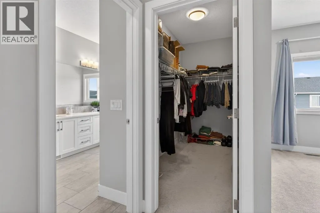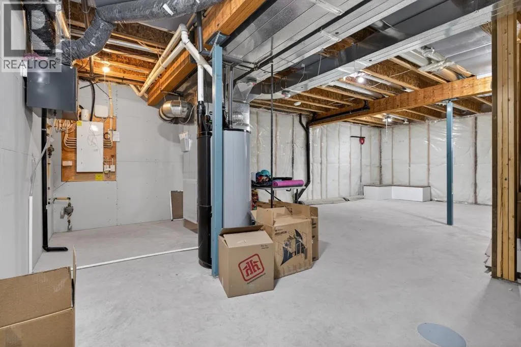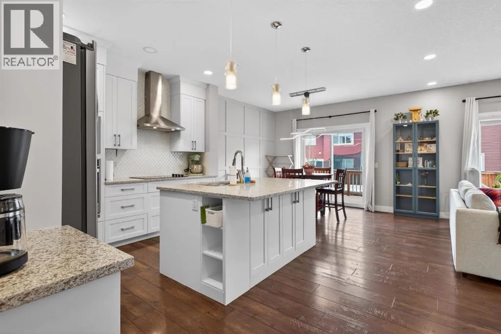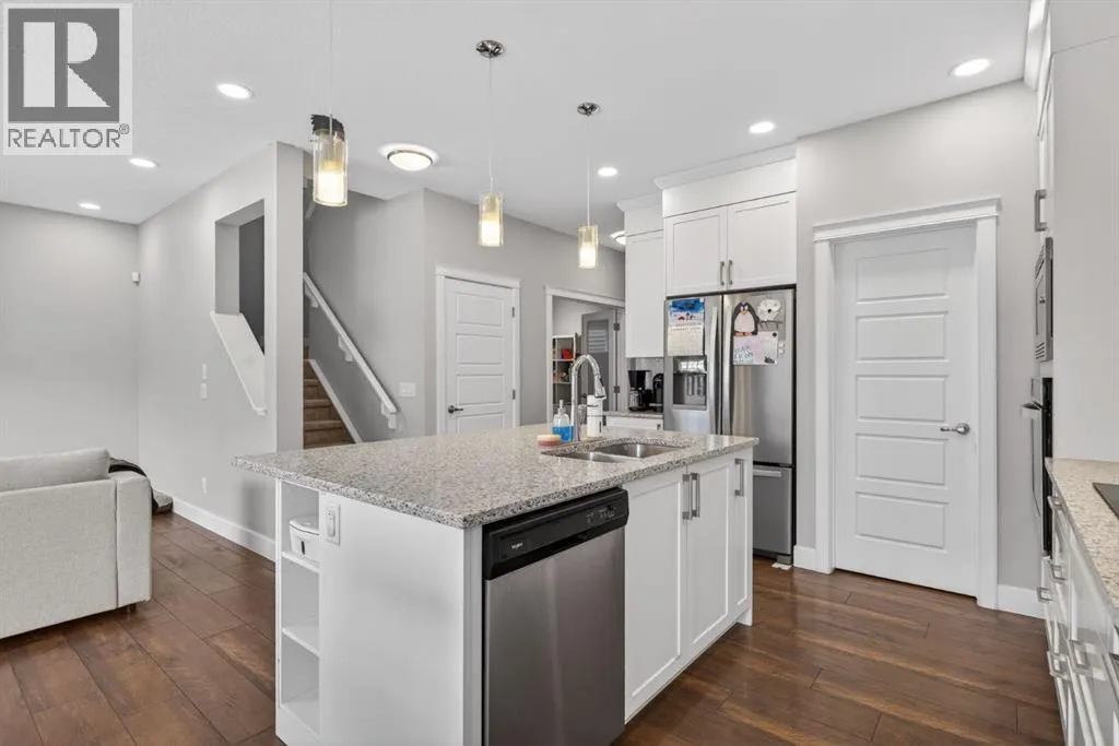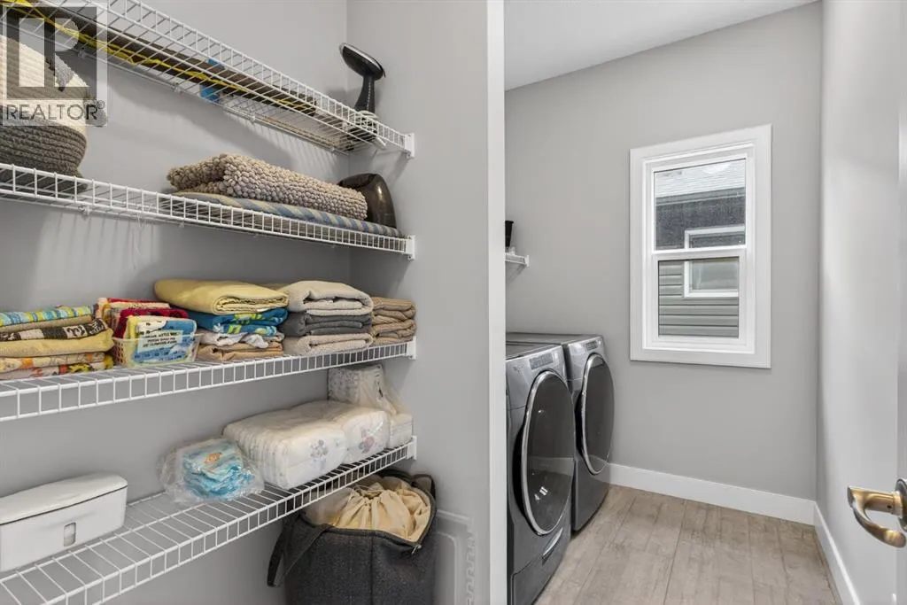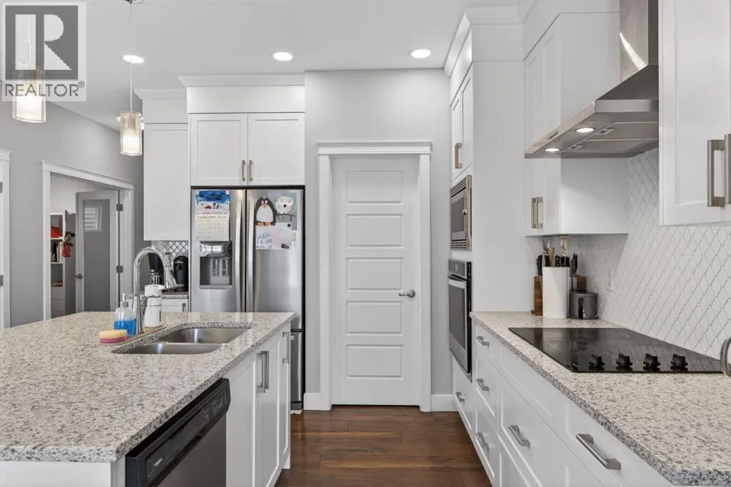 Welcome to this beautifully upgraded home offering 2,331 sq. ft. of refined living space, complete with a double-car garage, four upper-level bedrooms, a versatile main-floor office, and a fully landscaped, fenced yard. Situated on a quiet no-through street, the property showcases a distinctive exterior and high-end interior finishes throughout, including air conditioning.The home features white shaker-style kitchen cabinetry, quartz countertops, and a large central island. Premium built-in stainless steel appliances and a walk-in pantry complete this gourmet kitchen. The open-concept family room is ideal for entertaining family and friends, while the dining area opens onto a raised deck overlooking a beautifully finished yard with a striking fence.The bright living room offers an oversized window and a cozy, child-safe ledgestone fireplace with cool-to-the-touch glass. Durable hand-scraped laminate flooring runs throughout the main floor â perfect for busy households. A standout feature is the enclosed main-floor office with etched-glass French doors, providing a private workspace. A tiled mudroom off the garage adds practical storage, including a full closet for organized family living.Upstairs, four spacious bedrooms with 9-foot ceilings are complemented by a central bonus room with vaulted ceilings â an ideal secondary living space. The 5-piece main bathroom includes dual sinks and a tub/shower combination.The secluded primary bedroom features a designer feature wall, walk-in closet, and a spa-inspired ensuite with a 6-foot soaker tub, separate shower, and dual quartz vanities.The open basement offers excellent potential, providing ample room for storage, a home gym, or a play area for the kids. (id:27476)