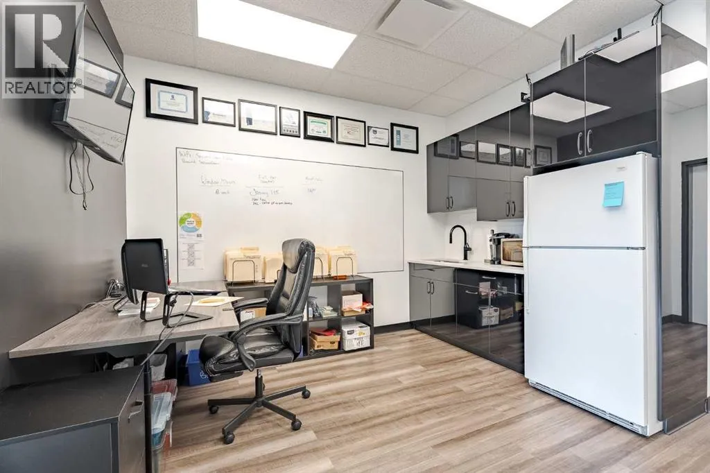 Located in the highly desirable Kingsview Industrial Park in Airdrie, this 1677 sq ft commercial unit provides an ideal solution for businesses seeking flexible office and industrial space. With a well-balanced design featuring both office areas and warehouse/bay space, this property is perfect for companies that require a combination of professional workspaces and operational capacity. Within the 1677 sq ft you will find a front lobby space along with 3 offices, a kitchen and 1 bathroom. The industrial bay features High-clearance ceilings, Overhead door and concrete floors. Plenty of parking and great access off the 40th Ave overpass. (id:27476)