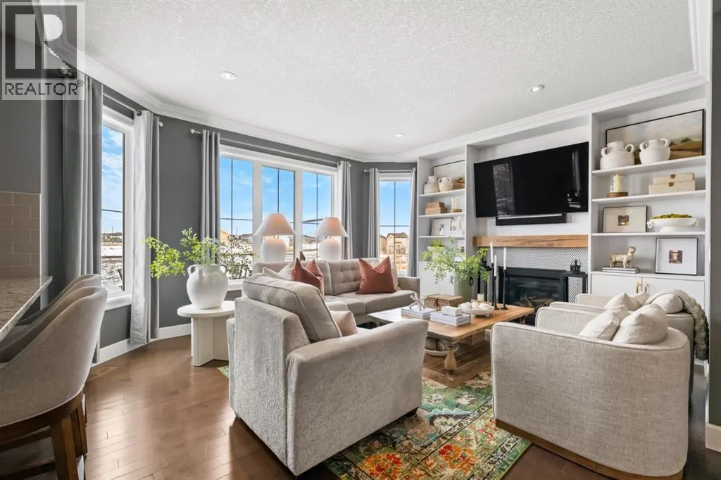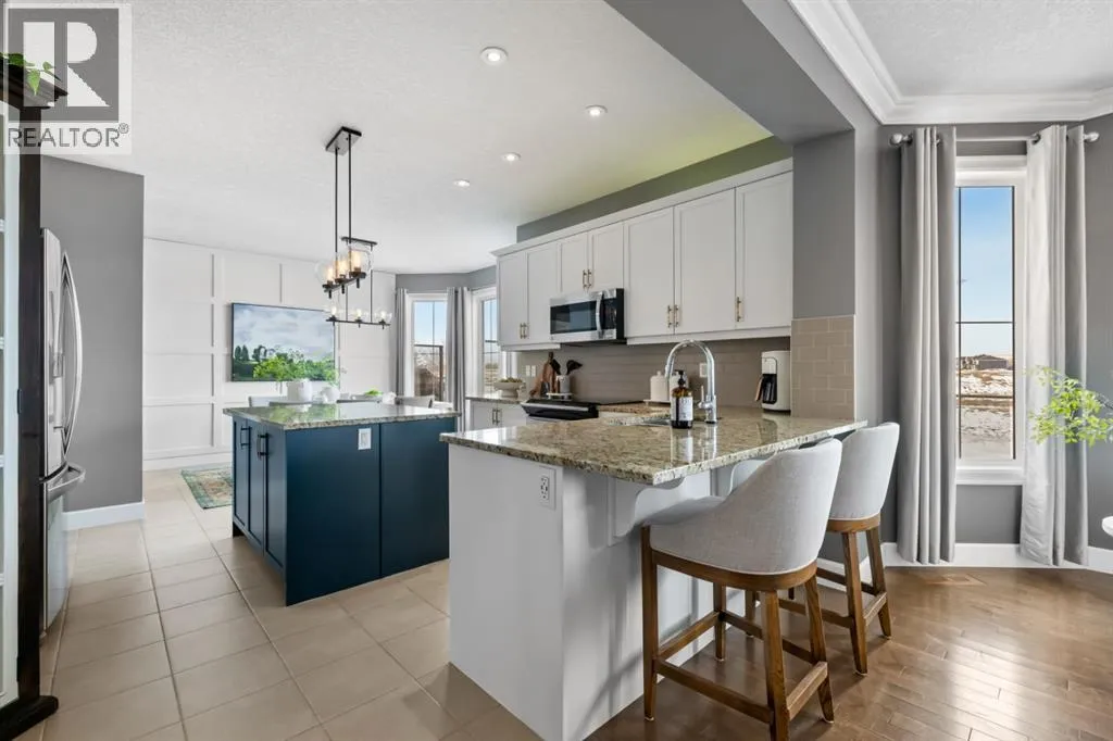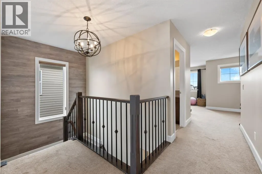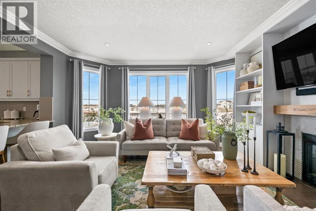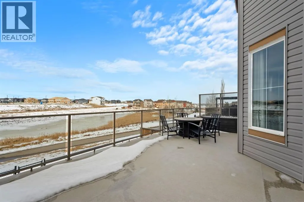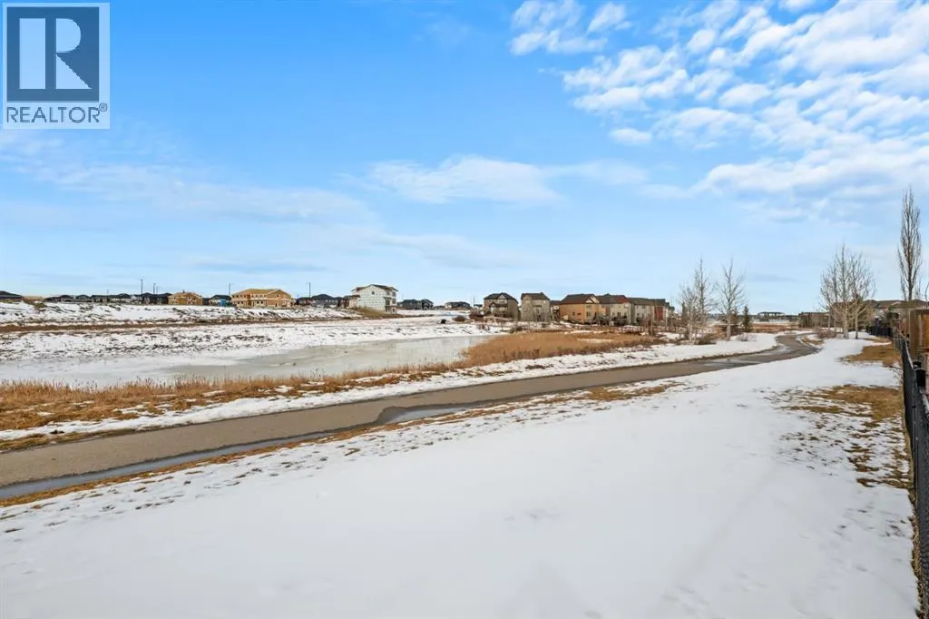 This exceptional executive two-storey walkout home offers over 3,000 sq. ft. of fully developed living space and backs onto a beautiful green space and a scenic pond which provides peaceful views and breathtaking sunsets. A spacious entryway welcomes you inside, where a bright flex room behind French doors creates the perfect home office or reading space. The main level features a sun-filled living room with west-facing windows, a cozy gas fireplace, and custom built-ins.The open-concept kitchen is designed for both everyday living and entertaining, showcasing a large granite island, ceiling-height cabinetry, stainless steel appliances, and recessed lighting. Step onto the oversized upper deck with a gas line for BBQ, perfect for enjoying the tranquil pond views. Upstairs youâll find a spacious bonus room, upper-level laundry with a linen closet, and three generous bedrooms. The primary suite offers a walk-in closet and a spa-inspired ensuite with double vanities, a soaker tub, and a steam shower. Two additional bedrooms and a full bathroom complete the upper floor. The fully developed walkout basement adds incredible living space with a large recreation area and wet bar, an additional bedroom, full bathroom, and a bright sunroom with hot tub. There is direct access to walking paths along the pond and green space.Additional highlights include solar panels, air conditioning, a heated garage, irrigation system, permanent Govee exterior lighting, and concrete side stairs for convenient access. Ideally located close to parks, walking paths, a skate park, and pickleball courts. This home offers the perfect blend of space, comfort, and lifestyle. (id:27476)