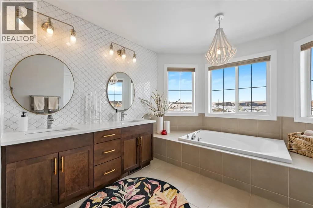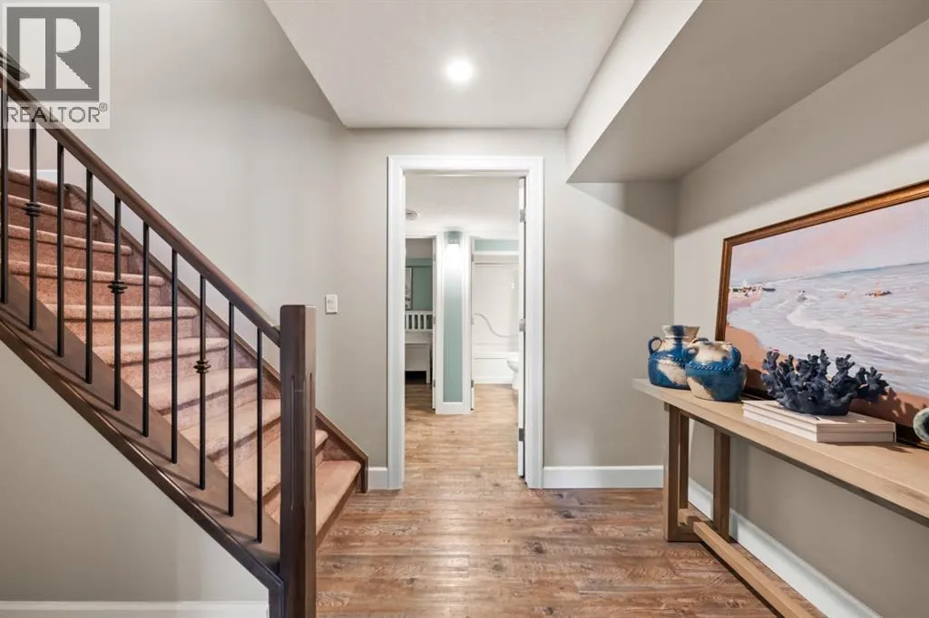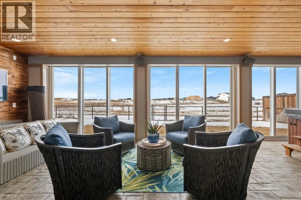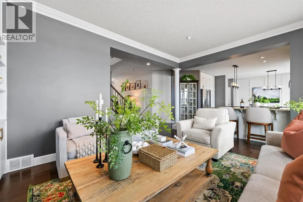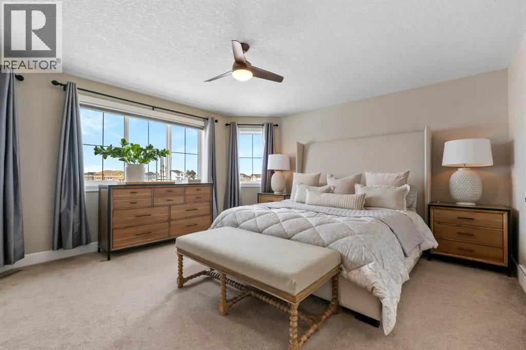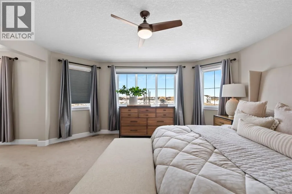 This exceptional executive two-storey walkout home offers over 3,000 sq. ft. of fully developed living space and backs onto a beautiful green space and a scenic pond which provides peaceful views and breathtaking sunsets. A spacious entryway welcomes you inside, where a bright flex room behind French doors creates the perfect home office or reading space. The main level features a sun-filled living room with west-facing windows, a cozy gas fireplace, and custom built-ins.The open-concept kitchen is designed for both everyday living and entertaining, showcasing a large granite island, ceiling-height cabinetry, stainless steel appliances, and recessed lighting. Step onto the oversized upper deck with a gas line for BBQ, perfect for enjoying the tranquil pond views. Upstairs youâll find a spacious bonus room, upper-level laundry with a linen closet, and three generous bedrooms. The primary suite offers a walk-in closet and a spa-inspired ensuite with double vanities, a soaker tub, and a steam shower. Two additional bedrooms and a full bathroom complete the upper floor. The fully developed walkout basement adds incredible living space with a large recreation area and wet bar, an additional bedroom, full bathroom, and a bright sunroom with hot tub. There is direct access to walking paths along the pond and green space.Additional highlights include solar panels, air conditioning, a heated garage, irrigation system, permanent Govee exterior lighting, and concrete side stairs for convenient access. Ideally located close to parks, walking paths, a skate park, and pickleball courts. This home offers the perfect blend of space, comfort, and lifestyle. (id:27476)