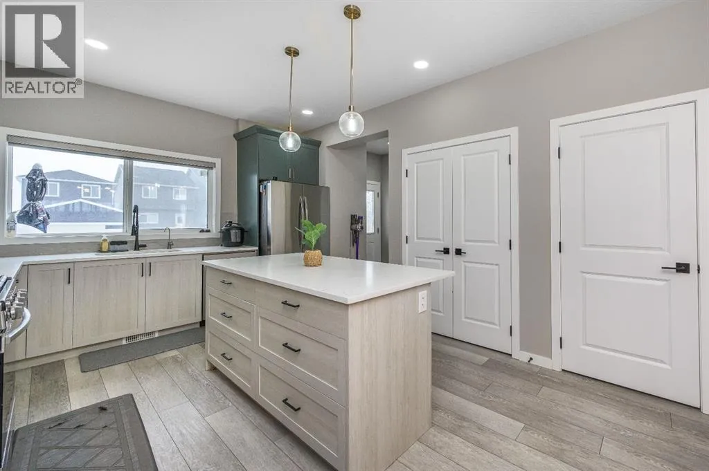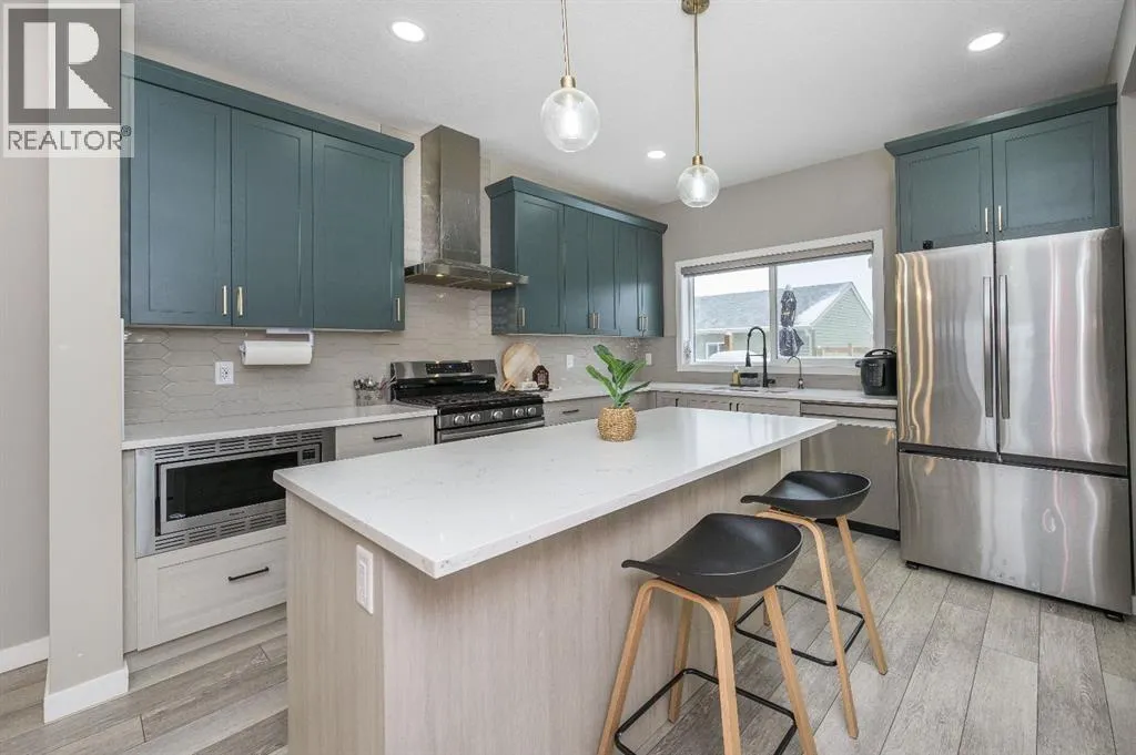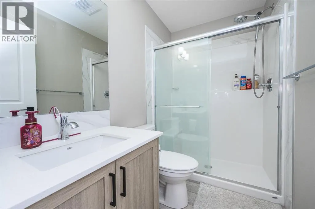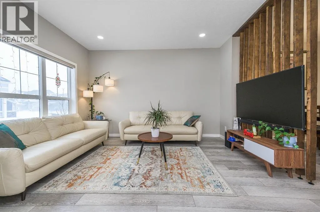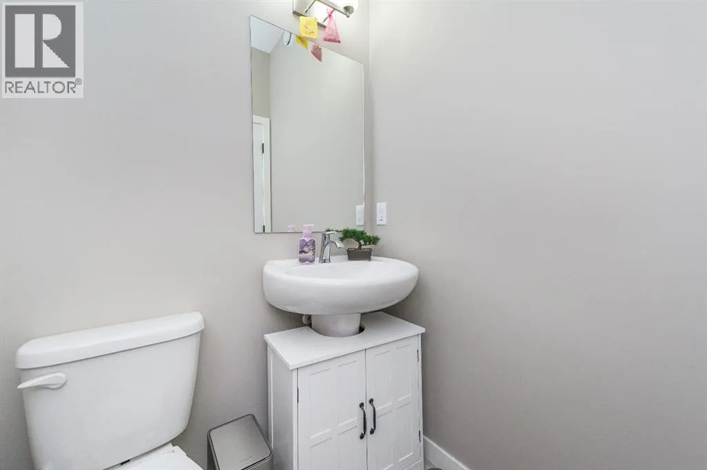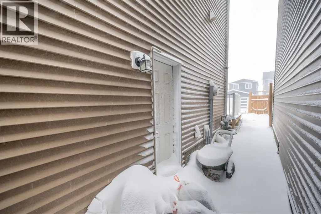 Welcome to this beautiful 3-bedroom, 2.5-bath laned home in the vibrant community of Cobblestone Creek. Only one year old, this modern home offers a functional layout, stylish upgrades, and excellent future potential. The main floor features a bright open-concept floor plan, perfect for both everyday living and entertaining. The fully upgraded kitchen boasts modern finishes, ample cabinetry, and quality appliances, flowing seamlessly into the spacious dining area and comfortable living room. A convenient half bathroom completes the main level.Upstairs, you'll find three well-sized bedrooms, including a primary suite with its own full ensuite bathroom. An additional full bathroom serves the other bedrooms, and the upper-floor laundry room adds everyday convenience. The unfinished basement comes with a separate side entrance, offering great potential for future development or customization. Outside, the backyard is fully set up and ready to enjoy, featuring a finished deck, fencing, and a two-car parking pad at the rear. Located in the growing community of Cobblestone Creek in Airdrie, this brand-new, young and vibrant neighborhood offers easy access to parks, schools, shopping, and everyday amenitiesâmaking it an ideal place to call home. (id:27476)