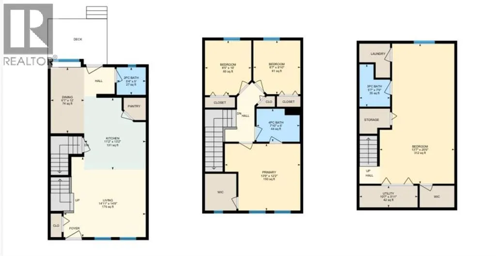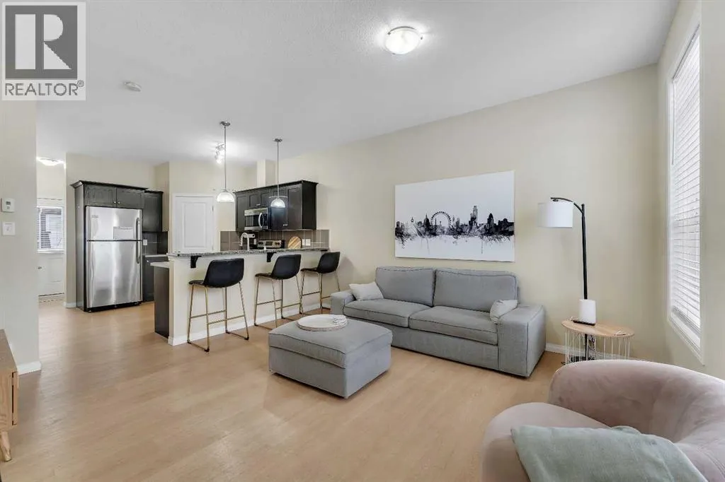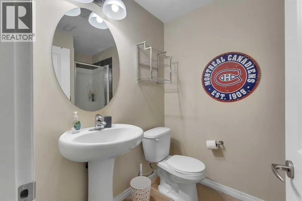 Exceptional value in this stylish and well-maintained townhome offering 1,749 sq ft of total finished living space, including a fully finished basement. The bright and open main floor features large windows that bring in plenty of natural light, creating a warm and inviting atmosphere. The spacious living room flows nicely through the main level, making it ideal for everyday living and entertaining.The kitchen offers plenty of counter space, stainless steel appliances, shaker-style cabinetry, and a walk-in pantry for extra storage. The adjoining dining area is perfect for family meals and gatherings, while a convenient 2-piece bathroom completes the main floor. Step outside to the back deck, perfect for summer barbecues and outdoor relaxation.Upstairs you will find a spacious primary bedroom with a large closet, along with two additional bedrooms and a 4-piece bathroom. The finished basement adds great extra space with a recreation room, 3-piece bathroom, and laundry area, making it ideal for kids, guests, or a media room.The complex offers one assigned parking stall plus additional common stalls available on a first-come, first-serve basis. A Club House is also available for gatherings and resident use.Located in the desirable community of Williamstown, you are just a 12-minute walk to Heronâs Cross Elementary School and steps from the 60-acre Williamstown environmental reserve with parks, ponds, playgrounds, pedestrian bridges, and scenic walking trails along Nose Creek. Well-managed and pet-friendly complex allowing up to two pets per unit, offering comfortable low-maintenance living. (id:27476)