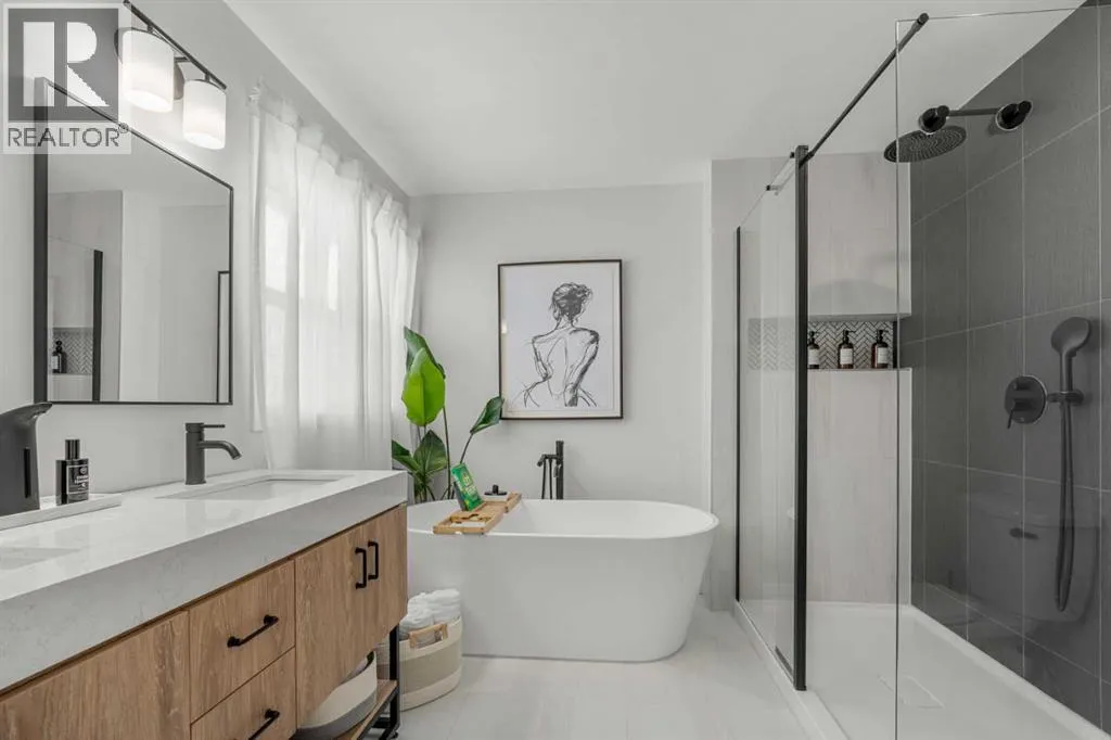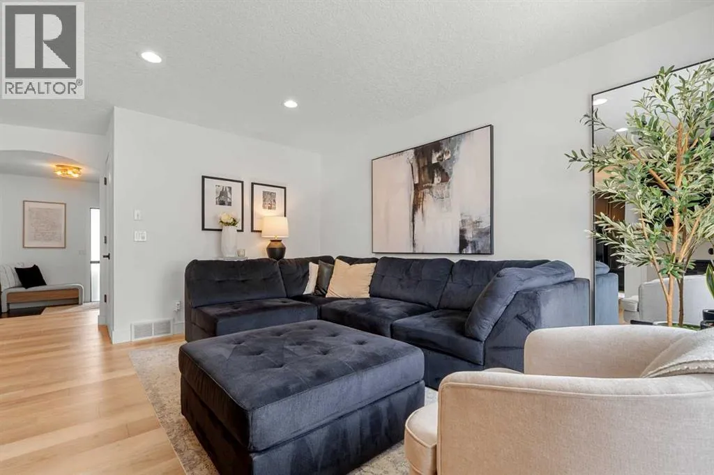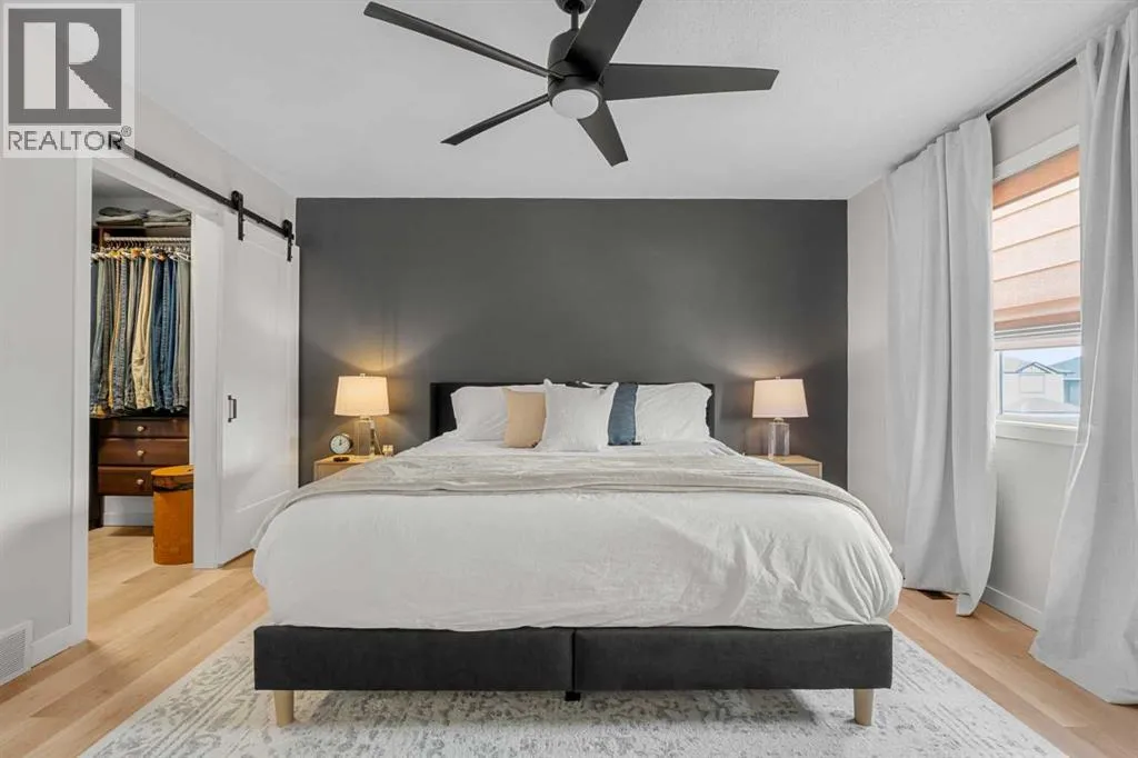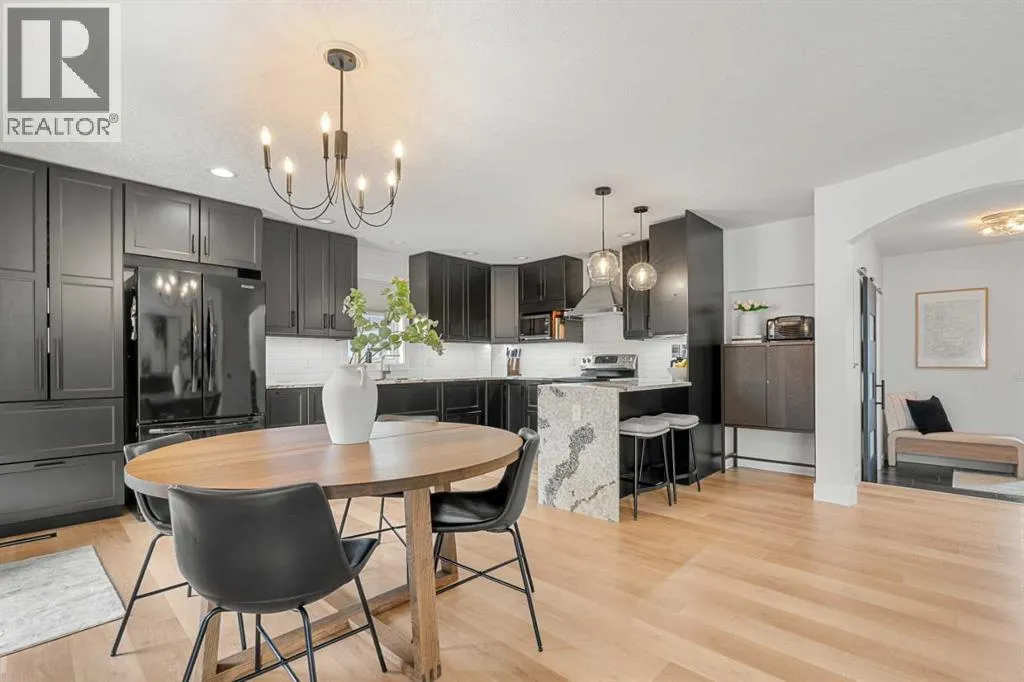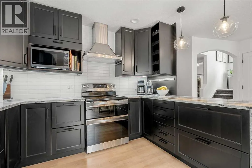 Welcome to this beautifully updated, top-to-bottom renovated home located in the desirable Fairways community of Airdrie, just minutes from Woodside Golf Course and conveniently close to Veterans Blvd NW, offering quick access to major routes, parks, and everyday amenities.This well-maintained property offers 3 spacious bedrooms upstairs, 2.5 bathrooms on the upper levels, plus a fully finished basement that includes an additional bedroom, a full bathroom, and a dedicated office space, making it perfect for growing families, remote work, or guests.Inside, the home showcases thoughtful upgrades throughout. The modern kitchen is designed for both functionality and style, featuring quality cabinetry, modern countertops, a stunning waterfall island, built-in dishwasher, stylish wine cabinet, and an electric range with double ovens, making it ideal for cooking, hosting, and everyday living.The primary ensuite has been beautifully renovated into a spa-like retreat, complete with a glass shower with built-in niche, upgraded plumbing fixtures, a relaxing standalone tub, and a stylish double vanity. The primary closet features a barn-style sliding door and built-in organizers, adding both character and practical storage.The fully finished basement adds valuable living space and includes a cozy electric fireplace, an additional bedroom, full bathroom, and a private office space, offering flexibility for work, guests, or extended family.Step outside to the true highlight of the home â the resort-style backyard, thoughtfully designed for relaxation and entertaining. The outdoor space features a pergola-covered seating area with privacy screen, a relaxing hot tub, cozy firepit area, raised garden beds, and a spacious deck perfect for gatherings. An L-shaped built-in bench seating area adds charm and functionality, creating the perfect place to host family and friends.Additional upgrades throughout the home include custom laundry storage, built-in closets, accent wall s, upgraded baseboards, modern lighting fixtures, and stylish ceiling fans, giving the entire home a polished, move-in-ready feel.Located in one of Airdrieâs most family-friendly neighbourhoods, and just minutes from golf, parks, green spaces, and major roadways, this home offers the perfect combination of comfort, lifestyle, and convenience. (id:27476)