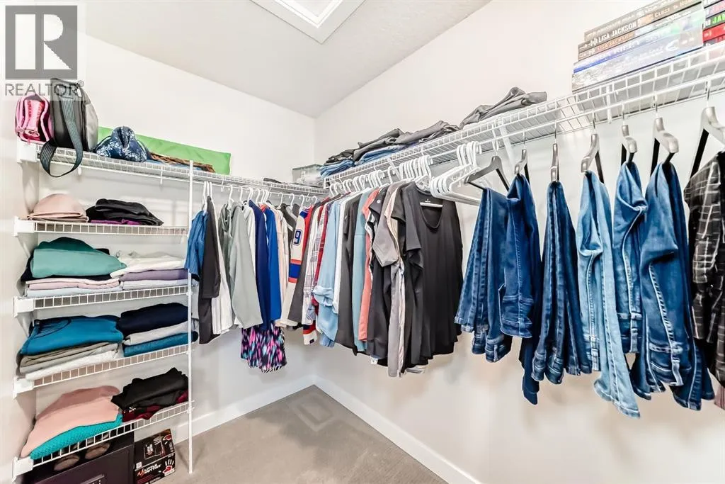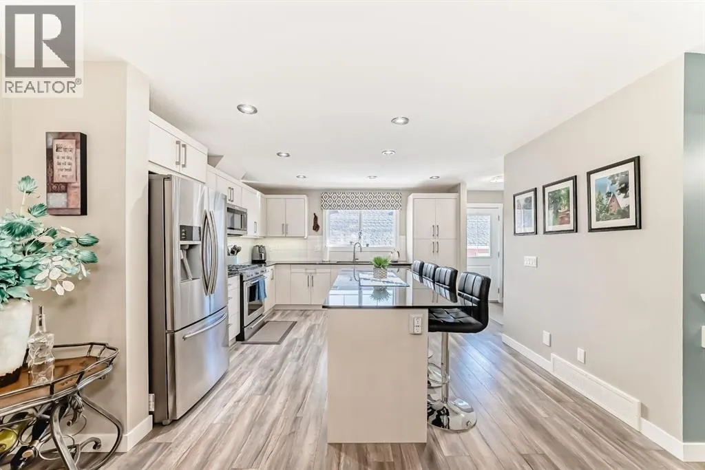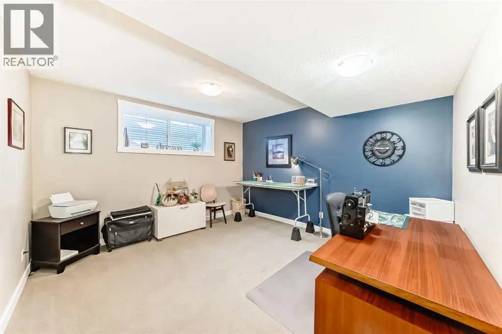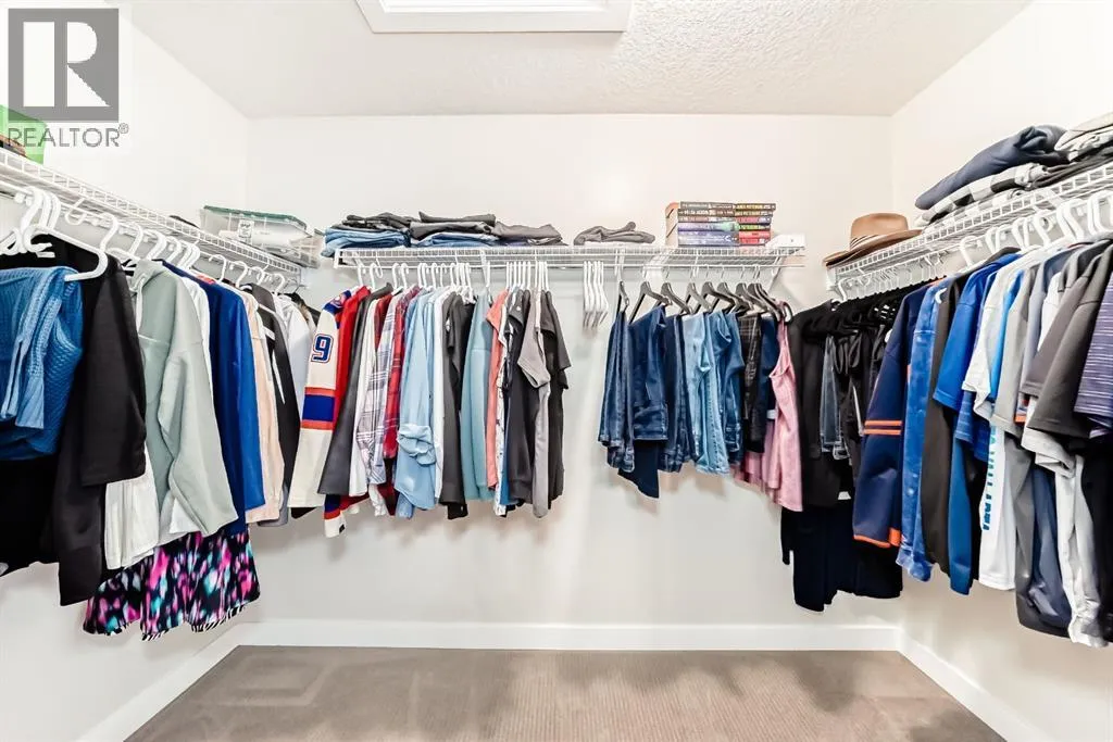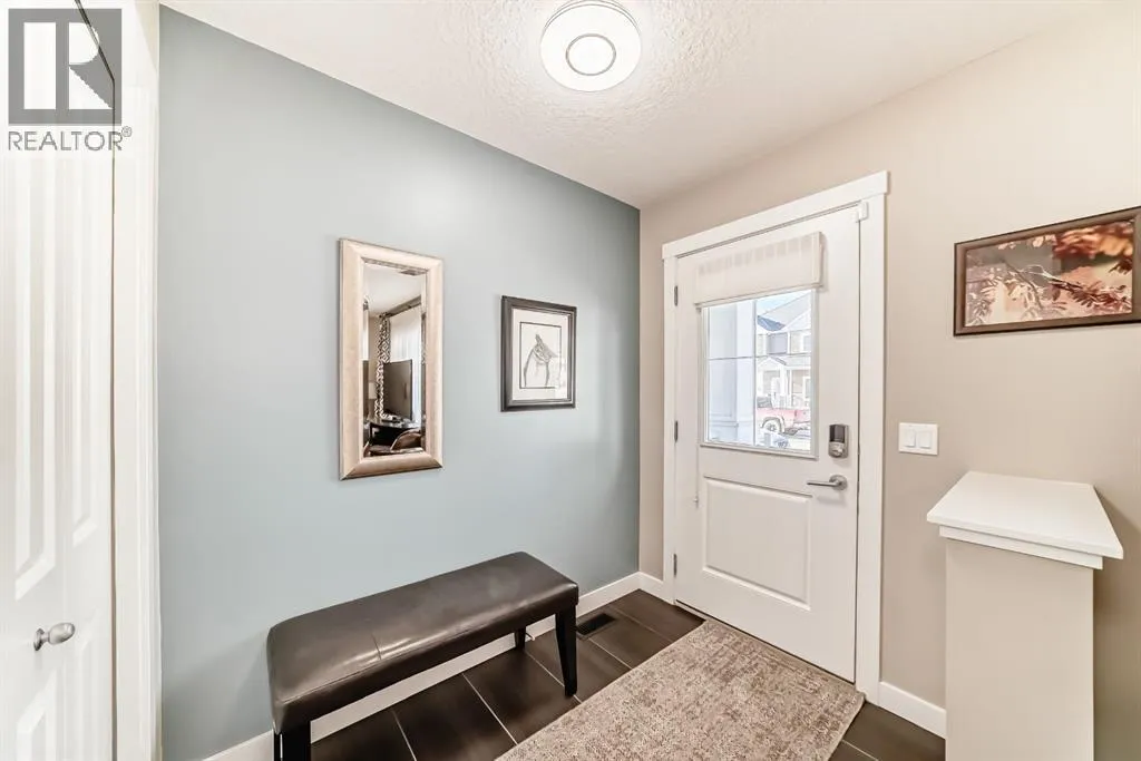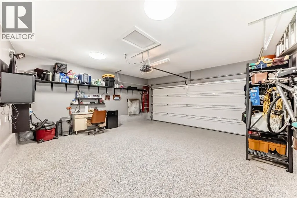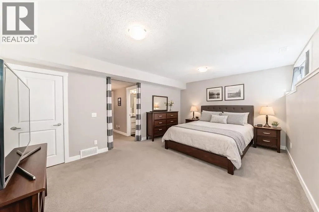If you're looking for a townhome that offers real space, this one delivers: 4 bedrooms, 3.5 bathrooms, and over 2,400 SQFT of fully developed living with 1,700.9 SQFT above grade (RMS), in a desirable end-unit location with only one common wall.The main floor features a bright open-concept layout with high ceilings, large windows, and great flow between the living, dining, and kitchen areas. The kitchen is both functional and stylish with quartz countertops, a large island, and plenty of cabinetry, making it an easy space for everyday living or hosting friends and family. A convenient 2-piece bathroom completes the main level.Upstairs you'll find three spacious bedrooms, including a comfortable primary suite with a good-sized walk-in closet and private 4-piece ensuite featuring heated floors. The additional bedrooms are generously sized and also offer great closet space, while another full bathroom with heated flooring and upper-level laundry with a newer washing machine add everyday convenience.The fully finished basement expands the living space with a large fourth bedroom, full bathroom, and additional rec/family room, giving you flexibility for guests, a home office, gym, or extra living area.Additional features include central air conditioning, central vacuum, quartz countertops, high ceilings, and keypad door locks on all three exterior doors. The double detached heated garage is fully finished with epoxy flooring and back lane access. The backyard is fully fenced with a deck and natural gas BBQ line.Located in the family-friendly community of Baysprings, close to parks, schools, playgrounds, shopping, and walking paths, this home offers space, functionality, and a fantastic Airdrie location. (id:27476)