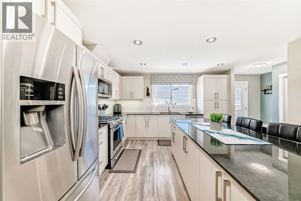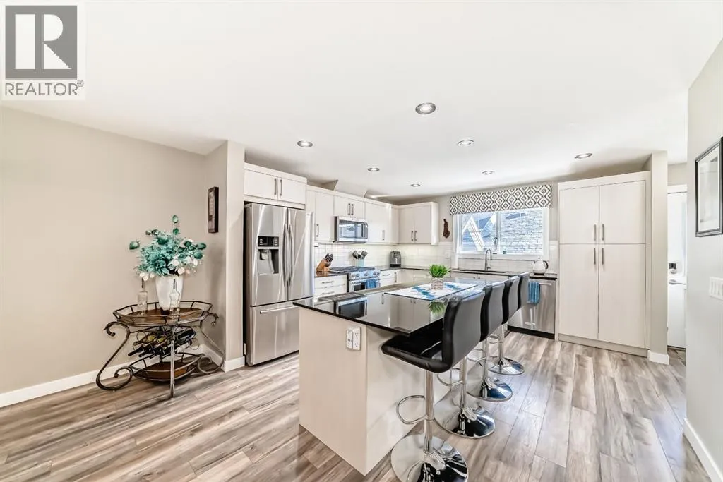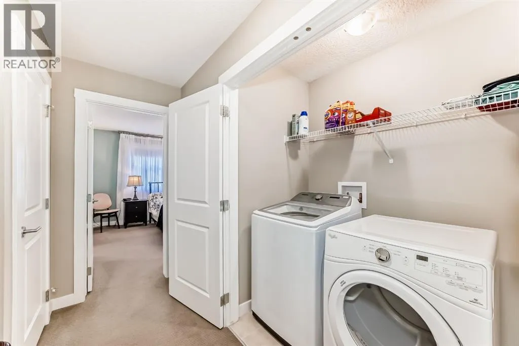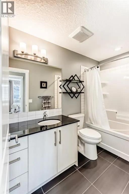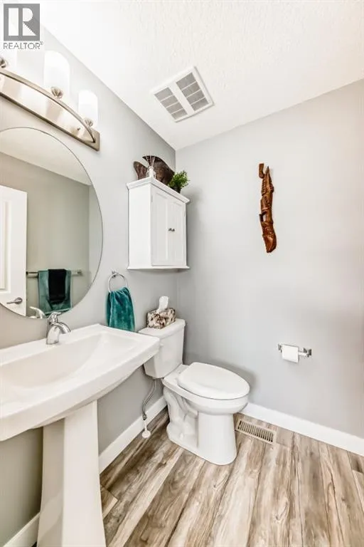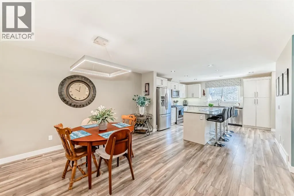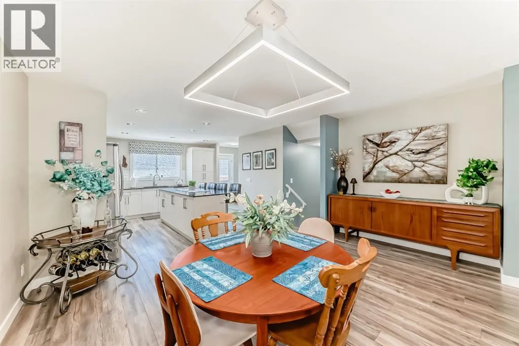 If you're looking for a townhome that offers real space, this one delivers: 4 bedrooms, 3.5 bathrooms, and over 2,400 SQFT of fully developed living with 1,700.9 SQFT above grade (RMS), in a desirable end-unit location with only one common wall.The main floor features a bright open-concept layout with high ceilings, large windows, and great flow between the living, dining, and kitchen areas. The kitchen is both functional and stylish with quartz countertops, a large island, and plenty of cabinetry, making it an easy space for everyday living or hosting friends and family. A convenient 2-piece bathroom completes the main level.Upstairs you'll find three spacious bedrooms, including a comfortable primary suite with a good-sized walk-in closet and private 4-piece ensuite featuring heated floors. The additional bedrooms are generously sized and also offer great closet space, while another full bathroom with heated flooring and upper-level laundry with a newer washing machine add everyday convenience.The fully finished basement expands the living space with a large fourth bedroom, full bathroom, and additional rec/family room, giving you flexibility for guests, a home office, gym, or extra living area.Additional features include central air conditioning, central vacuum, quartz countertops, high ceilings, and keypad door locks on all three exterior doors. The double detached heated garage is fully finished with epoxy flooring and back lane access. The backyard is fully fenced with a deck and natural gas BBQ line.Located in the family-friendly community of Baysprings, close to parks, schools, playgrounds, shopping, and walking paths, this home offers space, functionality, and a fantastic Airdrie location. (id:27476)