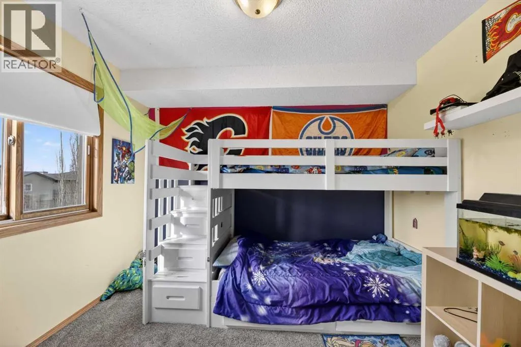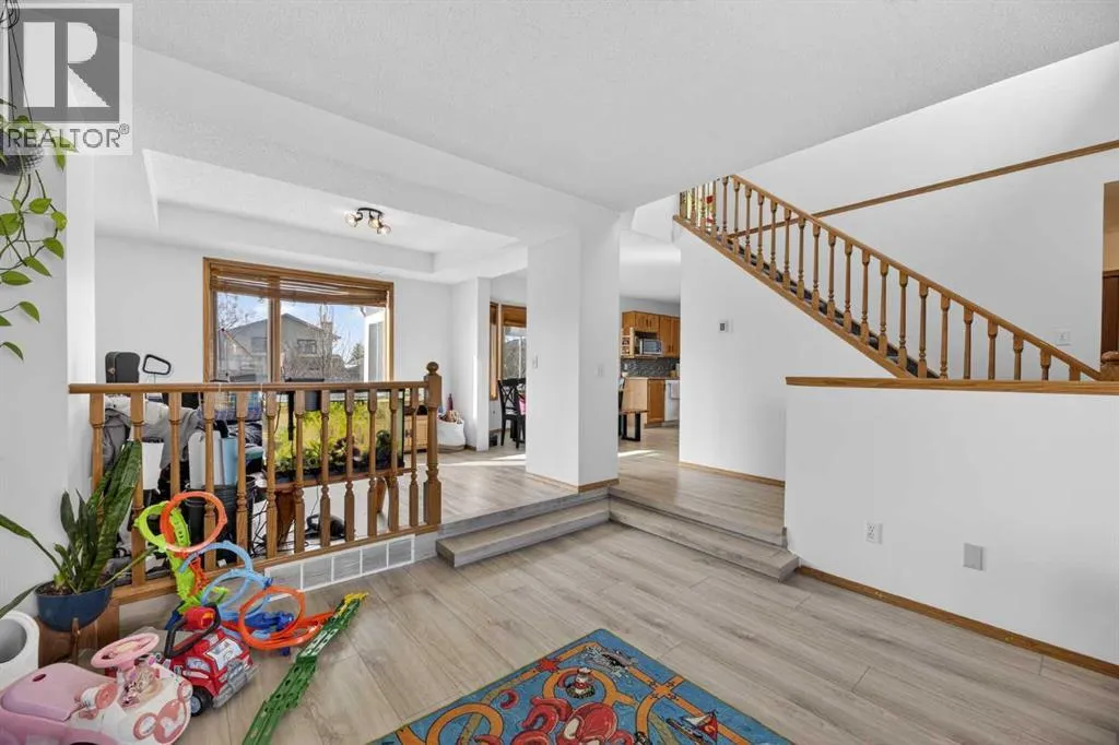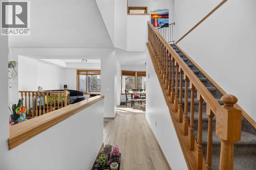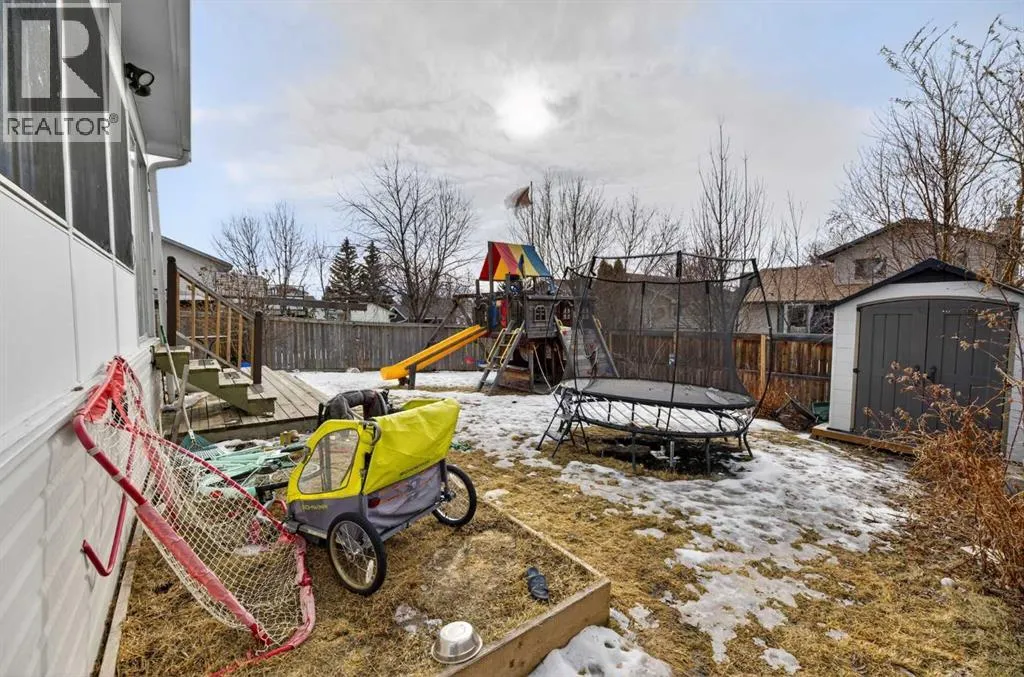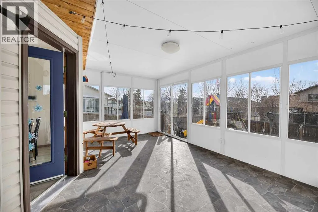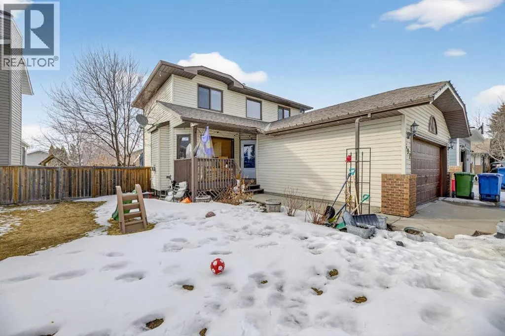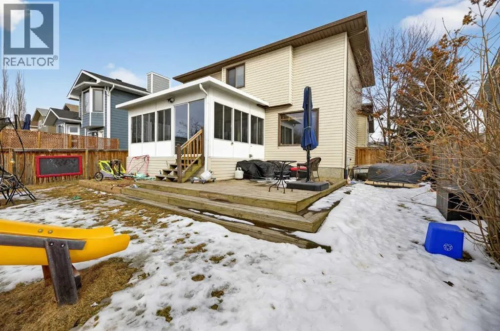 Tucked away on a quiet street in the established community of Meadowbrook, this home offers the space, updates, and location families are looking for. With mature trees, a large west-facing yard, and quick access to amenities, this property truly checks all the boxes. The main floor features a spacious kitchen with abundant counter and cupboard space and plenty of room for a large dining tableâperfect for everyday living and entertaining. The dining area flows comfortably into the family living space and can easily double as a cozy reading nook. Just off the kitchen, the bright 18' X 12' three-season room provides additional living space and a great spot to relax while enjoying views of the backyard. Upstairs offers three bedrooms, including a generously sized primary bedroom with a large walk-in closet and convenient cheater access to the impressive 5-piece bathroom. The basement expands the living space with a large family room featuring a wet bar, plus a flexible area that works well as a home office, hobby space, or play area, along with ample storage. Recent upgrades include air conditioning (2019), a new garage door with opener (2020), vinyl plank flooring (2021), and a heated garage with plumbing rough-in for a sink. Located within walking distance to schools, parks, and everyday amenities, and offering quick access to Queen Elizabeth II Highway for an easy commute to Calgary. Homes in this location with this much finished space and a large yard donât come along oftenâbook your showing today. (id:27476)