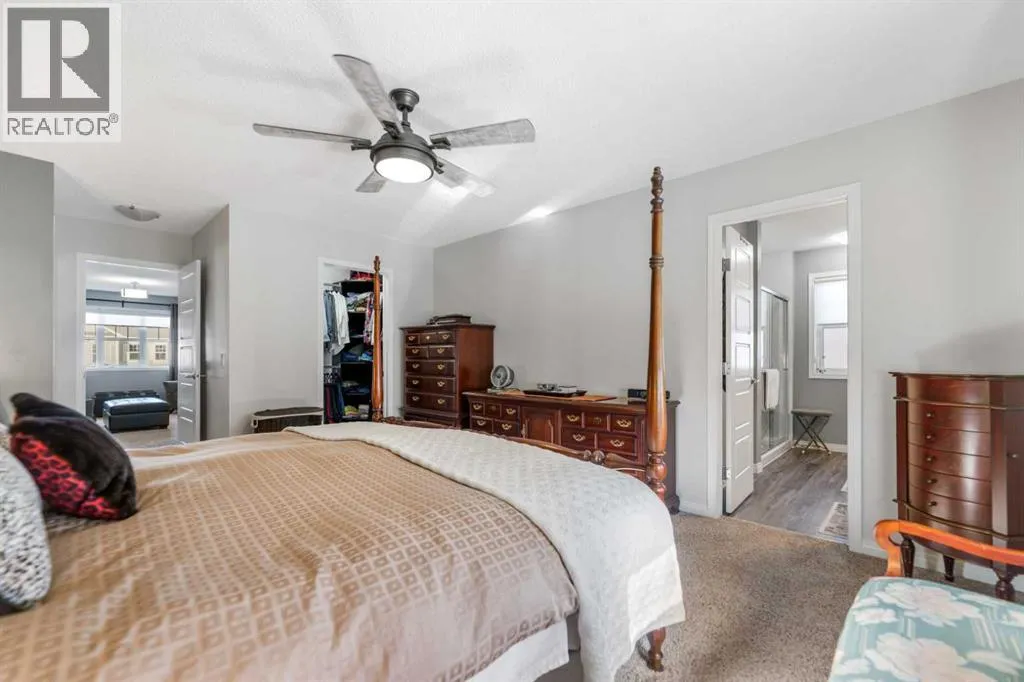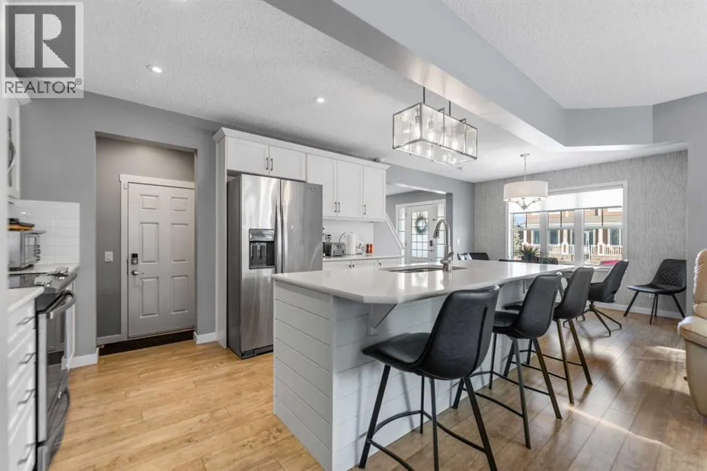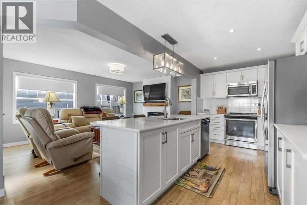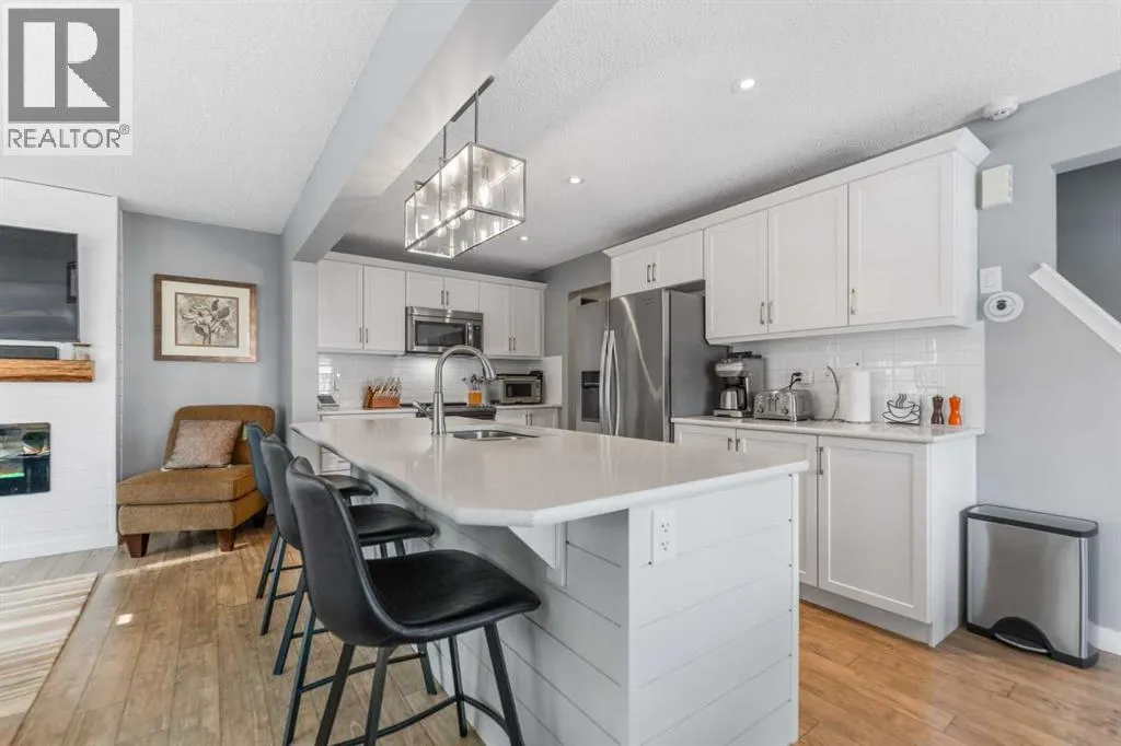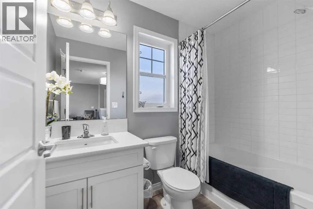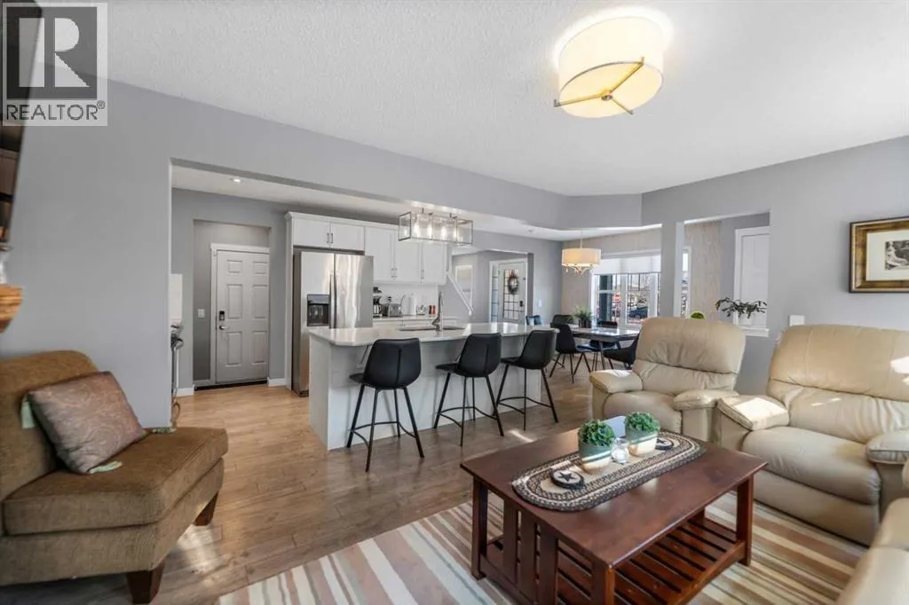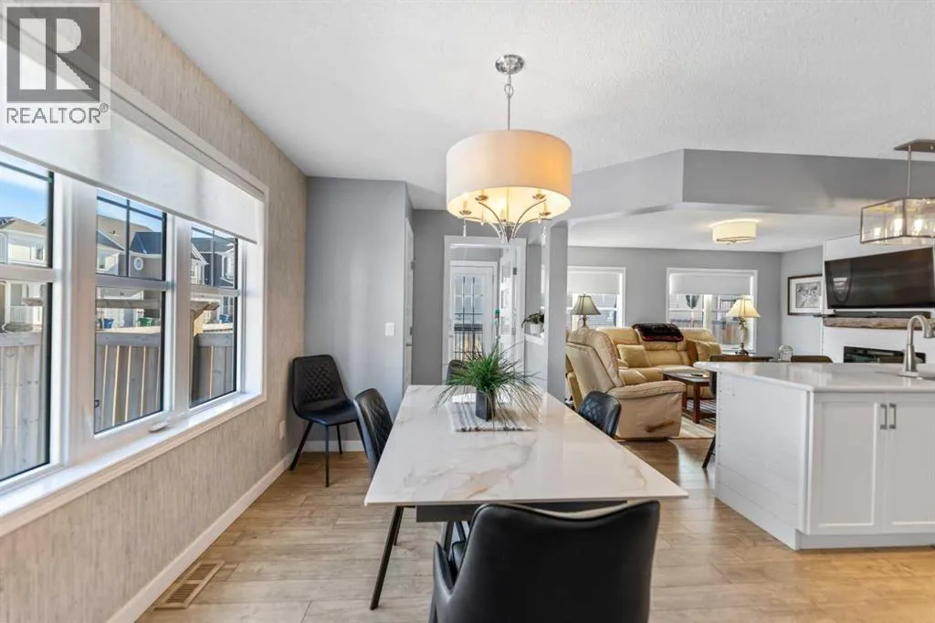 Welcome to this beautifully maintained two-storey home in the sought-after community of South Windsong in Airdrie. Perfectly positioned on a large corner lot, this home offers exceptional space, privacy, and sun-filled living throughout the day thanks to its expansive windows and ideal orientation.Step inside to discover a bright, open-concept main floor designed for comfortable everyday living and effortless entertaining. The spacious living area flows seamlessly into a welcoming dining space and a stunning kitchen featuring modern white cabinetry, quartz countertops, stainless steel appliances, abundant storage, and a large central island thatâs perfect for gatherings. The main level also offers convenient laundry, a powder room, and direct access to the attached double front garage.Upstairs, youâll find a generous primary retreat complete with a walk-in closet and private ensuite. Two additional well-sized bedrooms, a full bathroom, and a versatile bonus/family room provide plenty of room for a growing family, a home office, or relaxation space.The fully developed basement expands the living area with a recreation space, media area, additional bedroom, and full bathroom, making it ideal for guests or extended family.Outside, the professionally landscaped yard features a massive full-width patio/deck, creating the perfect setting for outdoor dining, summer entertaining, or simply unwinding at the end of the day.Additional highlights include hardwood flooring, quartz counters throughout, central A/C, upgraded lighting, and thoughtful custom details that reflect the pride of ownership seen throughout the home.Located close to parks, pathways, schools, and shopping, this exceptional property combines space, comfort, and convenience in one of Airdrieâs most desirable neighborhoods.Donât miss this opportunityâbook your private showing today (id:27476)