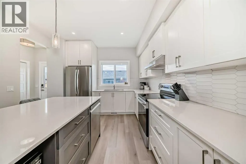 Welcome to luxury living in the highly desirable Cobblestone community of Airdrie, where modern design meets everyday comfort. This beautifully maintained air-conditioned two-storey home offers 4 bedrooms, 3.5 bathrooms, and a fully finished basement, providing exceptional space for families, entertaining, and growing households.Step inside to discover durable luxury vinyl plank flooring flowing throughout the main level, creating a warm and cohesive feel. The inviting living room is centered around a cozy fireplace, perfect for relaxing evenings or gathering with family and friends. The adjacent dining area offers the ideal setting for hosting dinners and special occasions, while a convenient main-floor powder room adds everyday functionality.At the heart of the home is the chef-inspired kitchen, featuring quartz countertops, high-end stainless steel appliances, and a large central island perfect for meal prep, casual dining, and entertaining. Just off the kitchen, step outside to your spacious deck overlooking a fully landscaped yard and double detached garage an ideal setup for summer BBQs and outdoor gatherings.Upstairs, enjoy the convenience of upper-floor laundry, along with two generously sized bedrooms, a full 4-piece bathroom, and a spacious primary retreat. The primary suite features a walk-in closet and a stylish ensuite complete with double sinks and a large walk-in shower, creating a comfortable and private space to unwind.The fully finished basement expands your living space even further with a large family room, an additional bedroom perfect for guests or a home office, and a 3-piece bathroom, making it an ideal lower-level retreat.Located in the vibrant Cobblestone community, residents enjoy close access to parks, schools, shopping, restaurants, and the brand new community pickleball courts, offering a fantastic lifestyle for active families and outdoor enthusiasts.This move-in ready home checks every box style, space, and an unbeatable locati on. Donât miss your opportunity to call this exceptional property home. (id:27476)