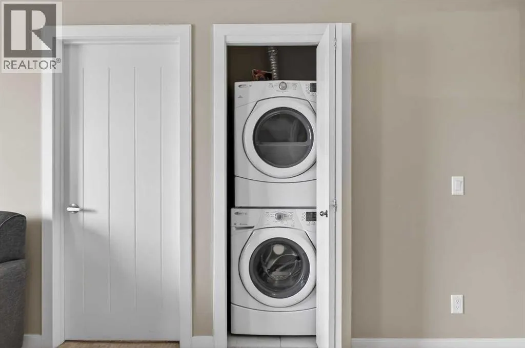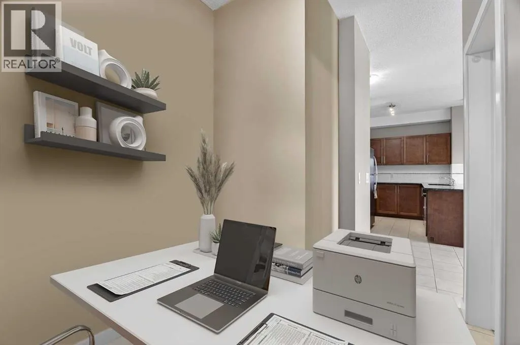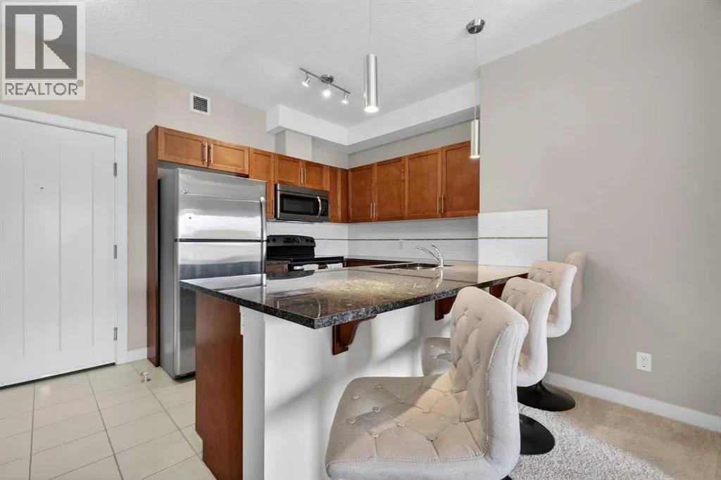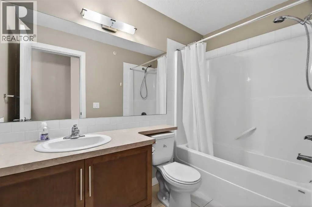 Welcome to this TOP FLOOR 2 BEDROOM + DEN, 2 FULL BATHROOM condo with TITLED UNDERGROUND PARKING in The Edge, ideally located beside EAST LAKE and GENESIS PLACE RECREATION CENTRE in Airdrie.This bright and well designed home offers an excellent floor plan with the bedrooms located on OPPOSITE SIDES OF THE UNIT, providing privacy that works well for shared living, guests, or a roommate situation. The primary bedroom features a walk through closet, private 4 piece ensuite, and direct access to the WEST FACING BALCONY.The open concept living space connects the kitchen, dining, and living room and is filled with natural light. The kitchen features granite countertops, stainless steel appliances, and ample cabinetry. The DEN offers a flexible space for a home office or additional storage and is conveniently located beside the second full bathroom.Step outside to the large WEST FACING BALCONY, accessible from both the living room and the primary bedroom, an ideal spot to enjoy afternoon sun and evening sunsets.Additional highlights include IN SUITE LAUNDRY, TITLED UNDERGROUND PARKING, and a storage unit conveniently located at the front of the parking stall.Located steps from East Lake, walking paths, green space, schools, and Genesis Place recreation centre. Residents enjoy an active lifestyle with year round recreation, fitness facilities, and beautiful outdoor space right outside the building. Shopping, restaurants, and quick access to Deerfoot Trail make commuting into Calgary convenient.With its TOP FLOOR location, smart layout, and access to East Lake and Genesis Place, this is an excellent opportunity for FIRST TIME BUYERS, DOWNSIZERS, or INVESTORS looking for a well located property in Airdrie. Book your showing today. (id:27476)