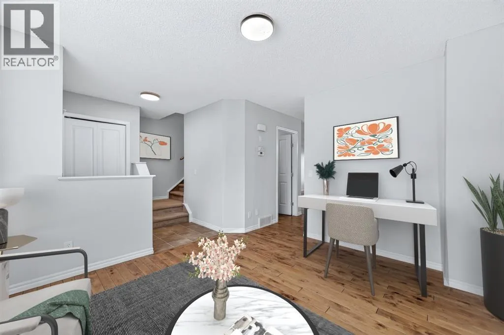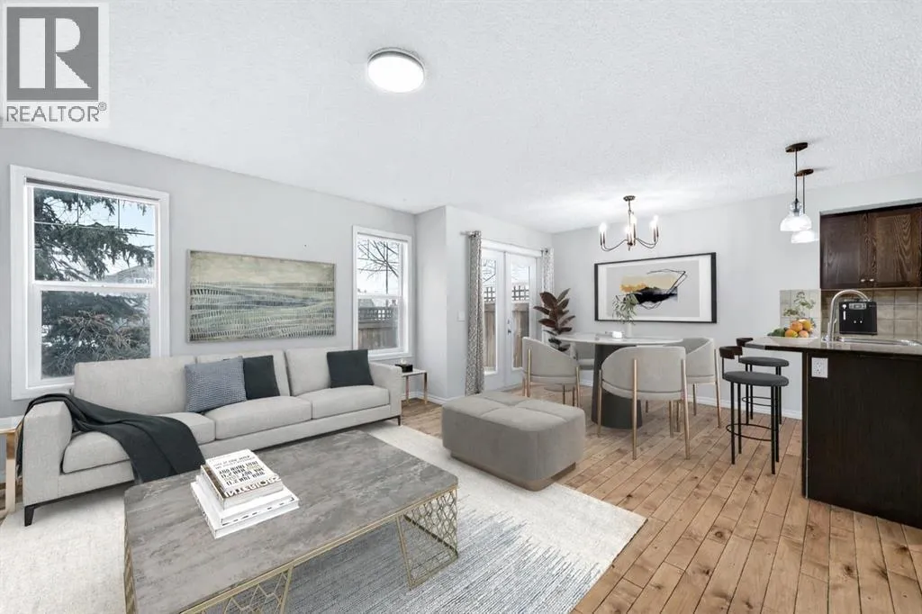 Welcome to this beautifully refreshed end unit townhome in the heart of Sagewoodâs family-friendly community. Offering over 1,350 sq. ft. of thoughtfully designed living space, this 3 bedroom, 2.5 bathroom home is large and features an open layout perfectly suited for comfortable everyday living. Fresh, neutral paint tones and modern light fixtures create a bright, welcoming atmosphere throughout the home. The main level features rich alder hardwood flooring that adds warmth and character to the open concept layout. A spacious front living room provides a comfortable space to relax and gather and flows seamlessly into the warm and functional kitchen. Complete with stained maple cabinetry, a breakfast bar, pantry, and ample counter space, the kitchen is perfect for those who love to cook or bake. This area is also equipped with a new Frigidaire electric range and hood fan, offering a modern touch for everyday cooking and entertaining. Just off the kitchen, you can step outside through elegant French doors to your private patio with sunny south exposure, ideal for morning coffee, summer BBQs, or simply enjoying the outdoors. Upstairs, the spacious primary retreat features a large walk-in closet and private 3 piece ensuite, while two additional generous bedrooms and a full 4 piece bathroom provide plenty of room for family, guests, or a home office. The unspoiled basement offers excellent storage or the opportunity to develop additional living space to suit your needs.Perfectly located just steps from parks, schools, walking paths, and everyday amenities, this home offers the lifestyle and convenience todayâs buyers are looking for. Whether you're a first-time buyer, growing family, or investor, this Sagewood townhome is a fantastic opportunity to call home. (id:27476)