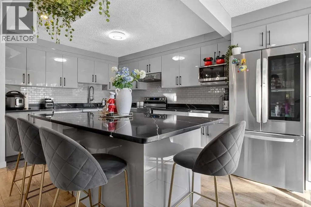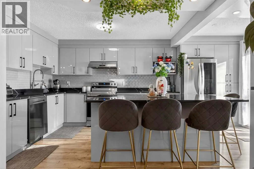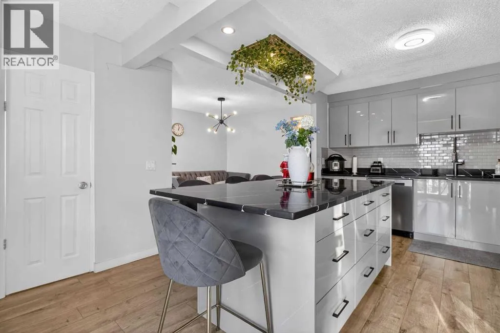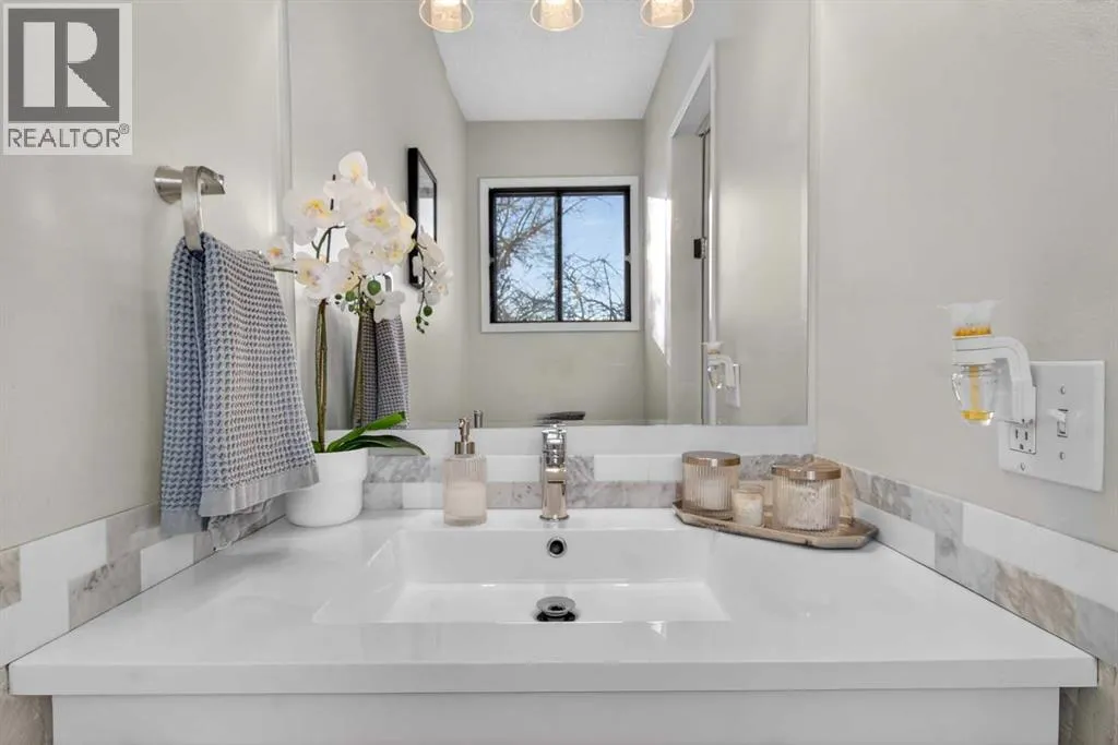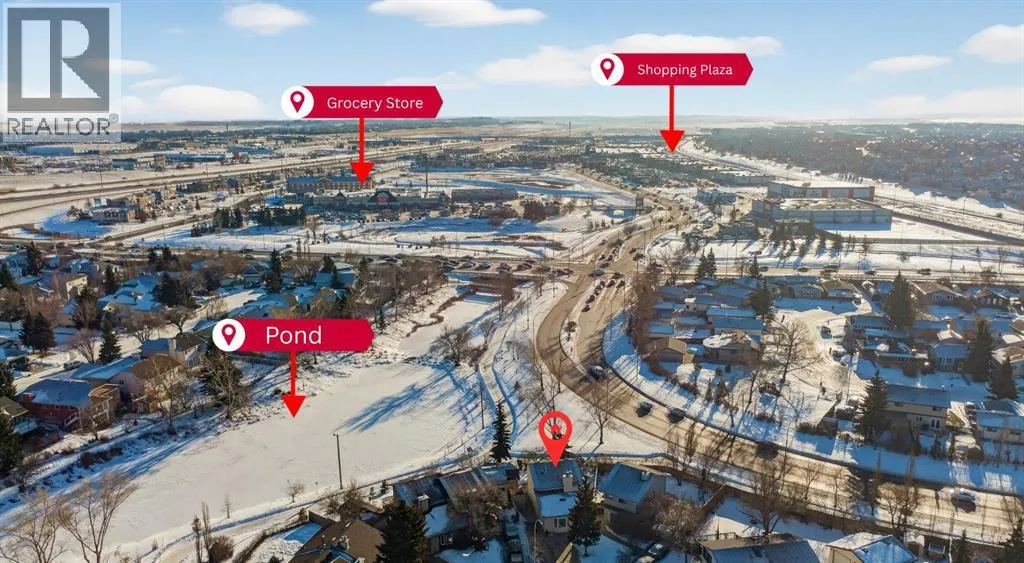 You will love this unique fully renovated two story family home, ideally situated on a quiet, kid friendly cul-de-sac surrounded by green space. Backing directly onto Nose Creek Pond and its extensive pathway system, the location offers seamless access to Nose Creek Park and Sierra Springs Shopping Centre. The bright, sunny newly renovated kitchen overlooks a lush, private garden and tranquil pond fountain perfect for everyday living and entertaining. Ample storage is complemented by a large granite-topped bar with built-in cocktail glass rack, ideal for hosting guests. Come home to a spacious vaulted living room where you can relax and snuggle up around a cozy wood-burning fireplace with chimney. An open stairway leads to a large primary bedroom with a four-piece ensuite, along with two additional generously sized bedrooms. The fully finished basement features a small kitchenette, shower, and ample closet space, making it suitable for a teenagerâs bedroom, recreation area, or private guest space. Additional highlights include new flooring throughout, plenty of parking with a double-wide driveway, and a dedicated RV pad. From Yankee Valley Blvd, turn north onto Main Street, then take the next right onto Summerfield Blvd SE. (id:27476)