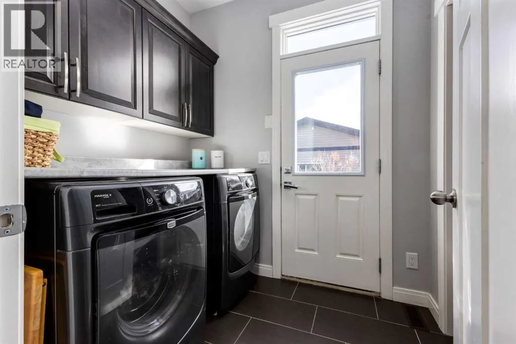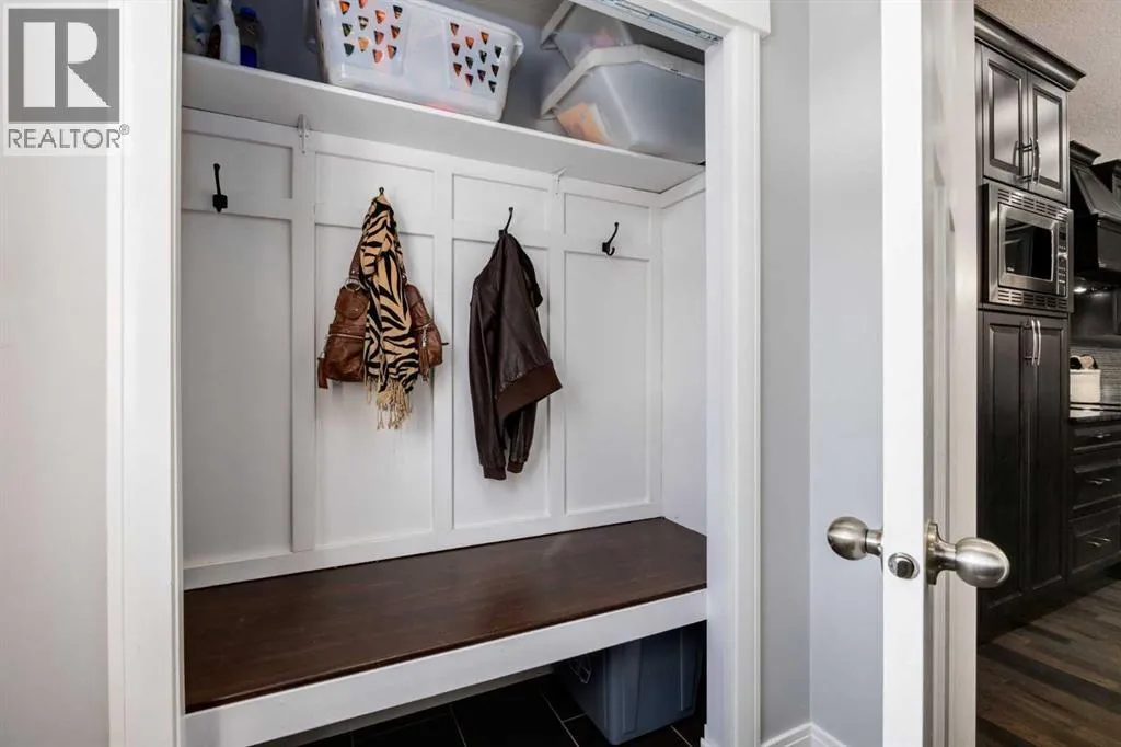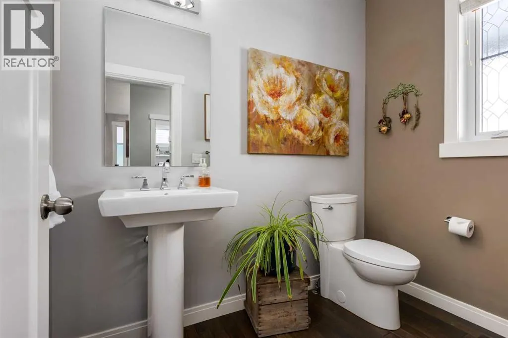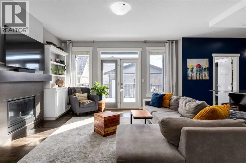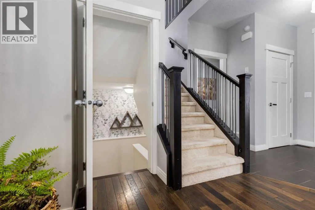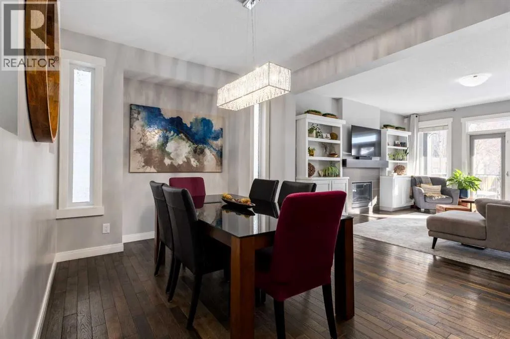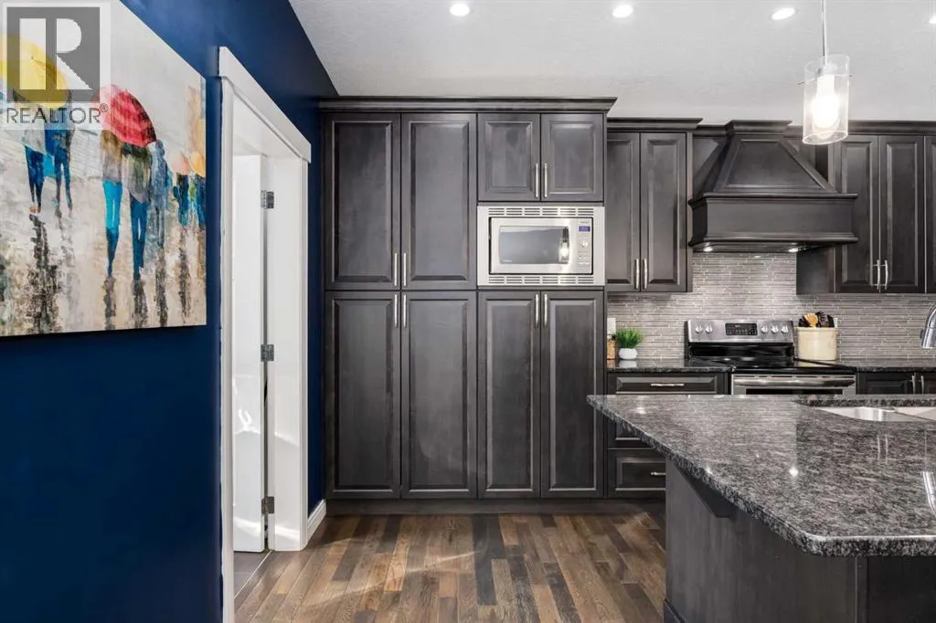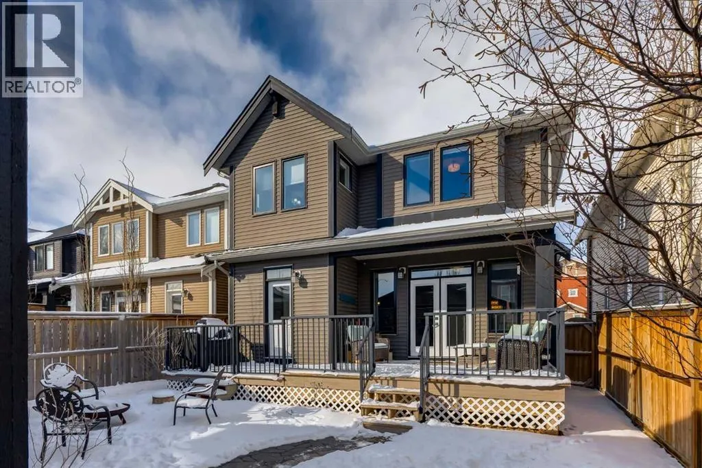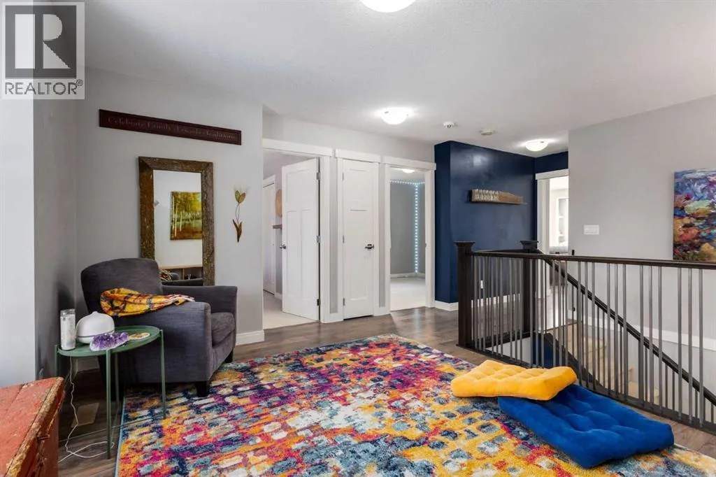 Impeccably finished from top to bottom, with thoughtful upgrades, elegant spaces, a private backyard retreat, AND an OVERSIZED 24x22 Detached Double Garage! From the moment you step inside off the covered front porch , a welcoming tile Foyer leads you into a bright main floor where rich hardwood floors and elegant design details create a warm, inviting atmosphere. Just off the front entrance is a private Home Office with French doors and bright windows âperfect for working from home or a quiet study space. The Dining area is extremely spacious and features a striking chandelier, flowing seamlessly into the Living Room and Kitchen. Natural light floods the Living Room, with a cozy gas fireplace with a mantle, framed by two bookcase cabinets. French doors open to the partially covered back deck, creating a natural connection between indoor and outdoor living.The Kitchen is perfectly designed for both everyday life and entertaining, showcasing granite countertops, full-height cabinetry, SS appliances and a large island designed for gathering. A convenient tiled Laundry & Mudroom just off the kitchen offers a folding counter, additional cabinetry, and built-in bench with hooks, keeping coats and bags neatly organized. Completing this open-concept main level is a 2-pc Bathroom with pedestal sink & an opening window. Ushered upstairs by the wide carpeted, modern staircase youâll find a spacious Bonus Room filled with sunshine, The Primary retreat boasts vaulted ceiling, a cozy window seat, and a walk-in closet. The 5-pc Ensuite is a true spa-inspired space featuring in-floor heating, a stand-alone soaker tub beneath the big window, separate walk-in corner shower, dual sinks with granite counters, and tons of cupboard / additional drawer storage. Central A/C and UV window protection has been added to enhance comfort and efficiency in this home. Also upstairs are 2 more spacious Bedrooms, an organized Linen Closet, and a beautifully finished 4-pc Bathroom with granite coun ters and tile flooring. The FULLY FINISHED BASEMENT expands your living space with impressive 9ft ceilings, a massive Family Room/ Recreation area, extra space for your Home Gym, a FOURTH BEDROOM, a stunning 3-pc Bathroom with an O/S walk-in shower and great vanity storage, AND loads of extra storage options. Outside, the beautifully landscaped backyard feels like a private oasis with mature trees & gardens, a partially covered deck for relaxing or entertaining, and a stamped concrete patio and pathway to the Garage. Last but certainly not least - the oversized 22'x24' Double Detached Garage with PAVED LANE ACCESS! Located in one of Airdrieâs most sought-after communities, this home is just steps from parks, pathways, schools, and the many amenities of Coopers Promenade. Donât miss the chance to call this luxurious property HOME, book a private showing TODAY. (id:27476)